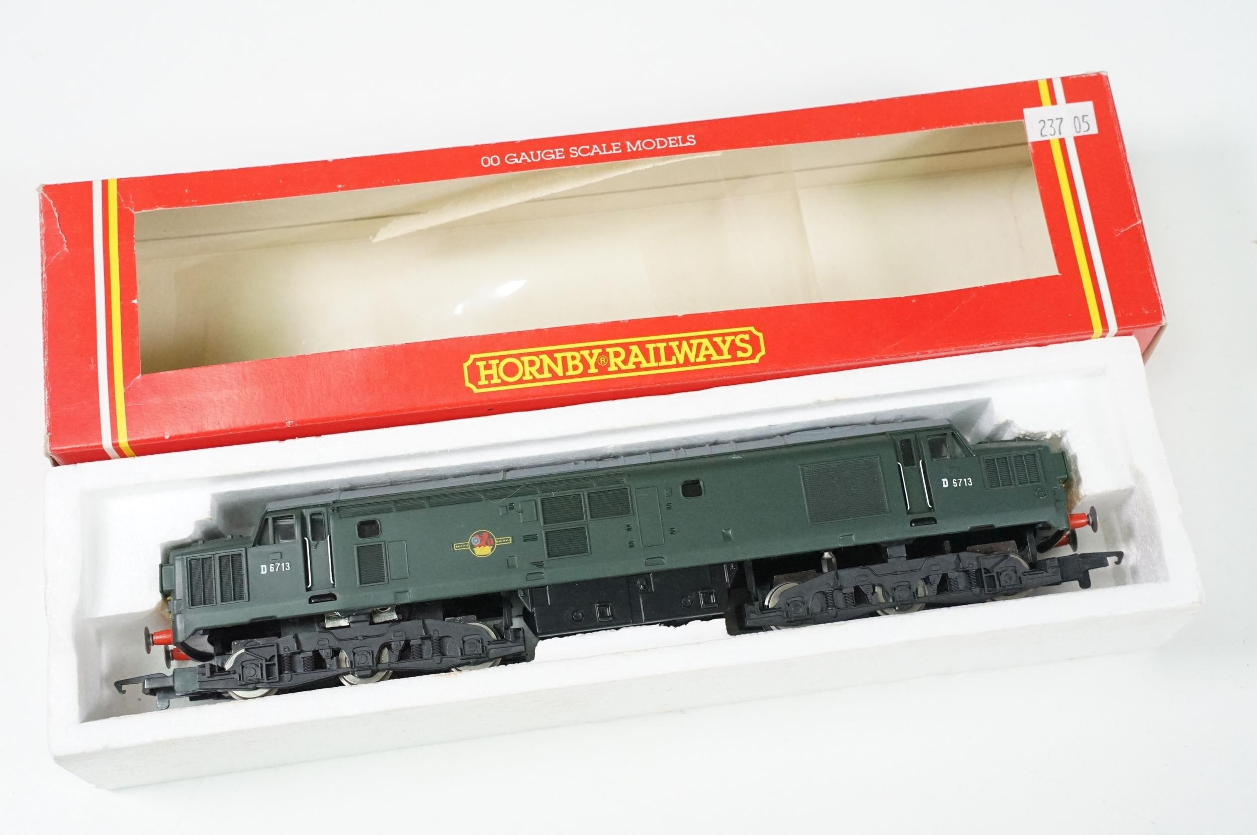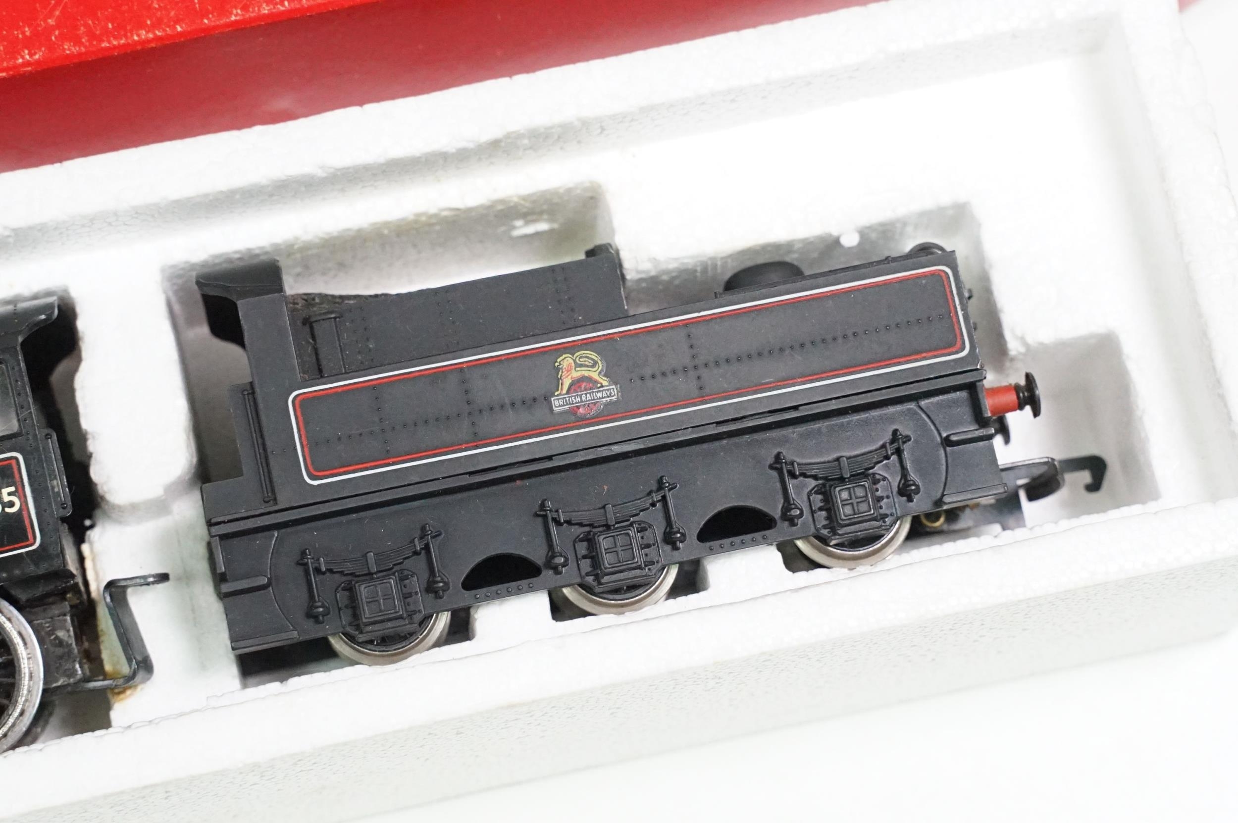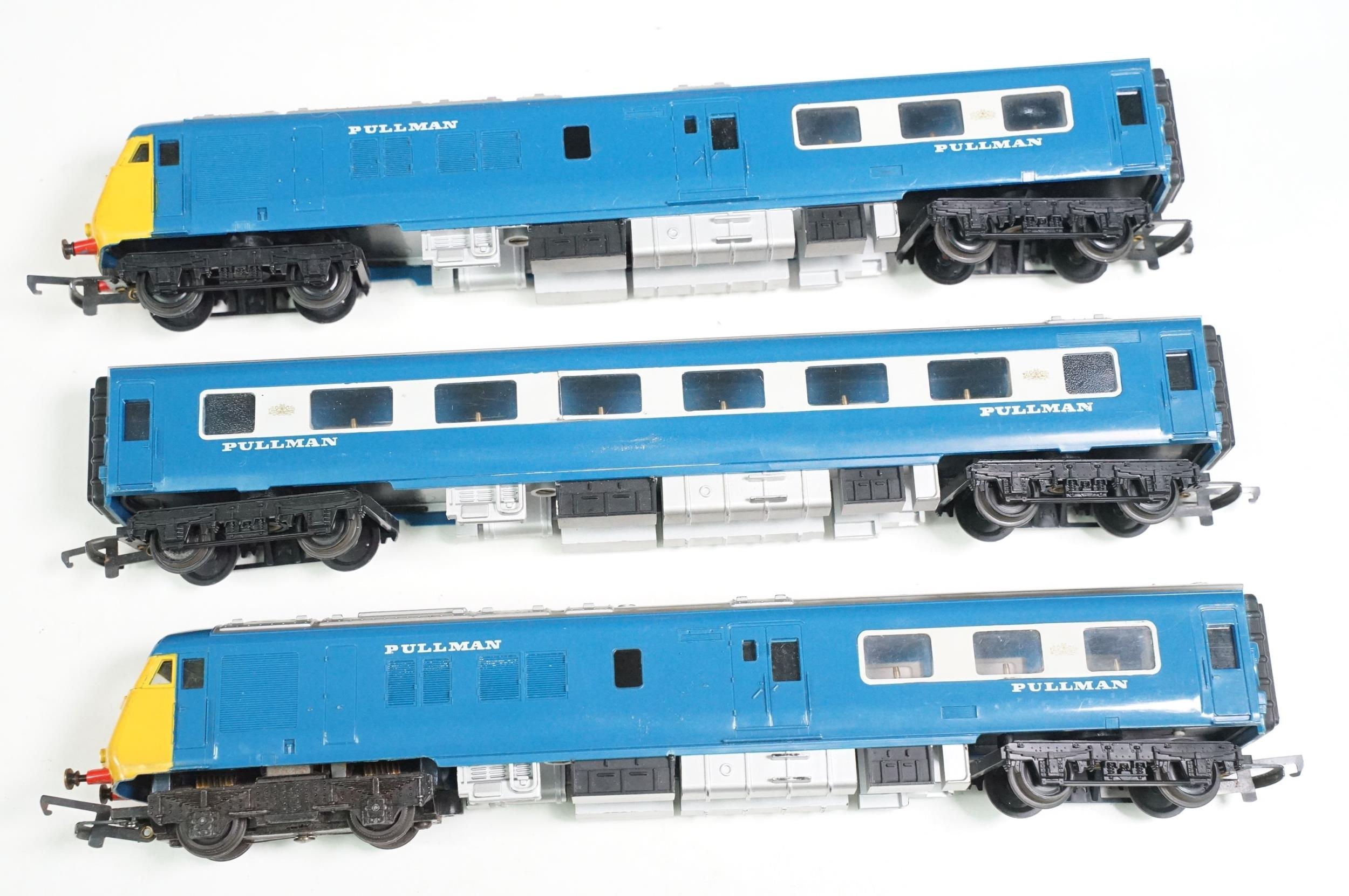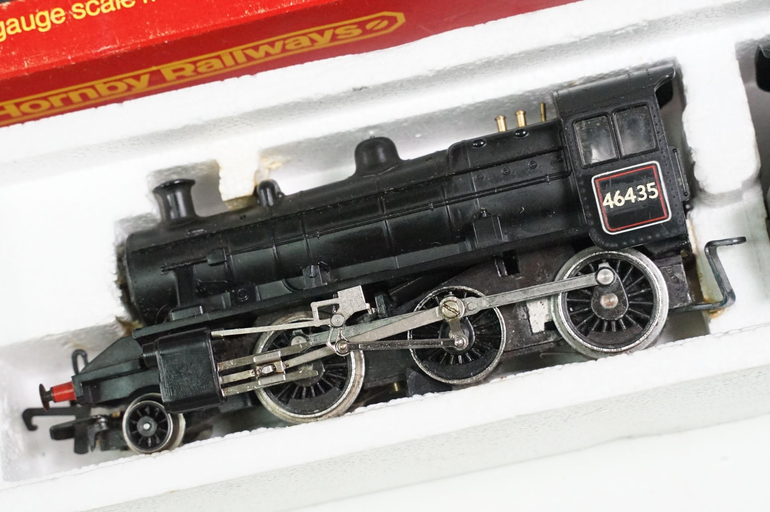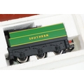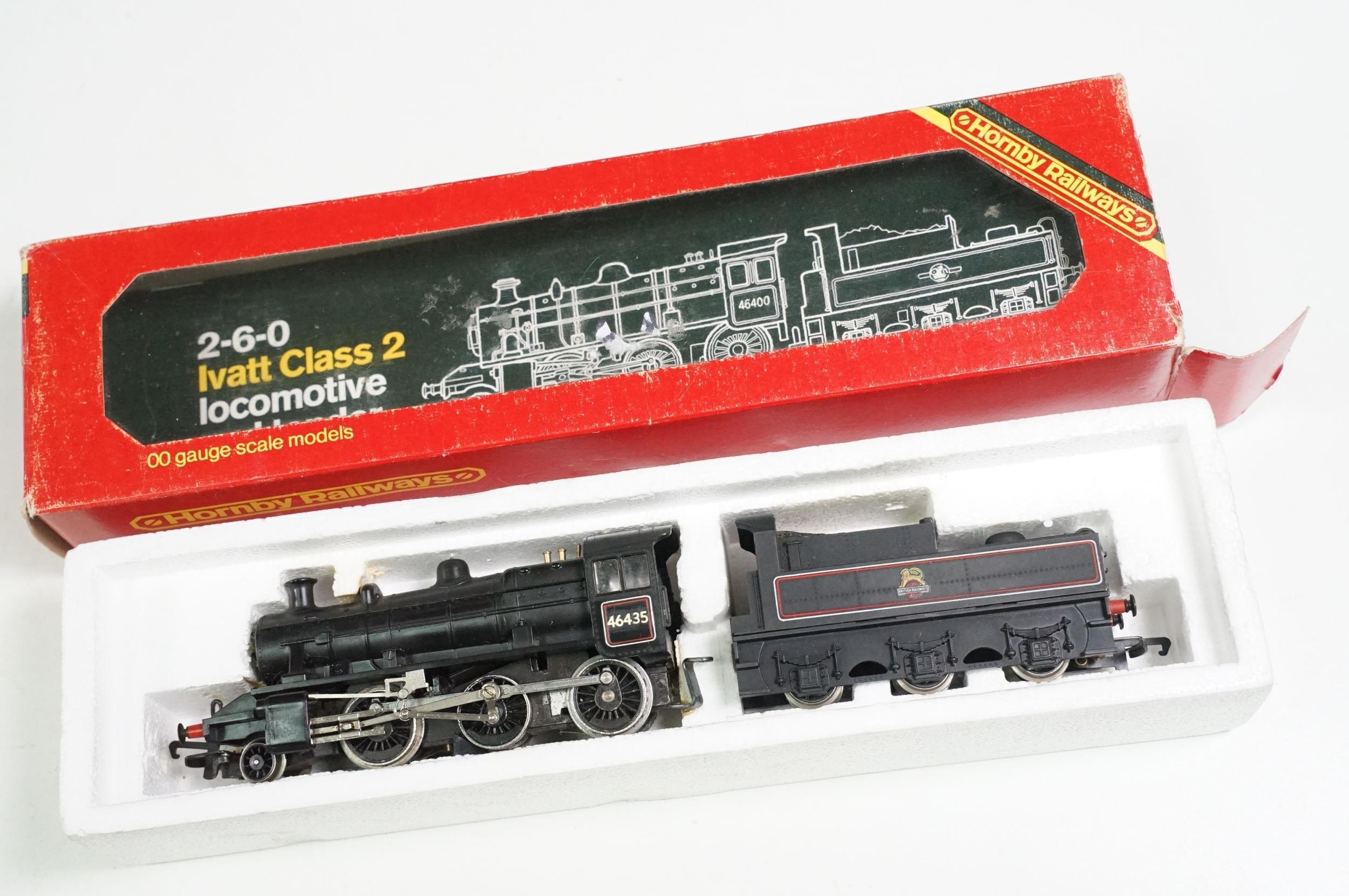 Three boxed Hornby OO gauge locomotives to include R374 SR Battle of Britain Loco Spitfire, R284 BR Co Co Diesel Class 37 green and 2-6-0 Ivatt Class 2 locomotive and tender plus a Hornby Duchess of Sutherland locomotive and Triang Pullman 3 Car DMU set, boxes showing some wear (7 items)