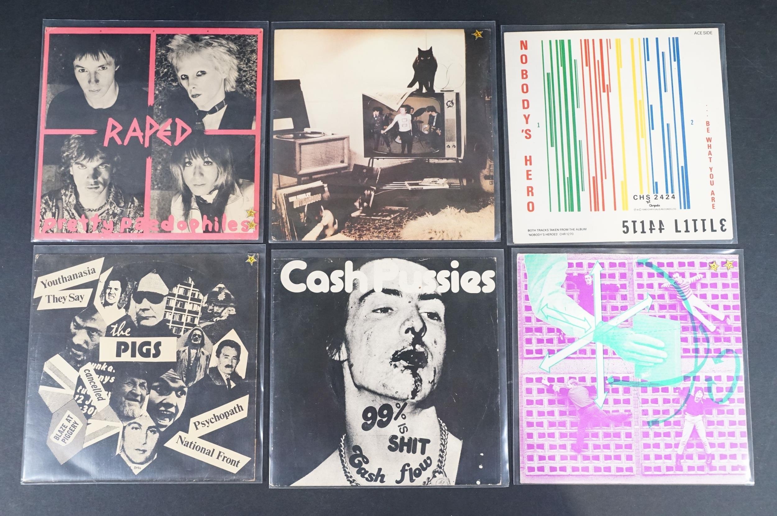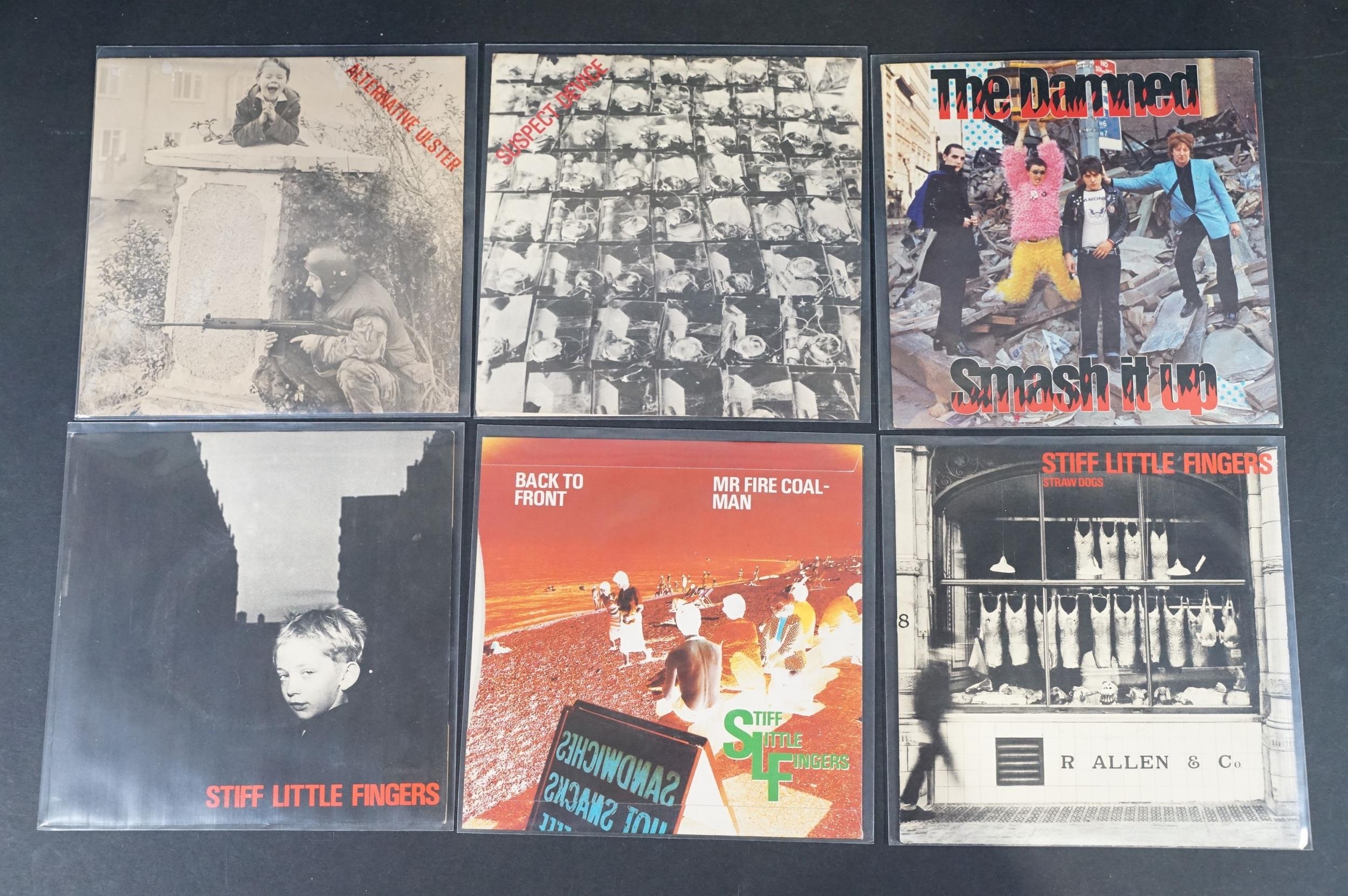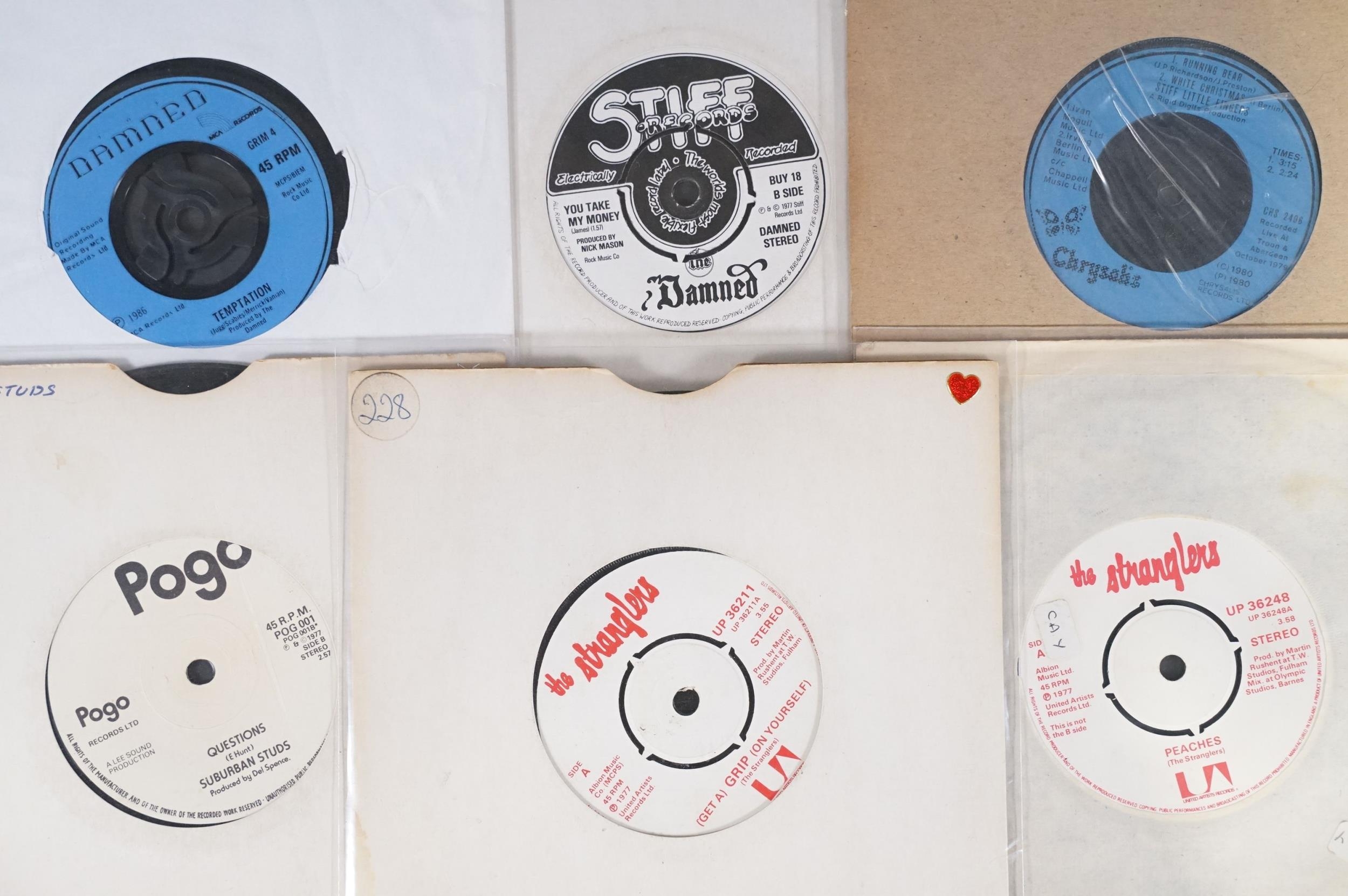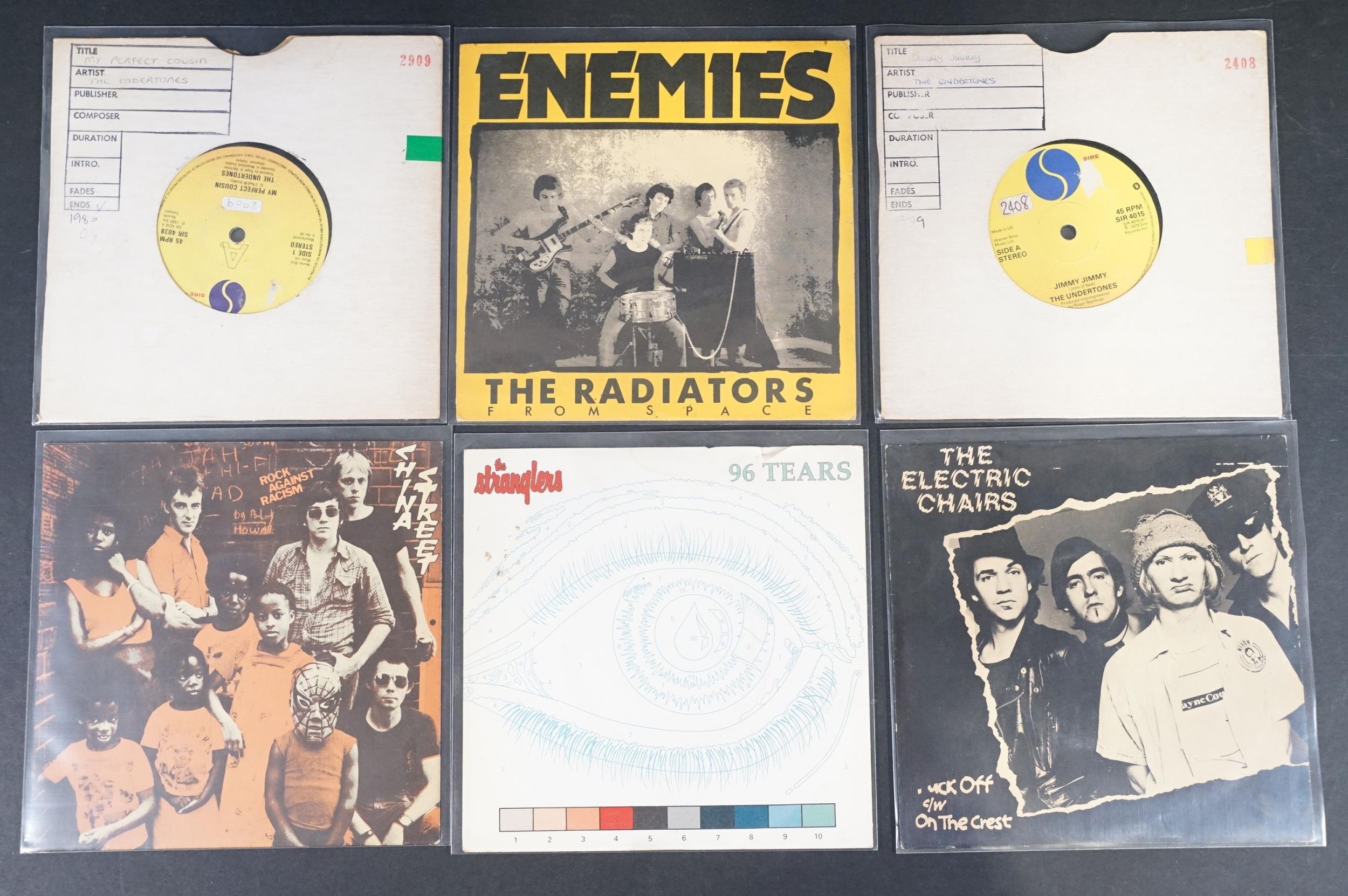 Vinyl - 26 1st generation Punk 7” singles to include: The Damned x 5 (including red vinyl), Stiff Little Fingers x 7 (including Suspect Device red paper labels on Rigid Digits Records), Alternative TV, Raped, Prag VEC, Cash Pussies, The Pigs, The Electric Chairs, The Stranglers x 3, The Undertones x 2, The Radiators From Space, Suburban Studs, China Street. Condition EX- on sleeves and VG overall on vinyl