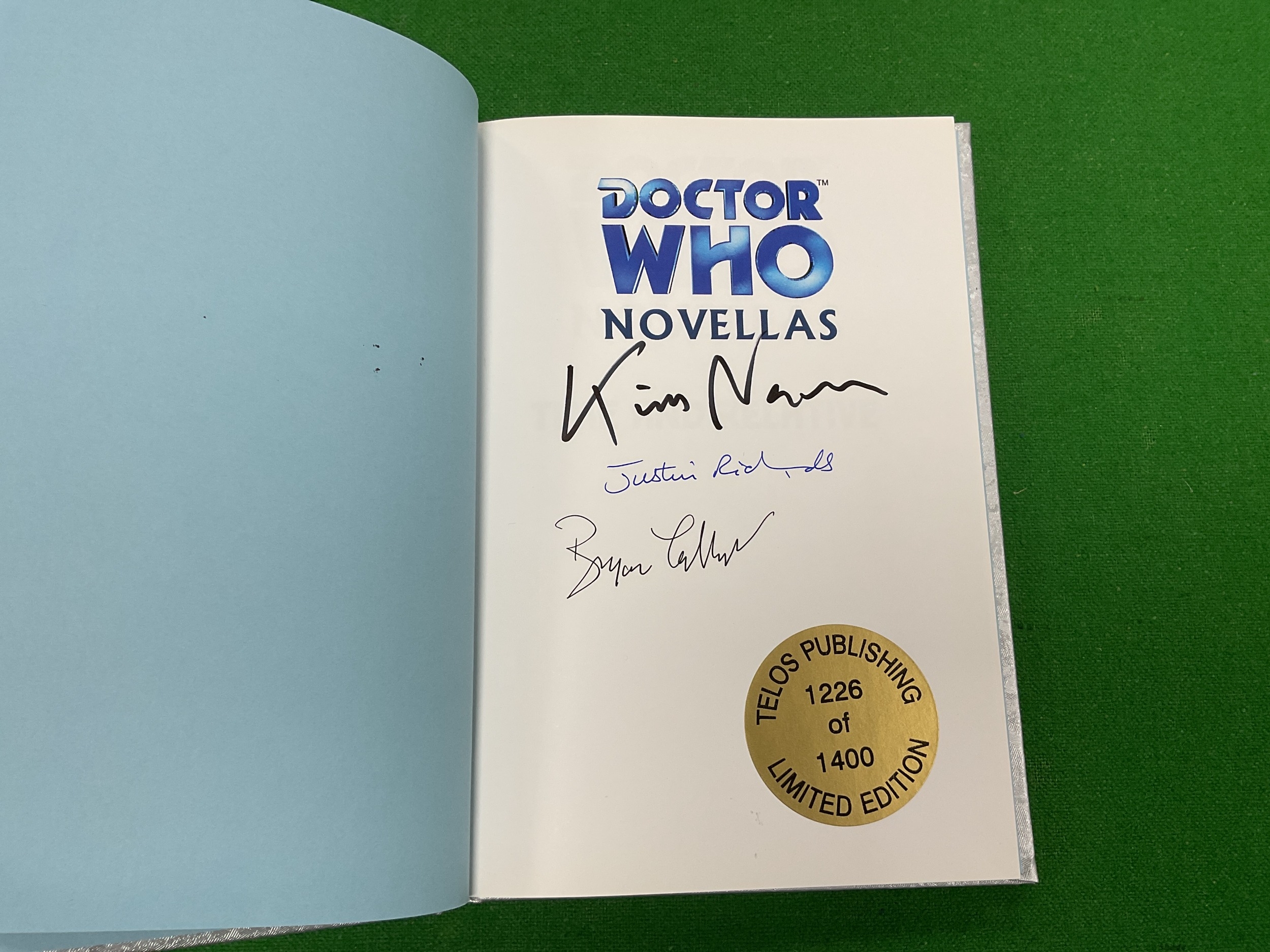 A Complete Set of Fifteen Doctor Who Novellas Books by Telos, including a deluxe edition of Time and Relative, No.1226 of 1400 copies. Some faults, including minor marking to covers, some bumping/scuffings to covers and some foxing to page edges noted.
