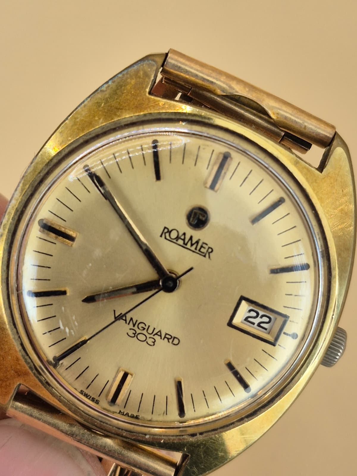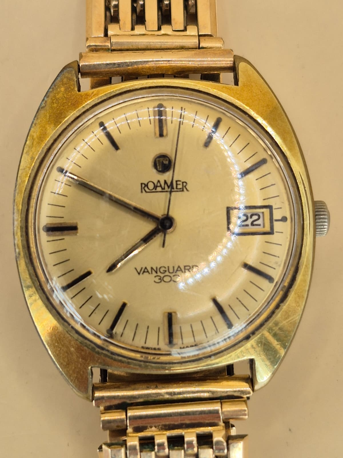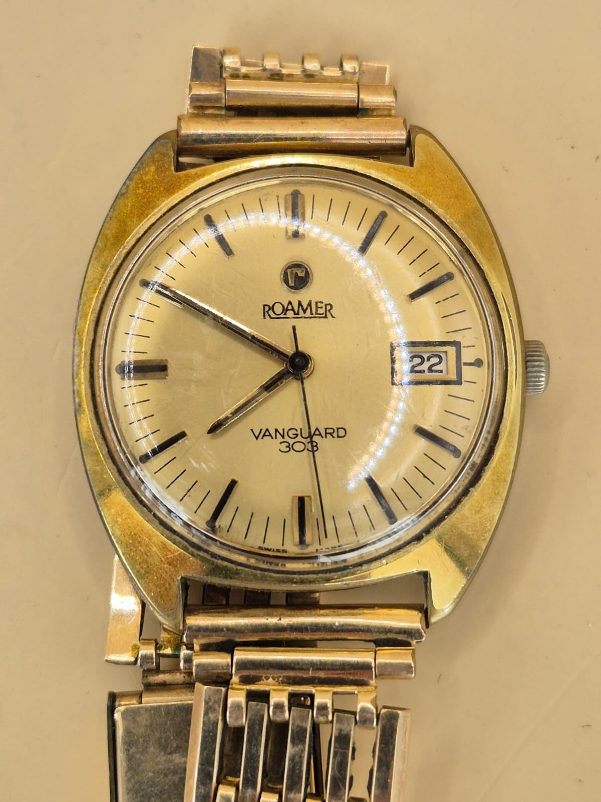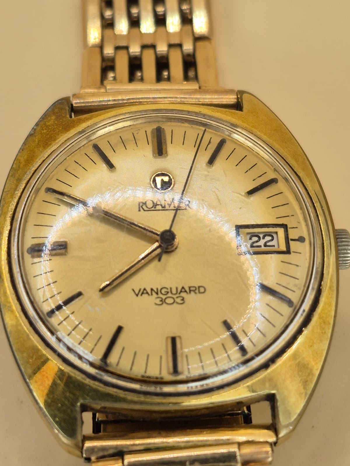 Vintage Roamer Vanguard 303 Winder Watch Day Date in Good Working Order on a 1/5th Rolled Gold Strap