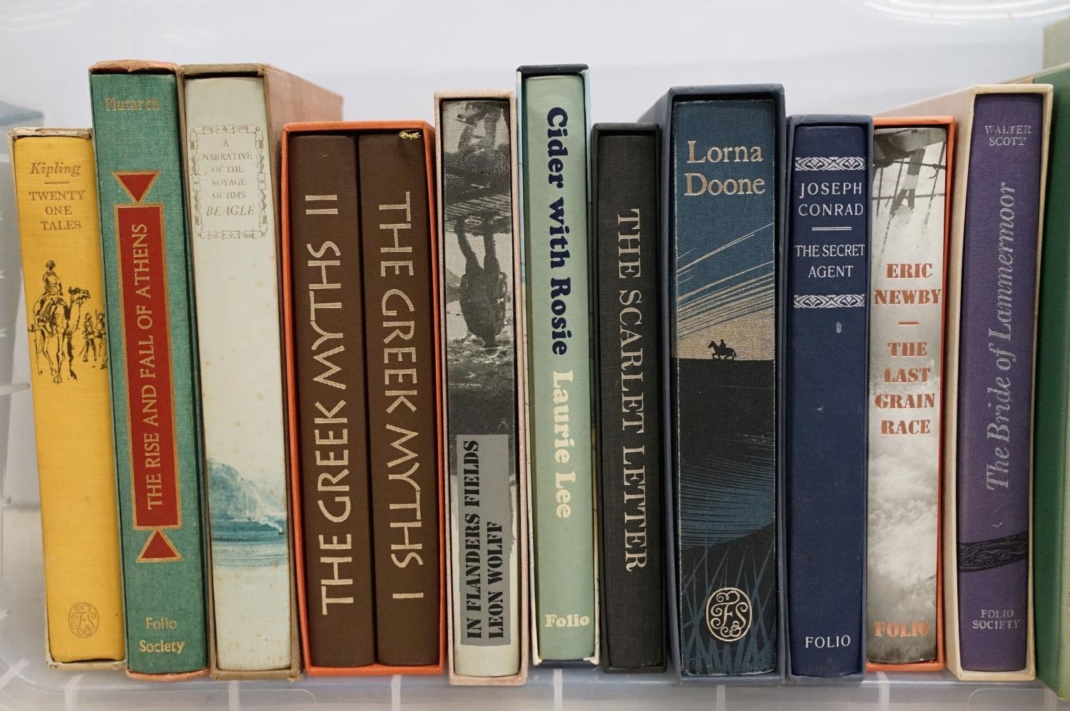 Books - A collection of The Folio Society books to include box sets, mostly housed within card sleeves, the lot to include E.M. Forster box set, Charlotte Emily Anne Bronte The Complete Novels box set, The Rise And Fall of Athens, Cider With Rosie (Laurie Lee), The Last Grain Race (Eric Newby), The Scarlet Letter, etc