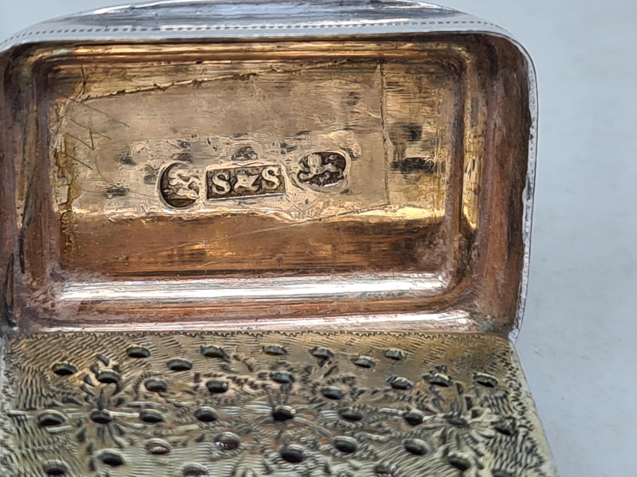 A George III small silver Vinaigrette with engraving and cartouche, Birmingham 1810, maker: S & S