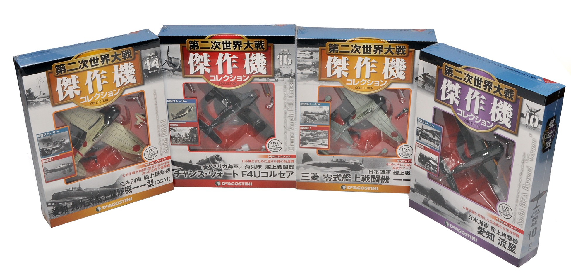 A group of 4 x Deagostini 1/72 diecast model aircraft of World War Two Theatre theme. Sealed in boxes.