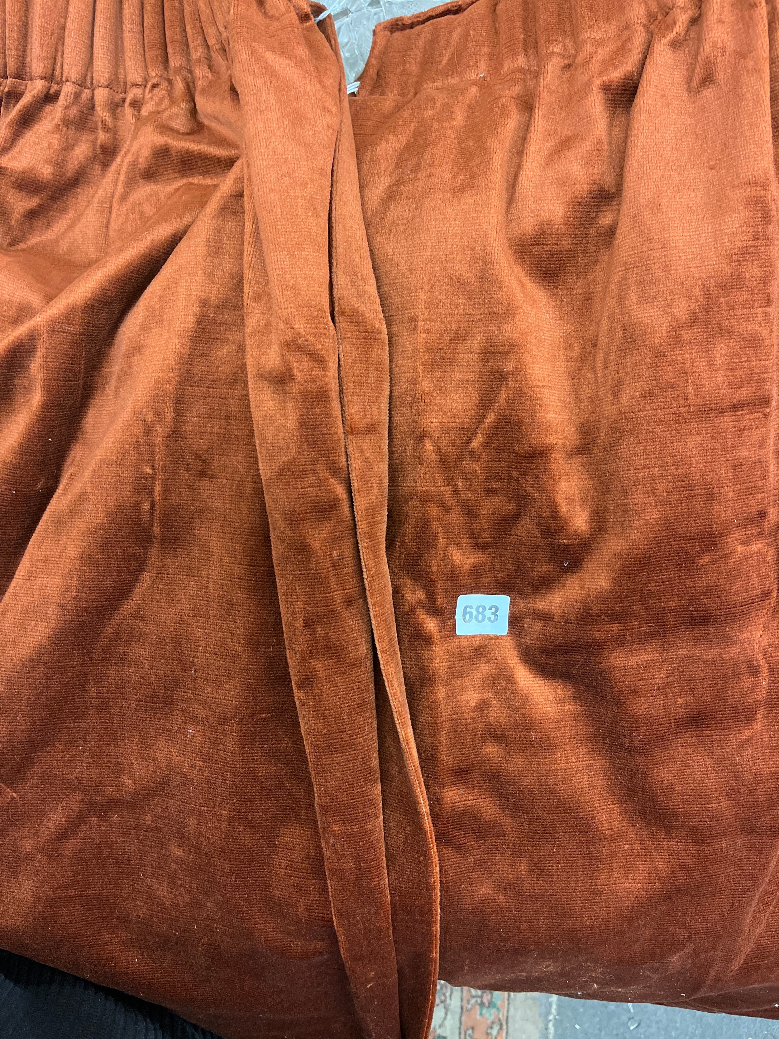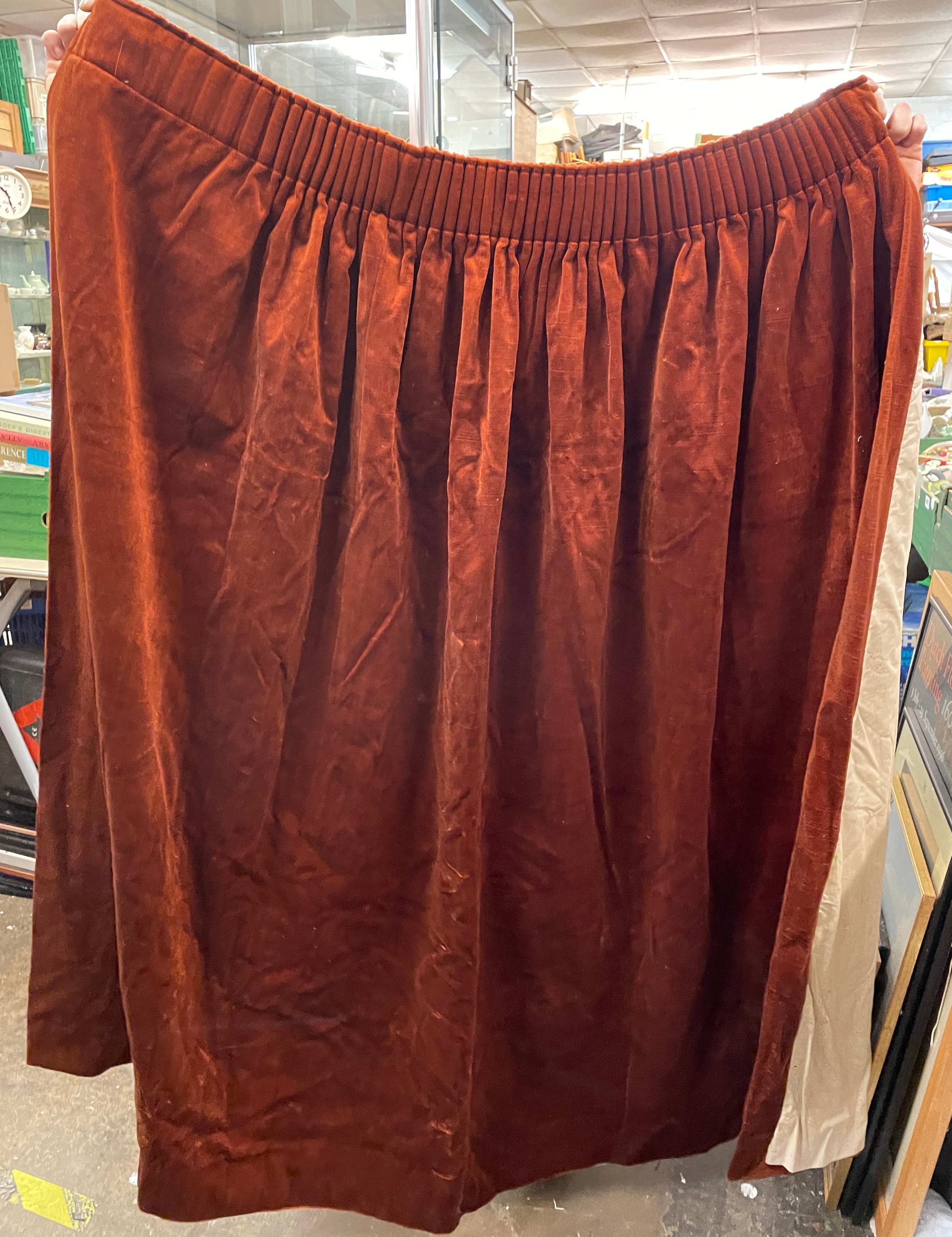 PAIR OF VELVET LINED CURTAINS 70 WIDE X 52 INCHES DROP APPROX