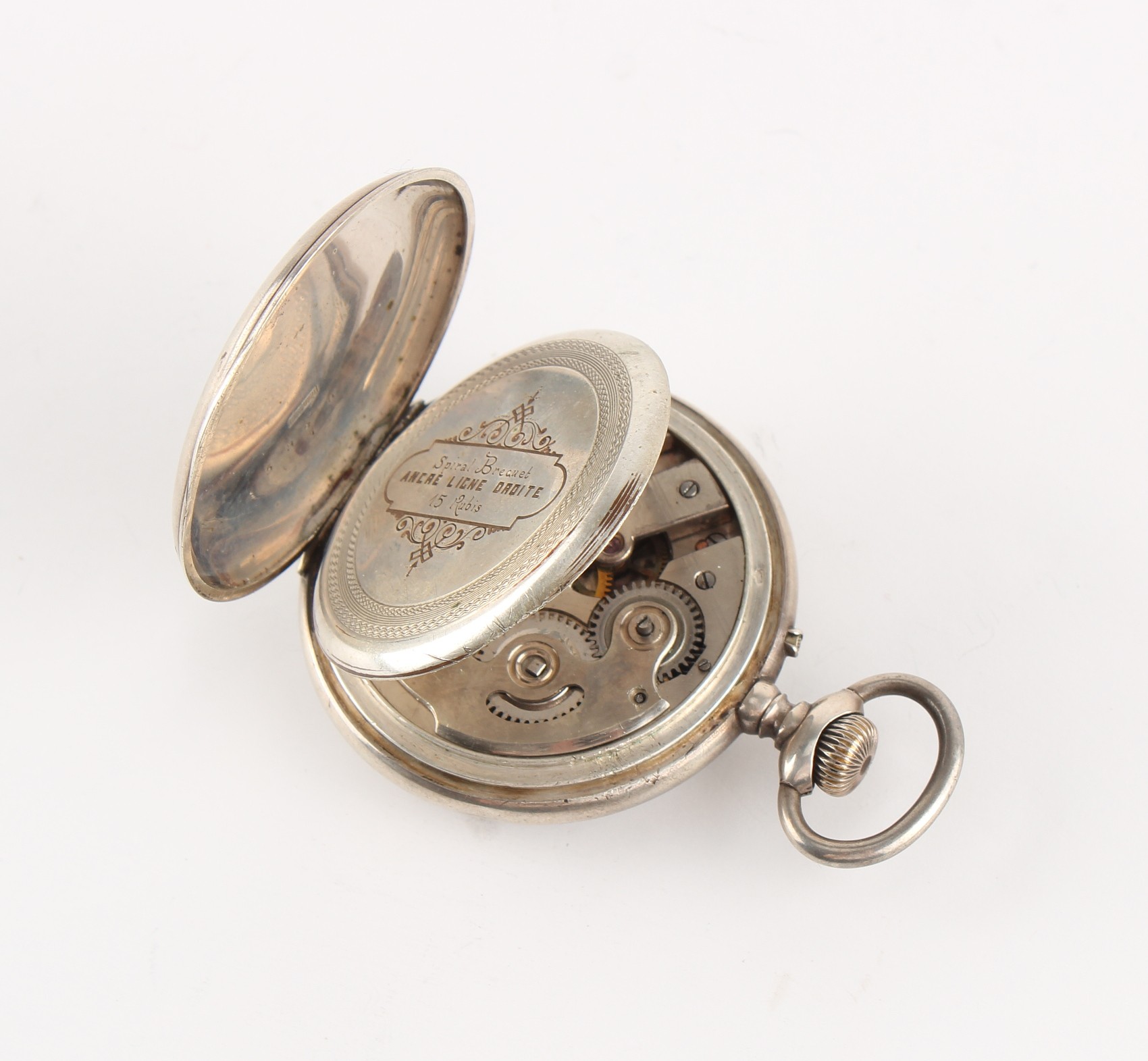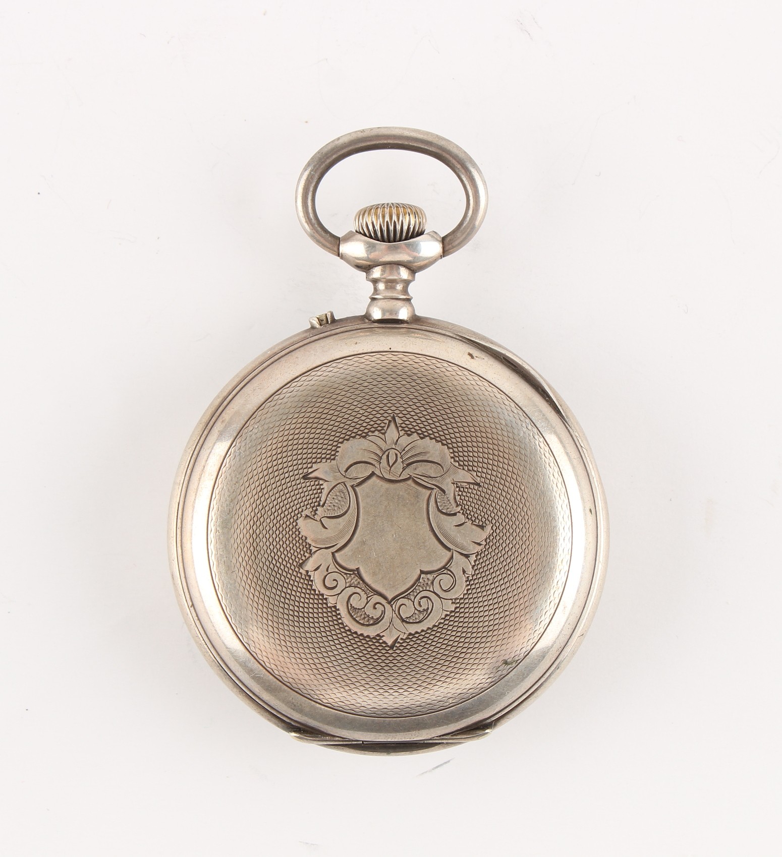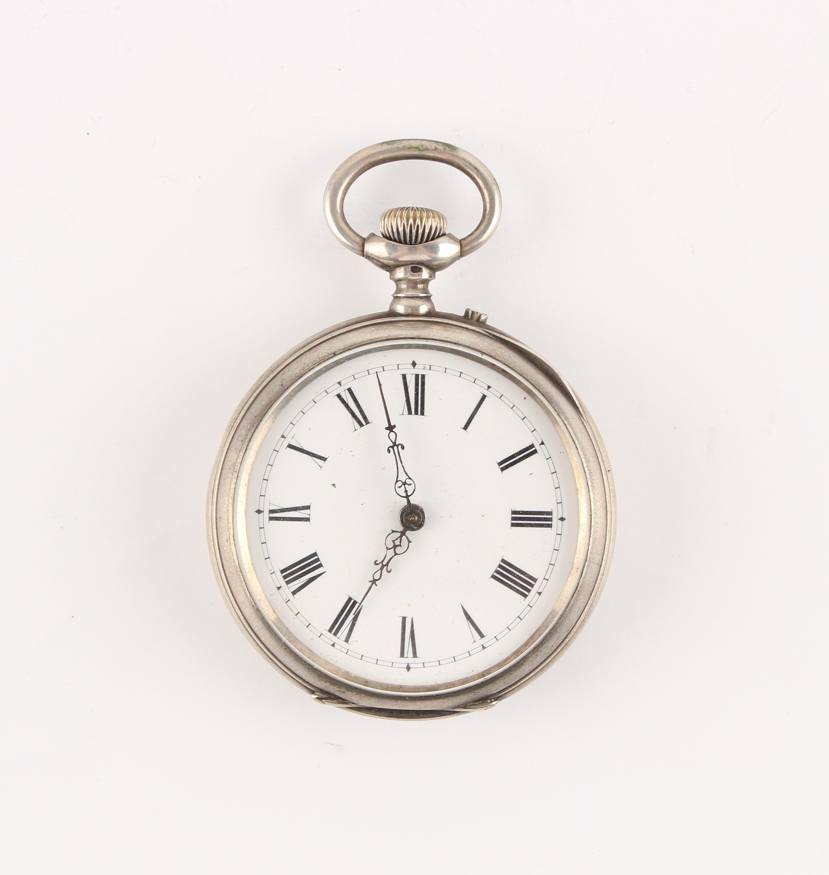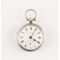 The Henry & Tricia Byrom Collection - a Swiss silver cased open faced pocket watch, keyless wind, 48mm diameter, appears to be working but no guarantees are given as to accuracy or reliability.