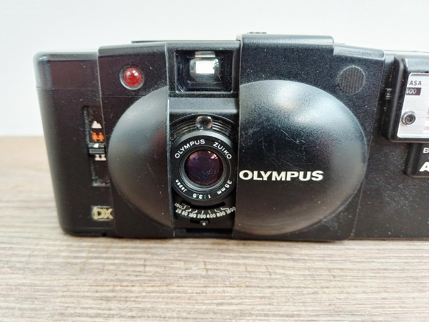 An Olympus XA3 ultra-compact 35mm viewfinder camera fitted w...