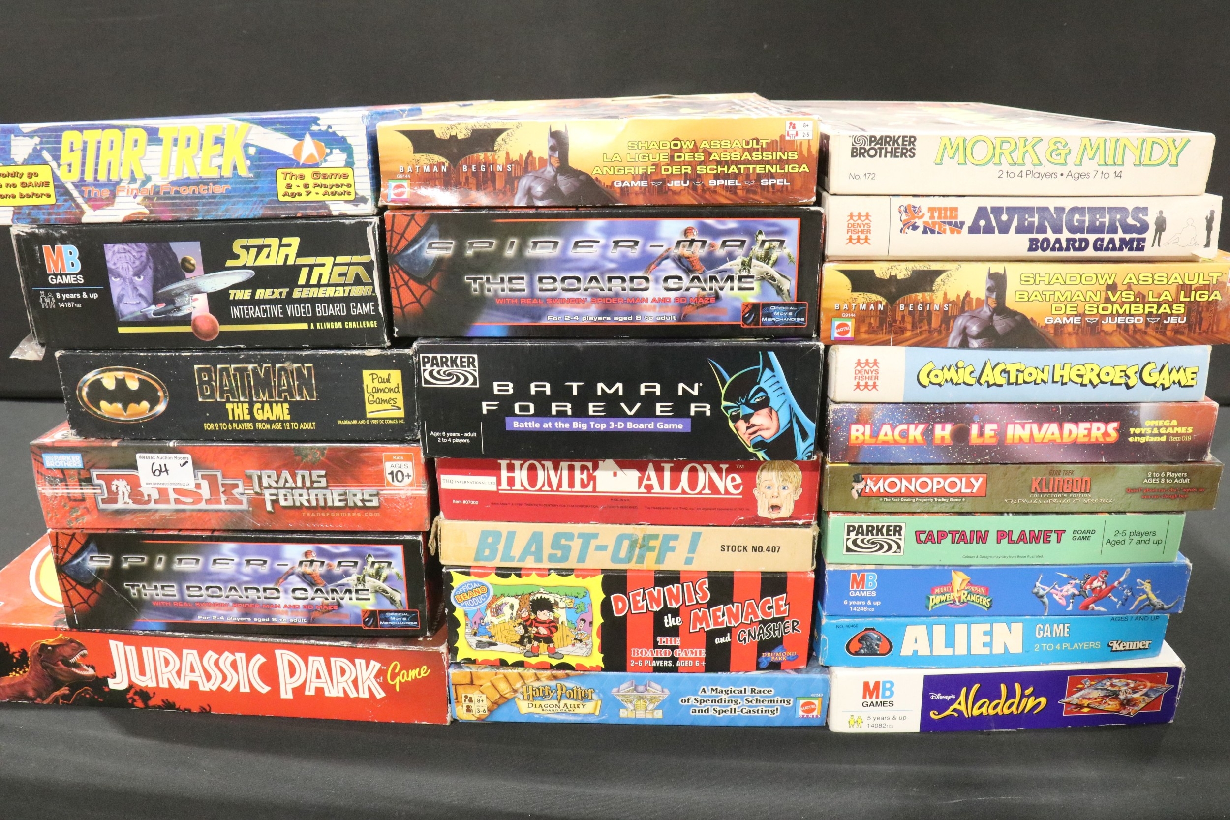 23 Boxed TV / Film / Sci Fi board games to include Parker Captain Planet, Parker Jurassic Park, Parker Mork & Mindy, Kenner Alien, MB Aladdin, Parker Batman Forever etc
