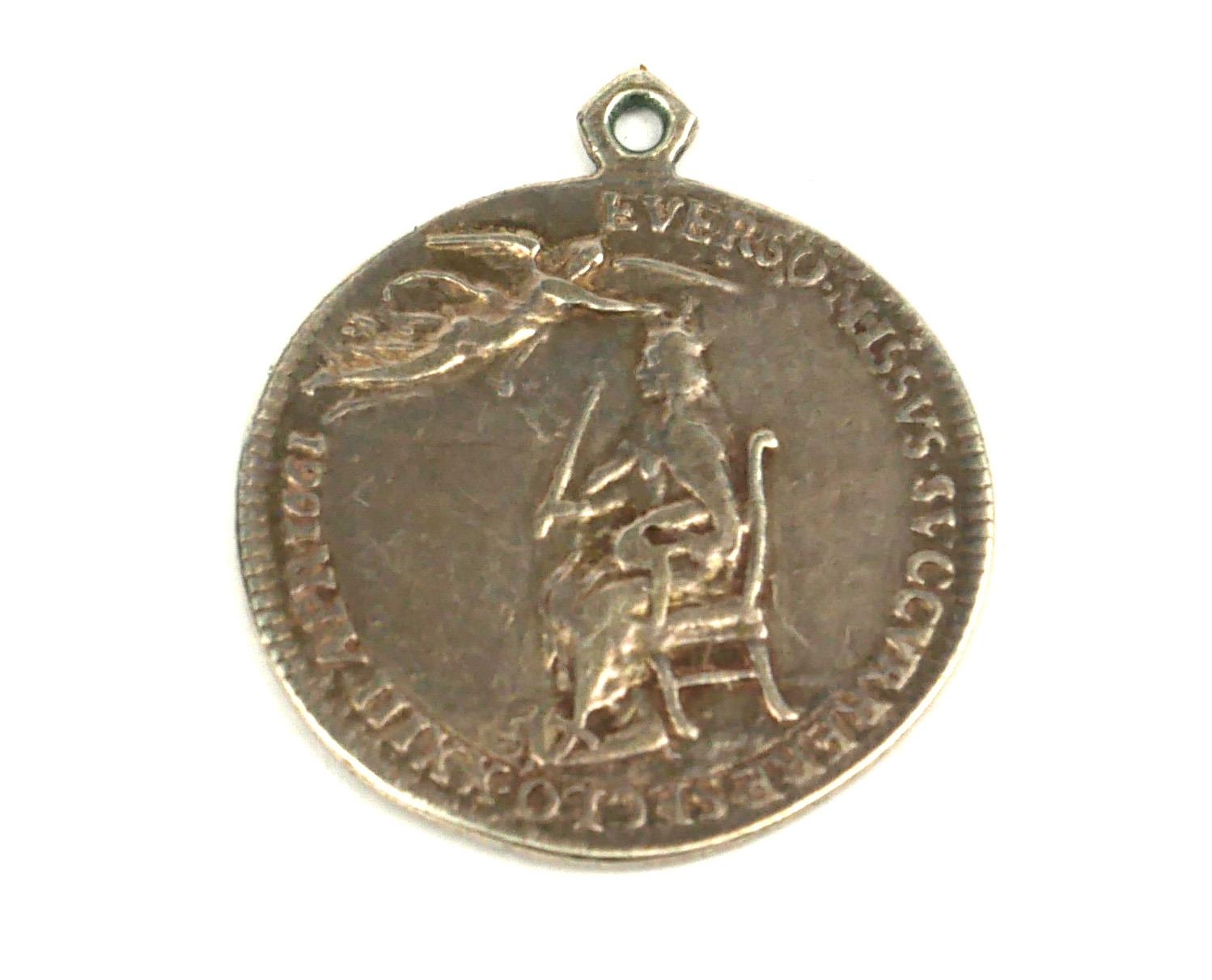 By T. Simon, crowned head right, Rev King enthroned, crowned by Victory, with a pendant bale.