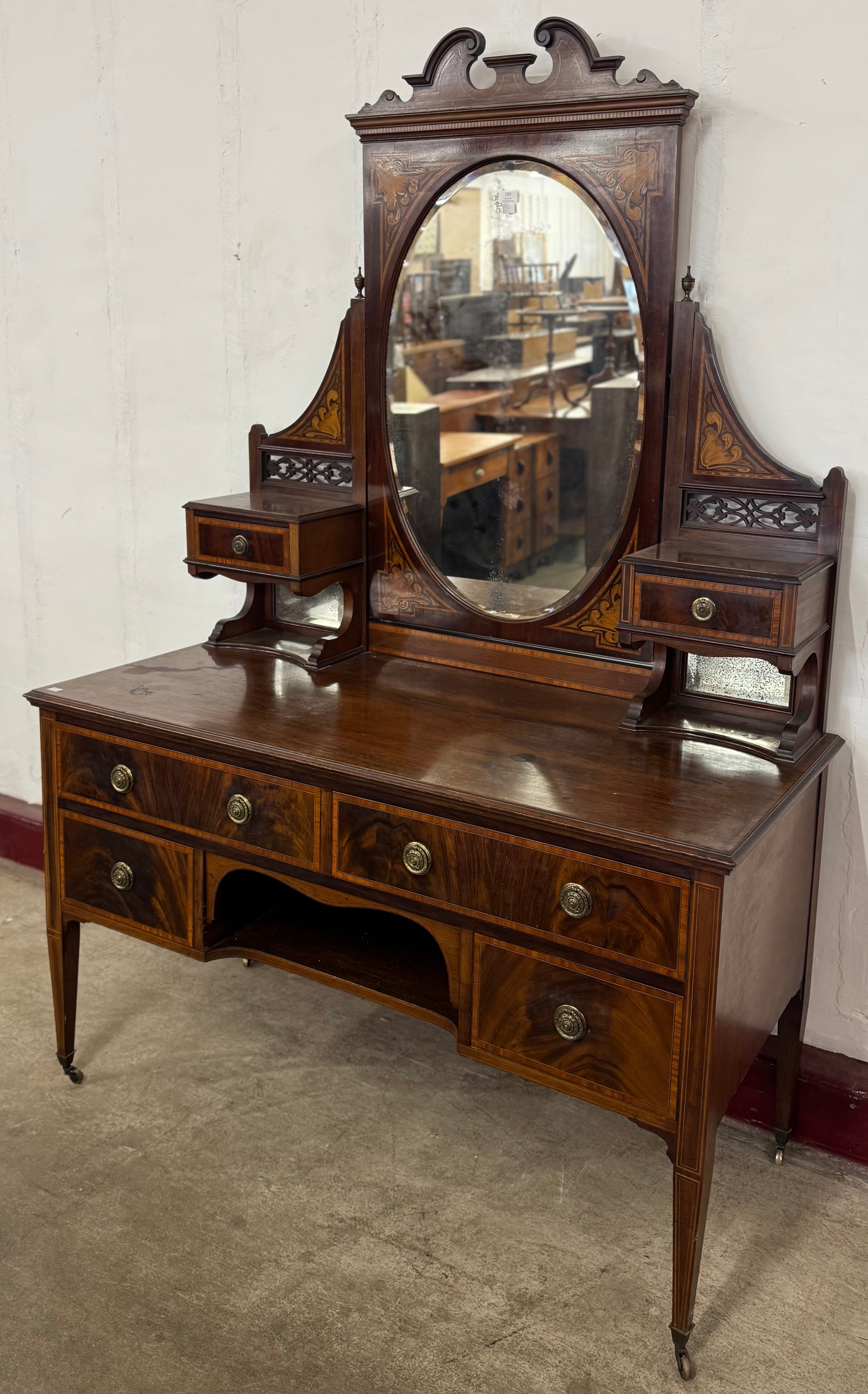 An Edward VII inlaid mahogany dressing table