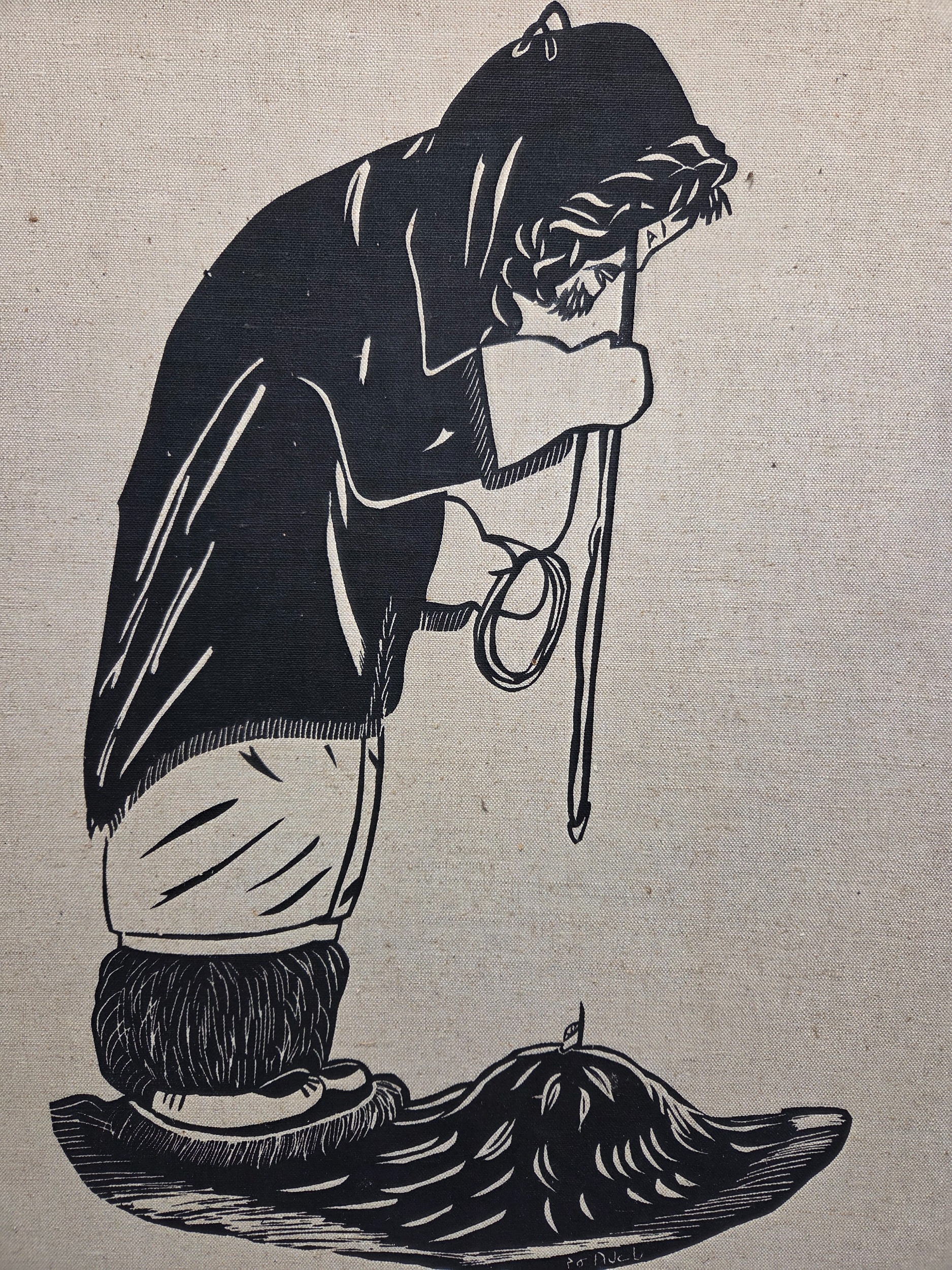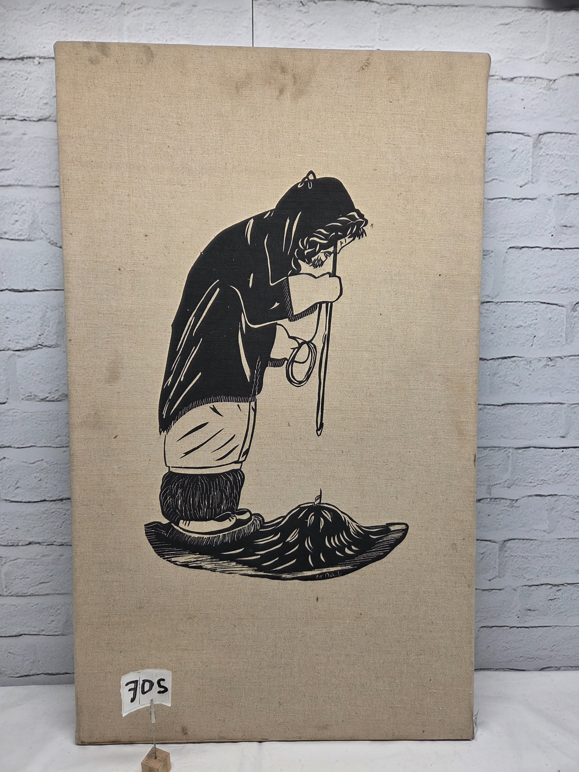 Jeanie Tigullaraq (B.1958) An Inuit Canvas Silkscreen Print on Cnavas, Mounted on a Wooden Board (approx 90cm x 54cm)