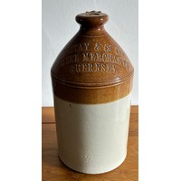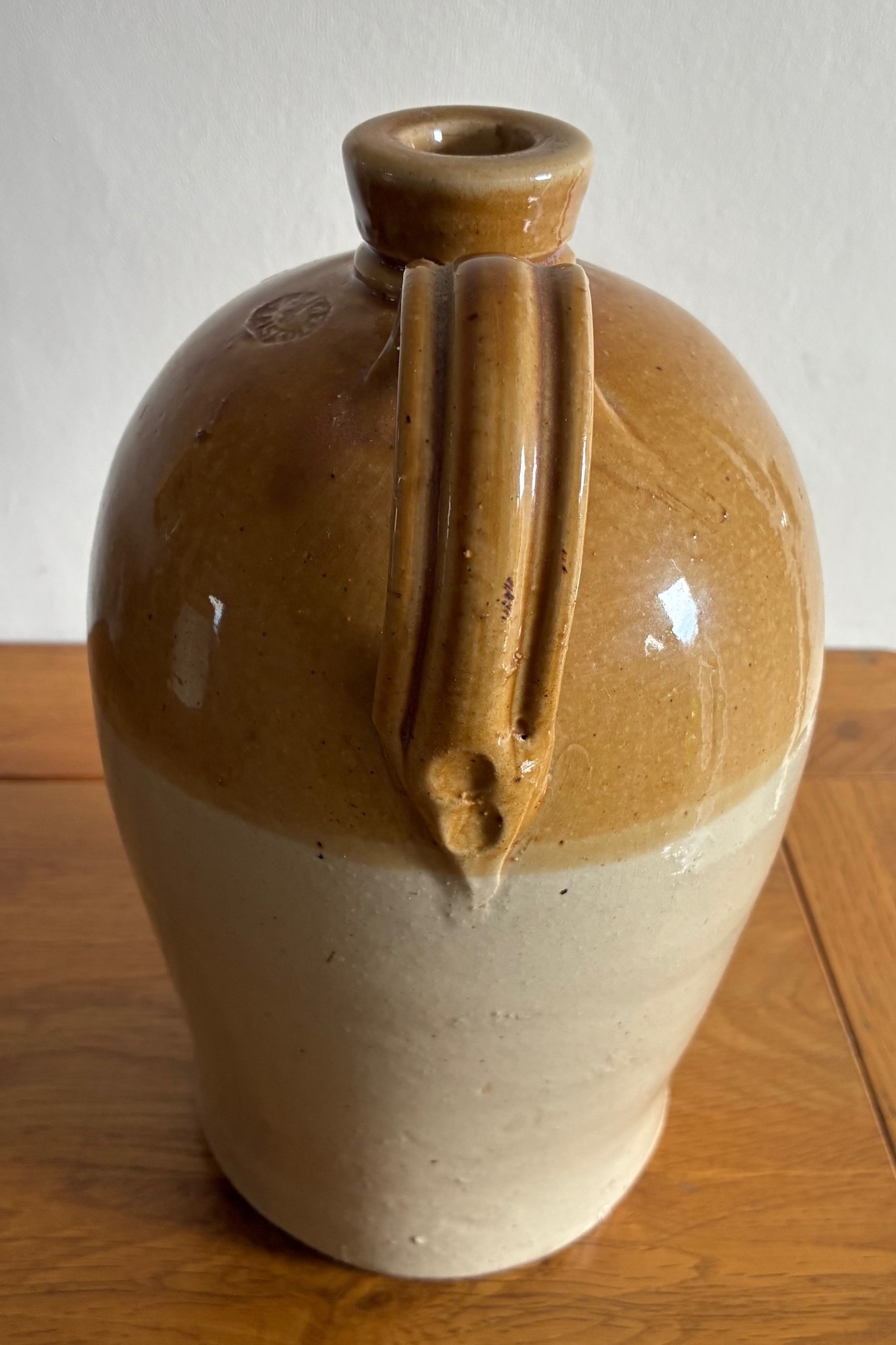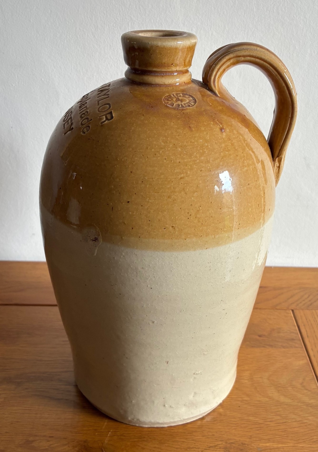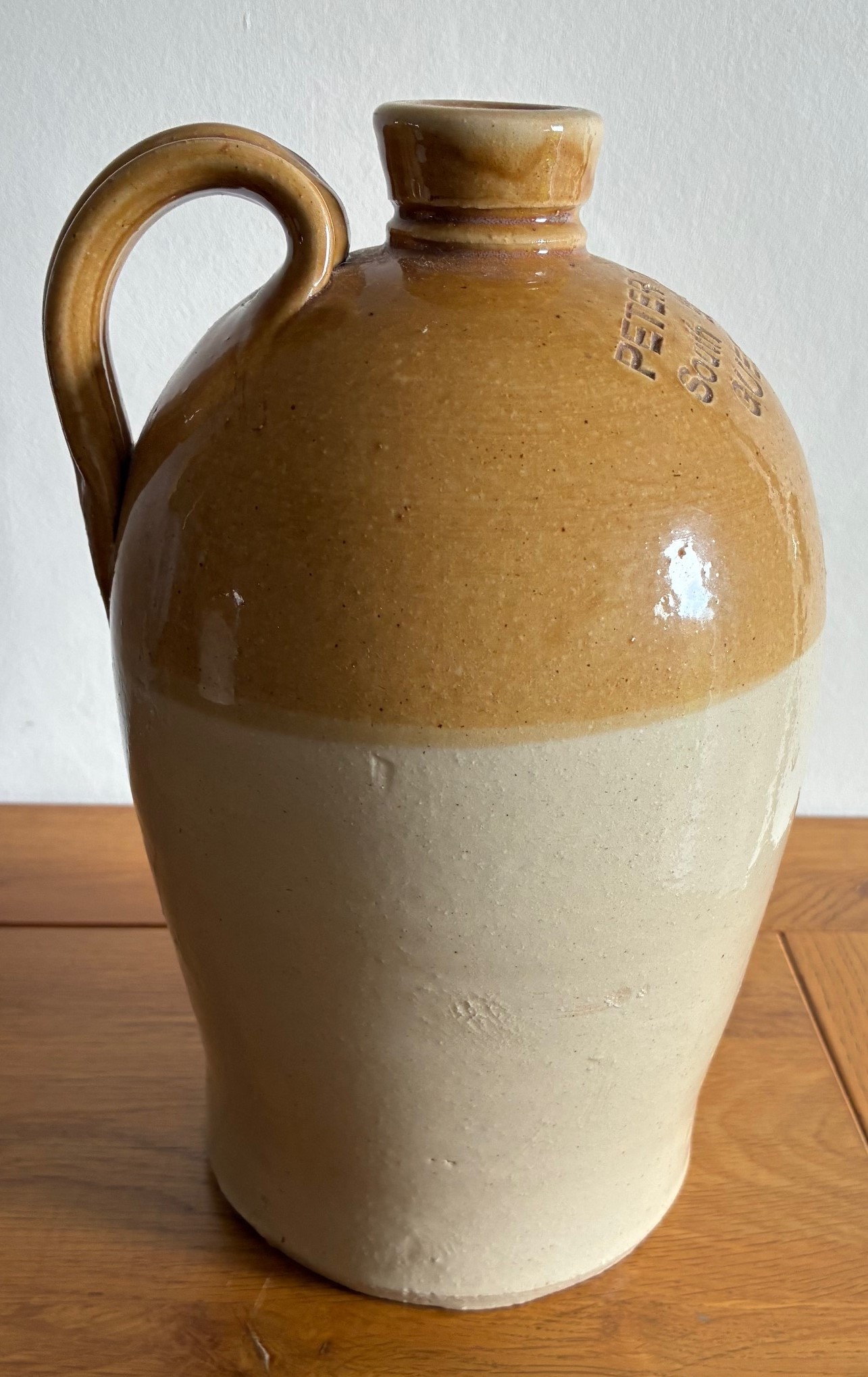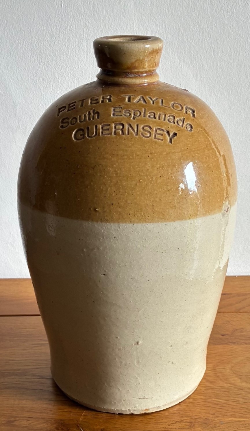 Guernsey stoneware two tone half gallon size flagon, impressed Peter Taylor South Esplanade Guernsey, 25.5cm high.