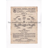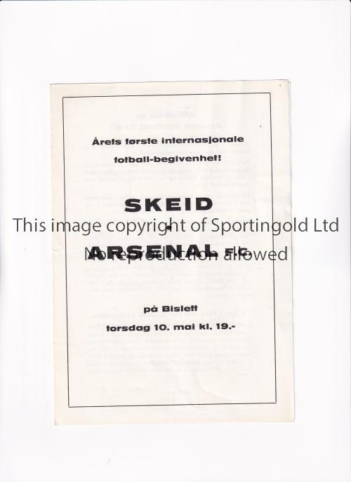 ARSENAL Scarce programme for the away Friendly v Skeid 10/5/1962 in Oslo, Norway, team changes. Generally good