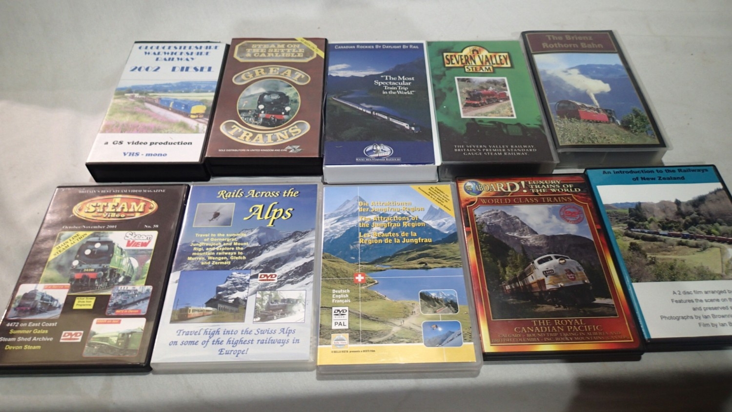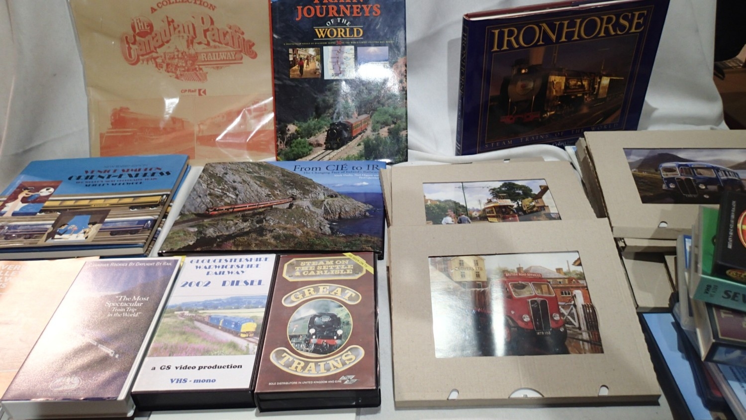 Railway relates books, video, DVDs plus framed prints of buses, coaches and commercials. UK P&P Group 3 (£35+VAT for the first lot and £10+VAT for subsequent lots)