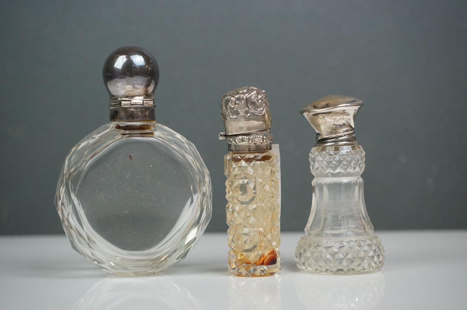 A collection of vintage silver topped scent bottles to include hallmarked examples.