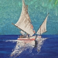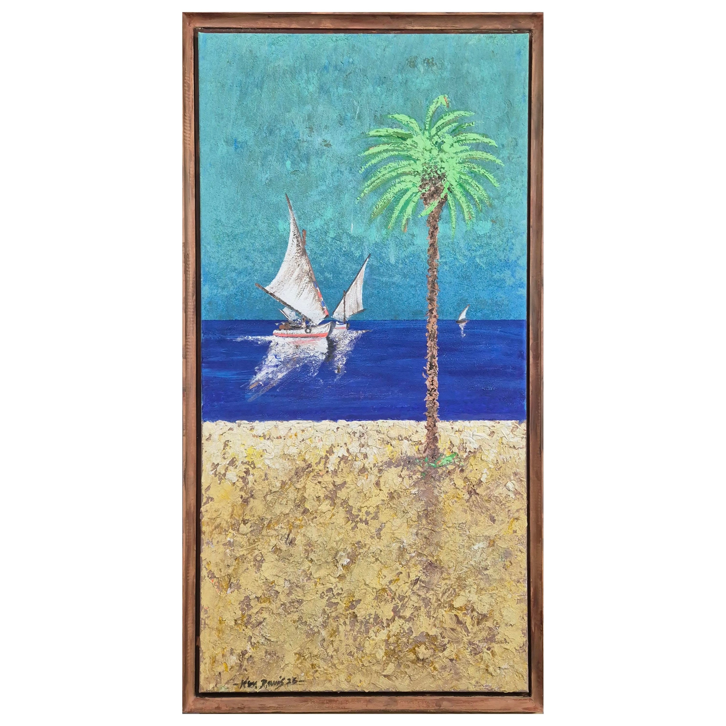 KEN DAVIS. TRANQUILITY (LIBYA). acrylic on canvas, 106cm x 55cm, framed.