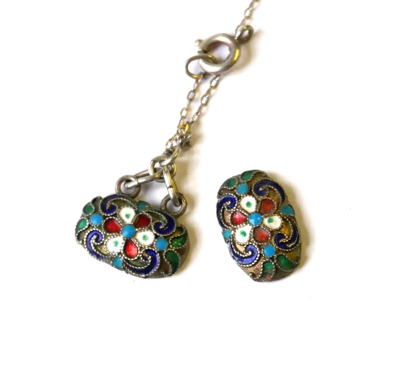 A STERLING SILVER AND ENAMEL RUSSIAN DESIGN PENDANT NECKLACE