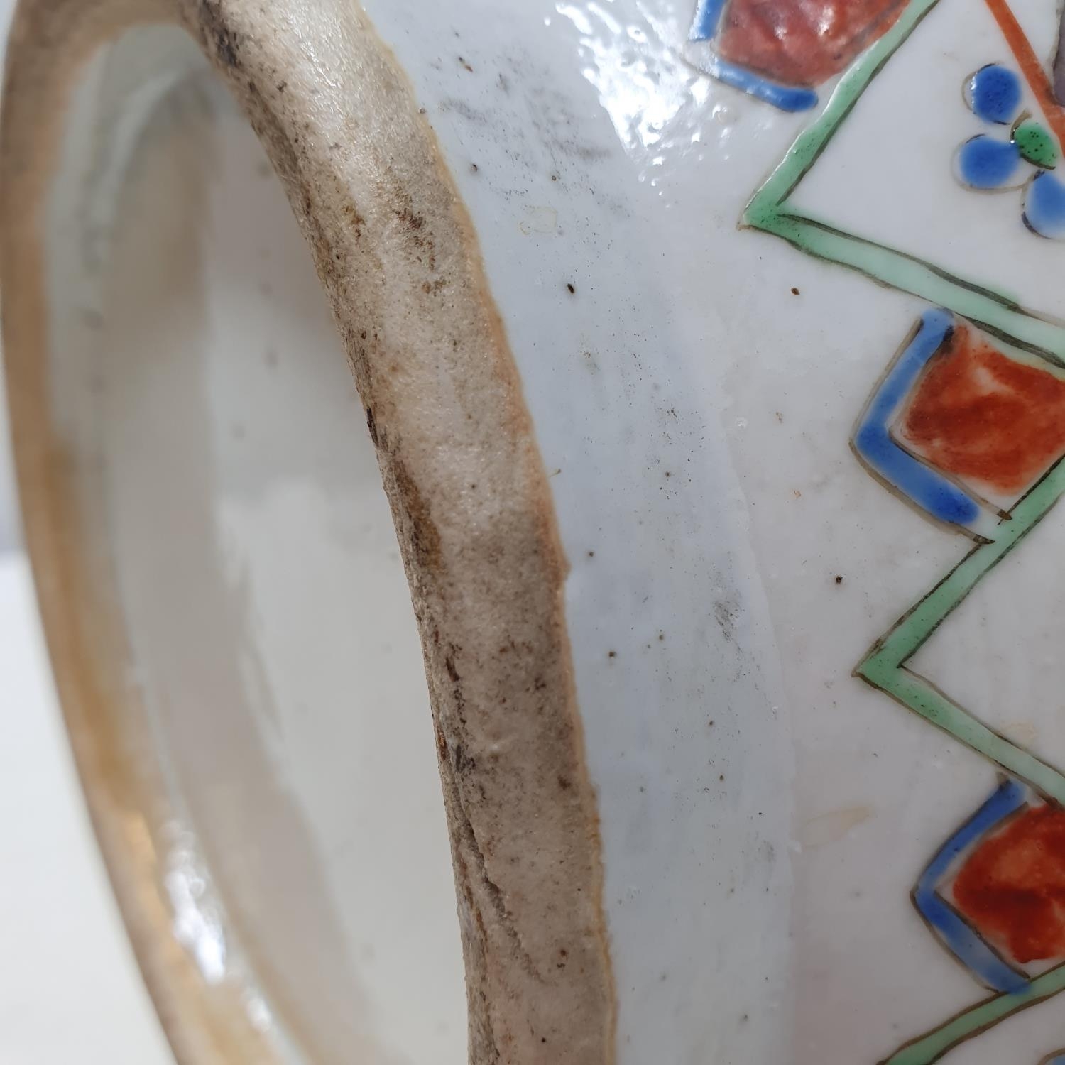 Quite a bit of rubbing, especiall to the gilt, one face of a seated man very feint, a few firing cracks, no large chips or restoration