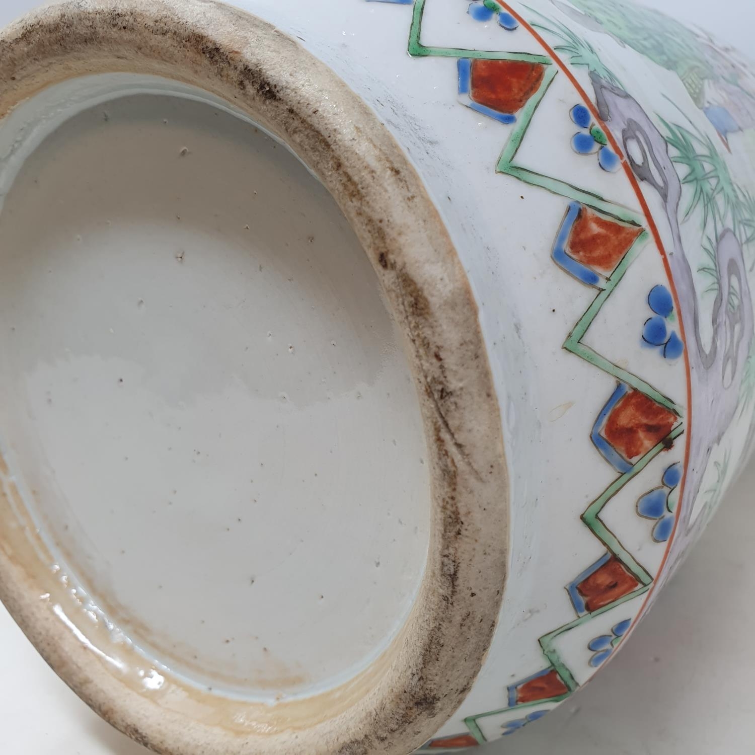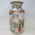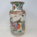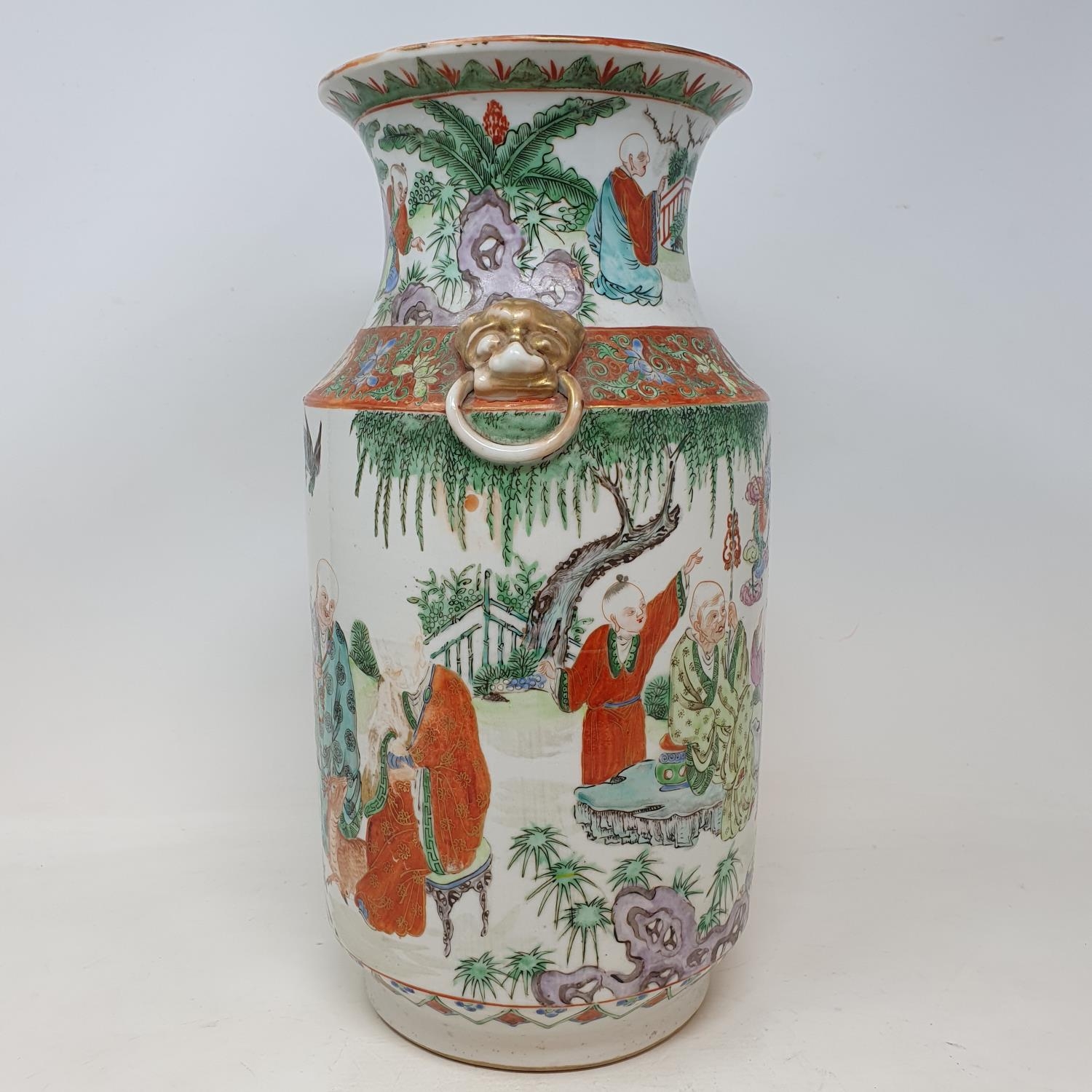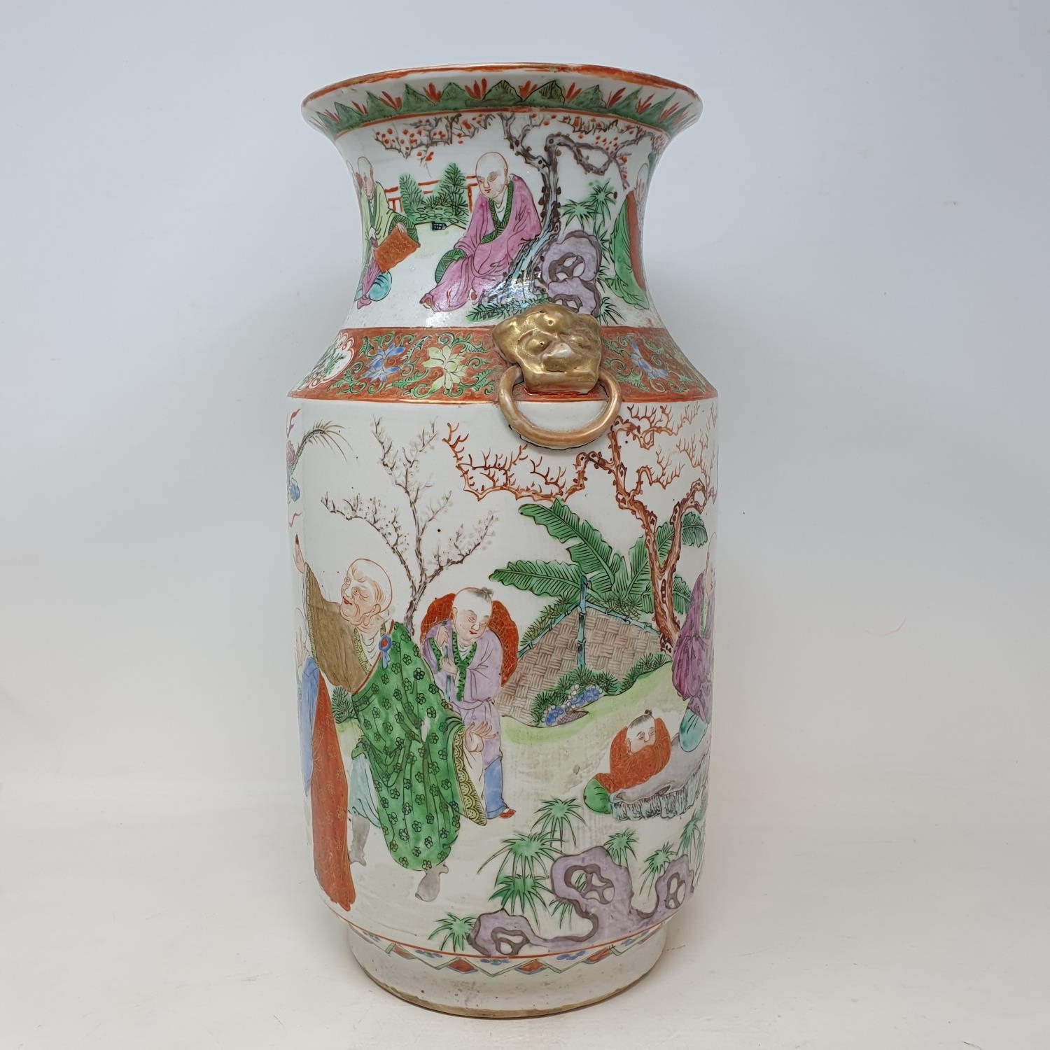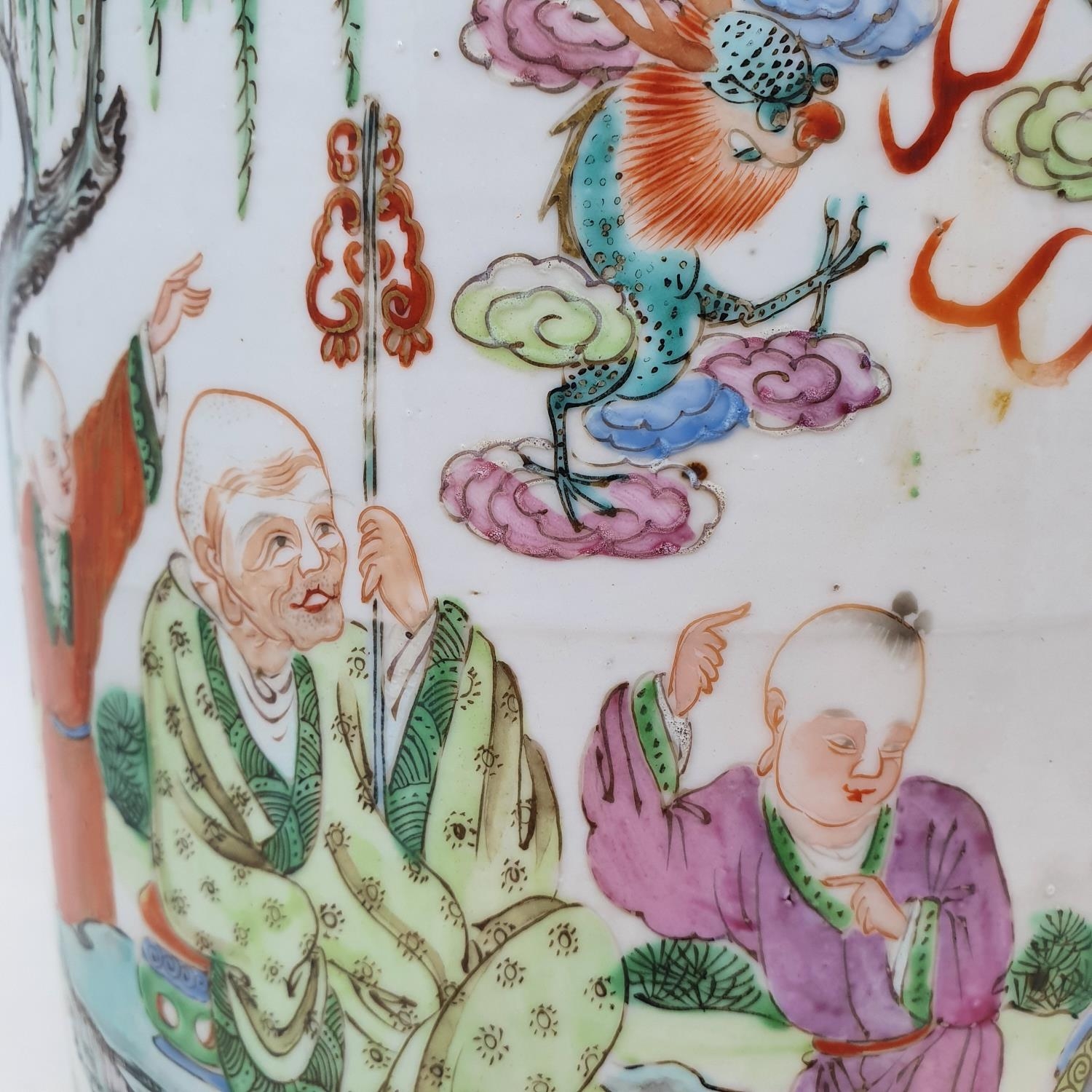 A Chinese famille rose vase, of slightly tapering form, decorated sage, other figures, a deer, a Dog of Fo, other animals and foliage, 35.5 cm high