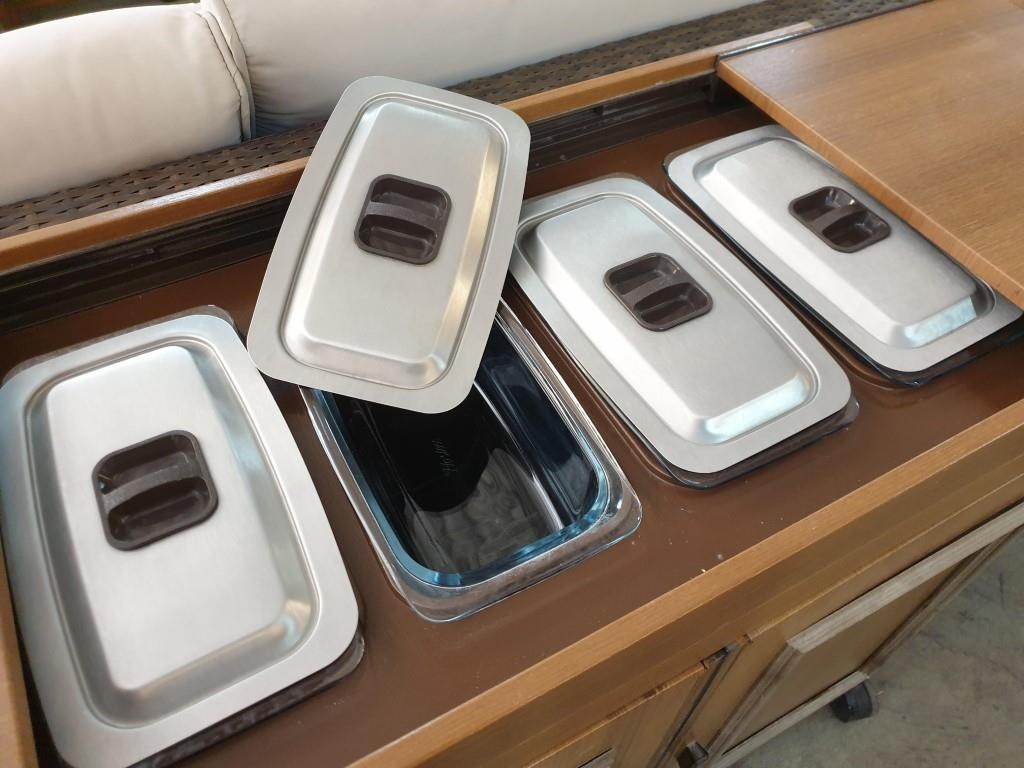 Phillips Hostess Trolley with 4 x Lidded Glass Containers under Sliding Top (73 x 37 x 70cm)
