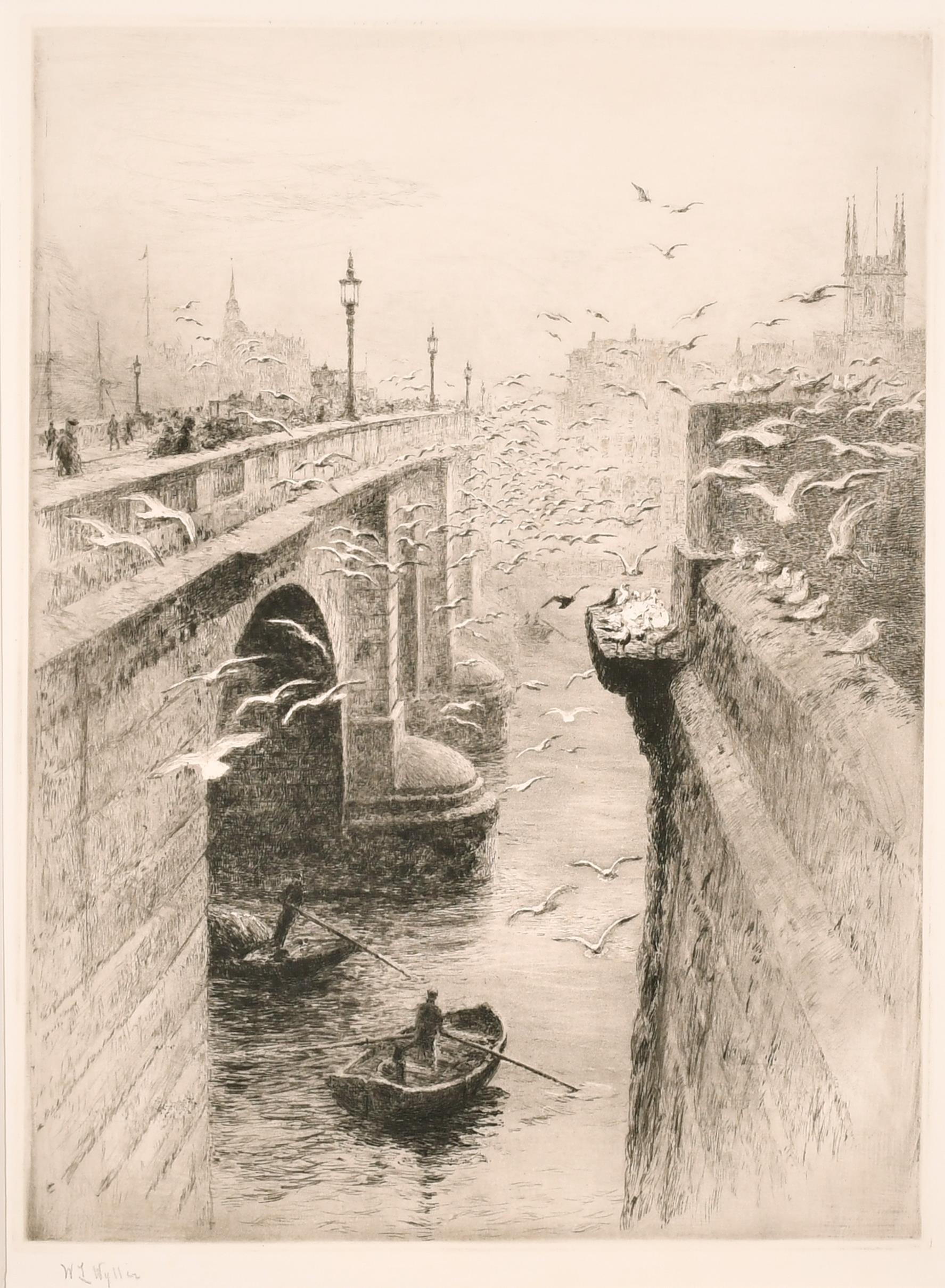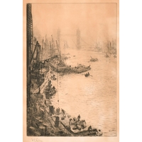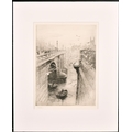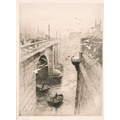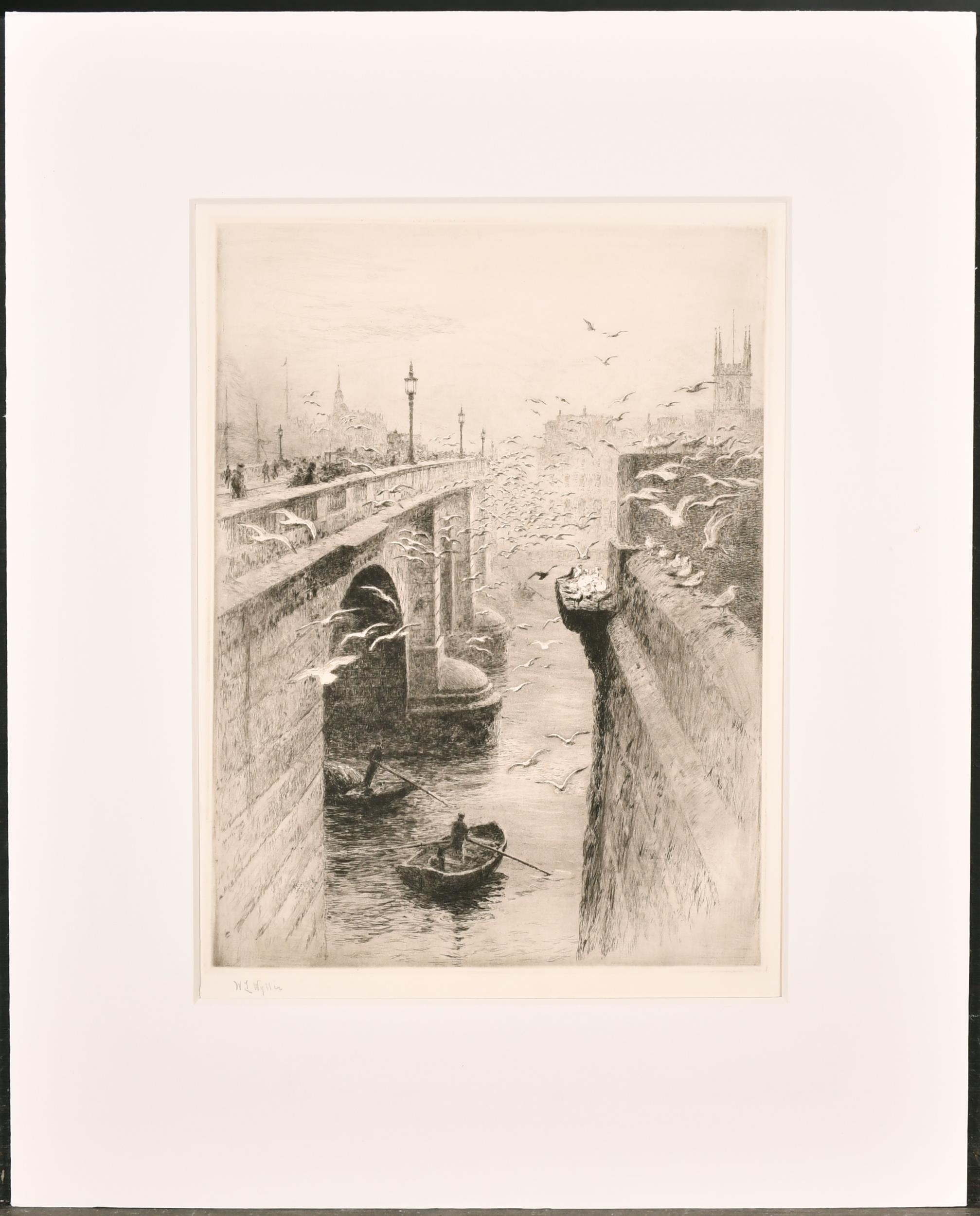 William Lionel Wyllie (1851-1931) British. "London Bridge and Southwark Cathedral From Fishmonger's Hall", Etching, Signed in pencil, and inscribed on a label verso, mounted, unframed 11.75" x 8.75" (29.8 x 22.2cm)