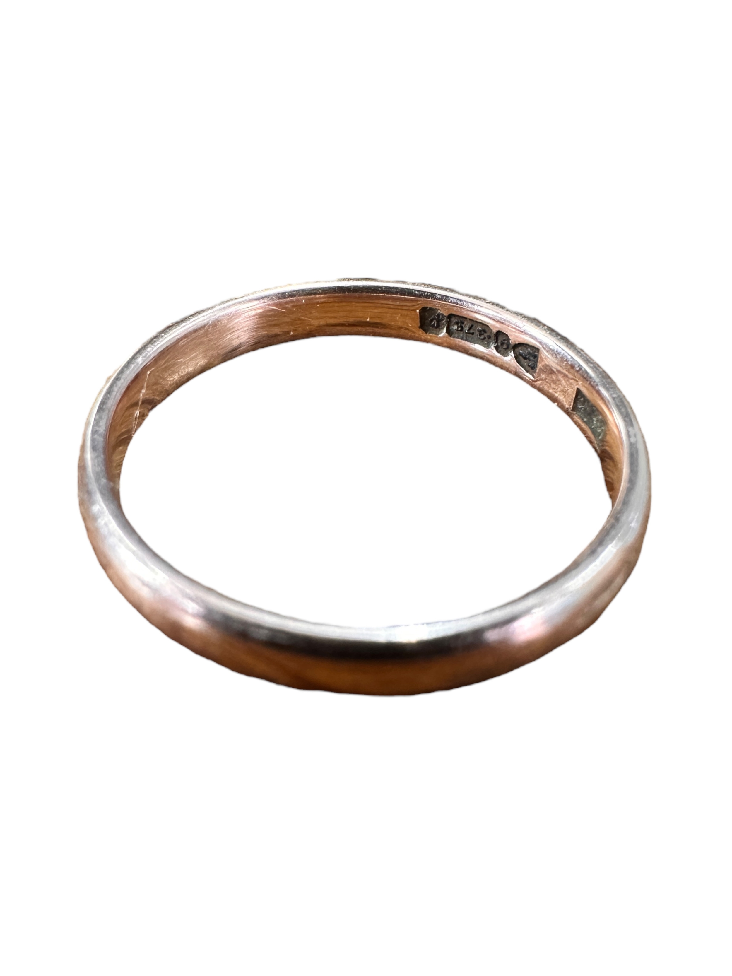 Antique Nine Carat Rose Gold Wedding Band. Size M, 1.92g