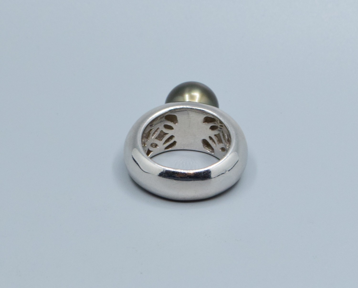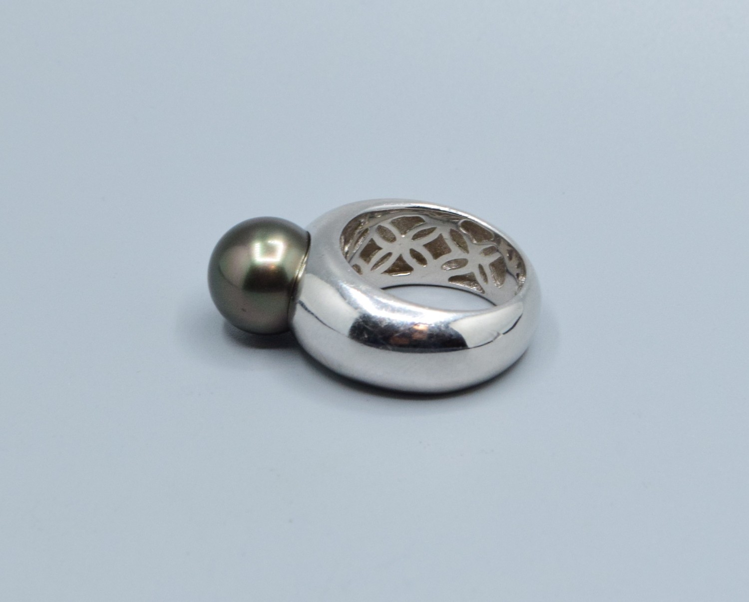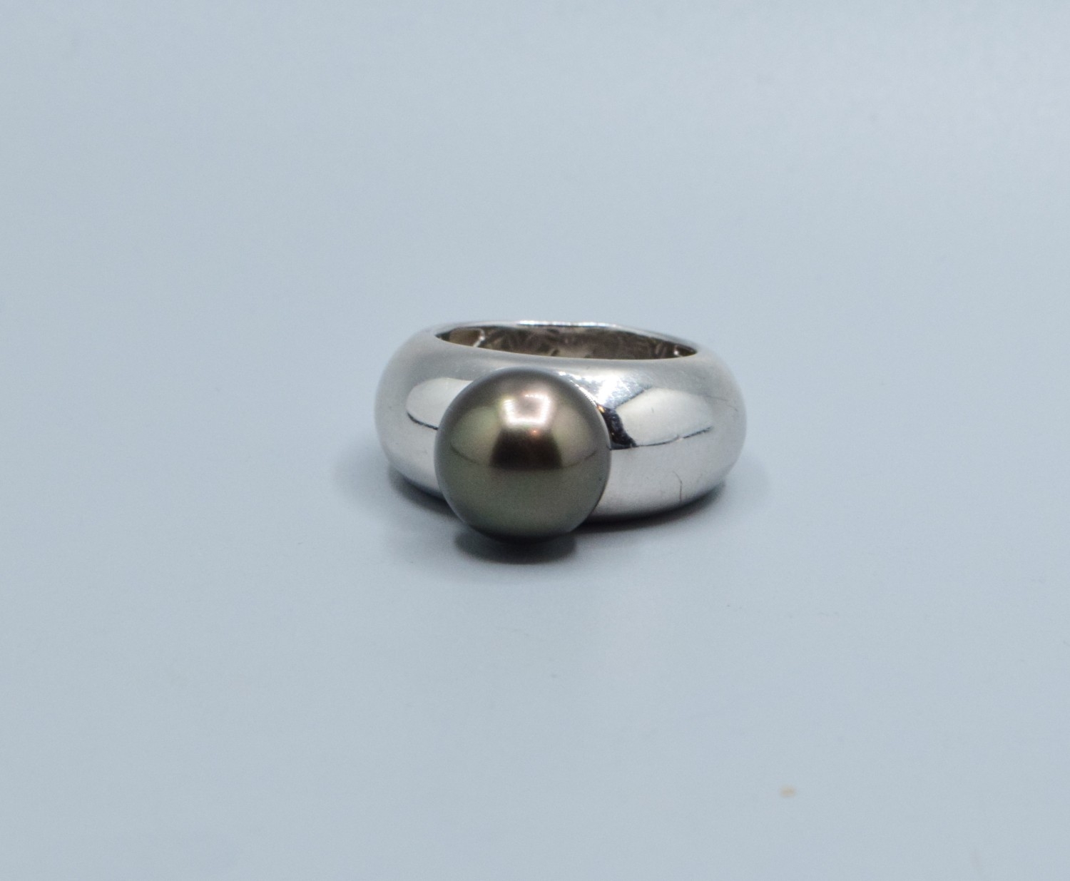 925 silver ladies large design South Sea pearl single stone dress ring on a solid band size Q