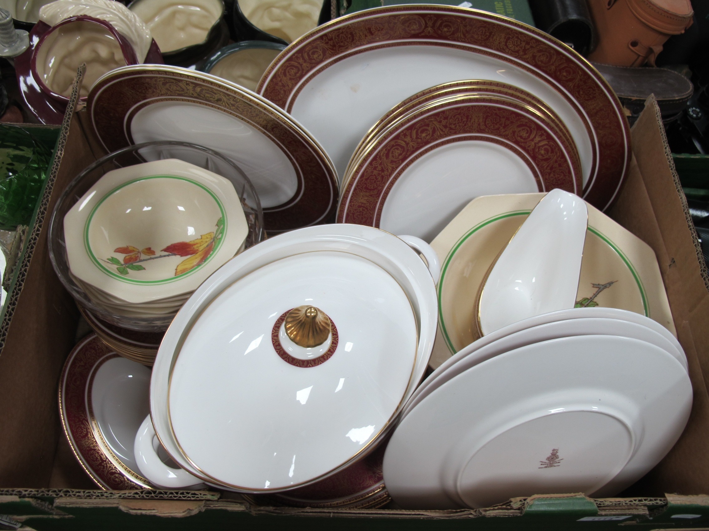 Royal Doulton "Buckingham" H4971 Part Dinner Service, forty-one pieces approximately, cut glass bowl, Royal Doulton bowl