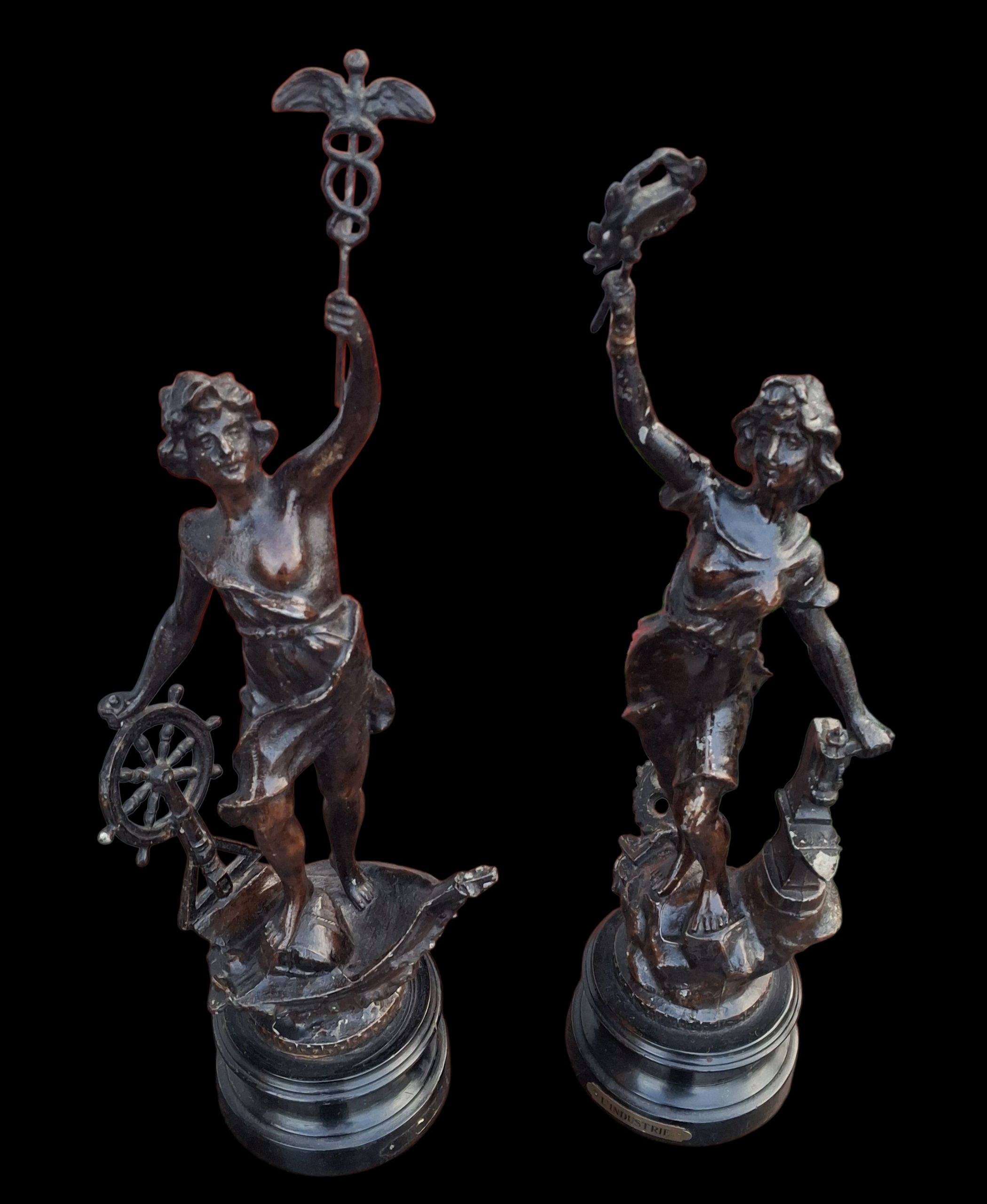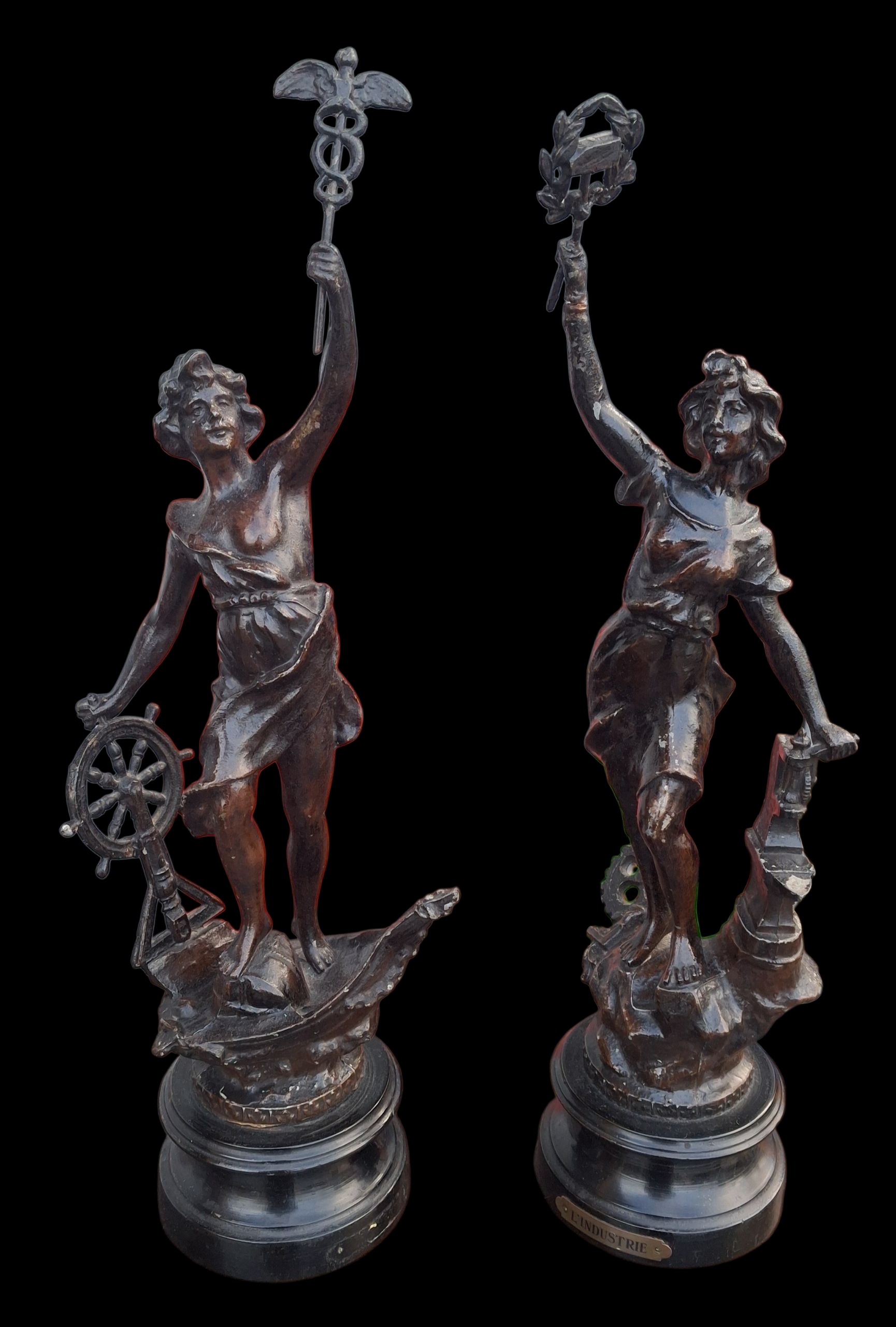 A PAIR OF 18" TALL SPELTER FIGURINES