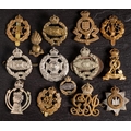 A small group of WWII cap badges: including Tank Regiment, RAC, Devonshire Regiment and others.