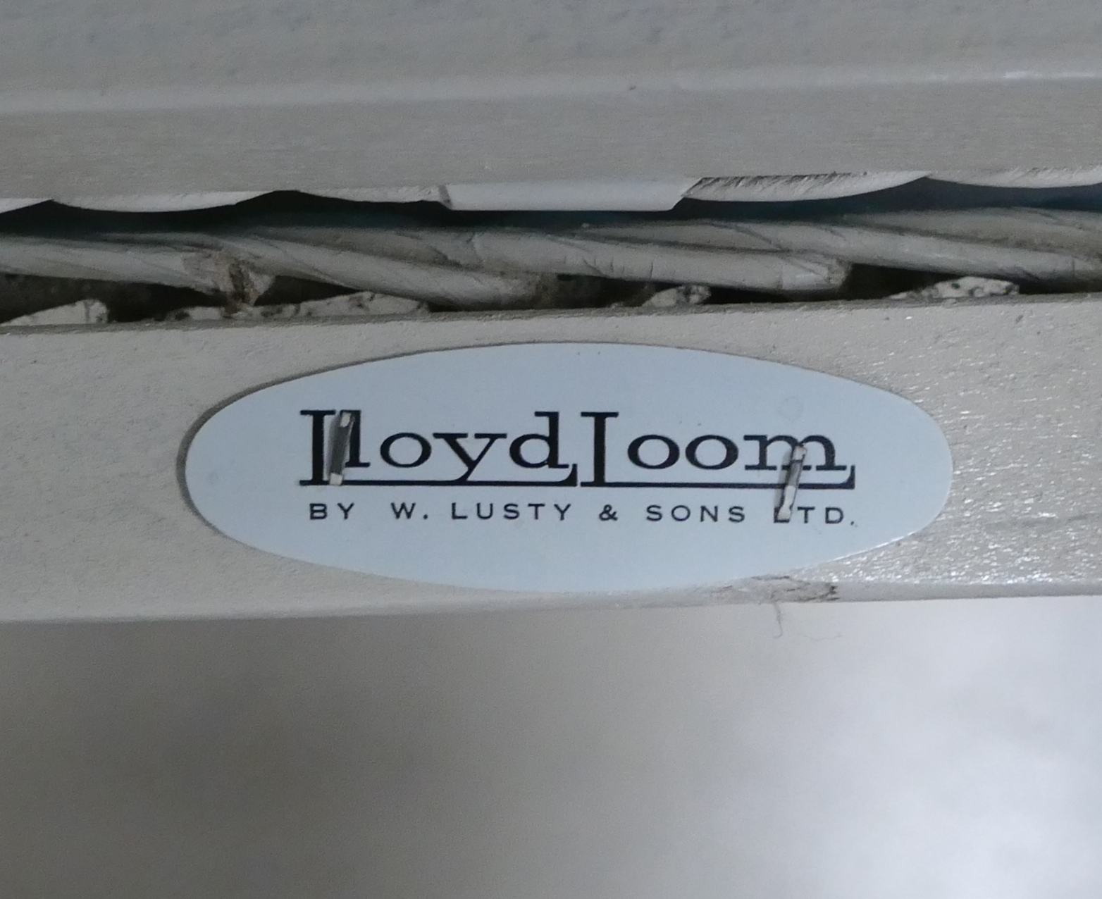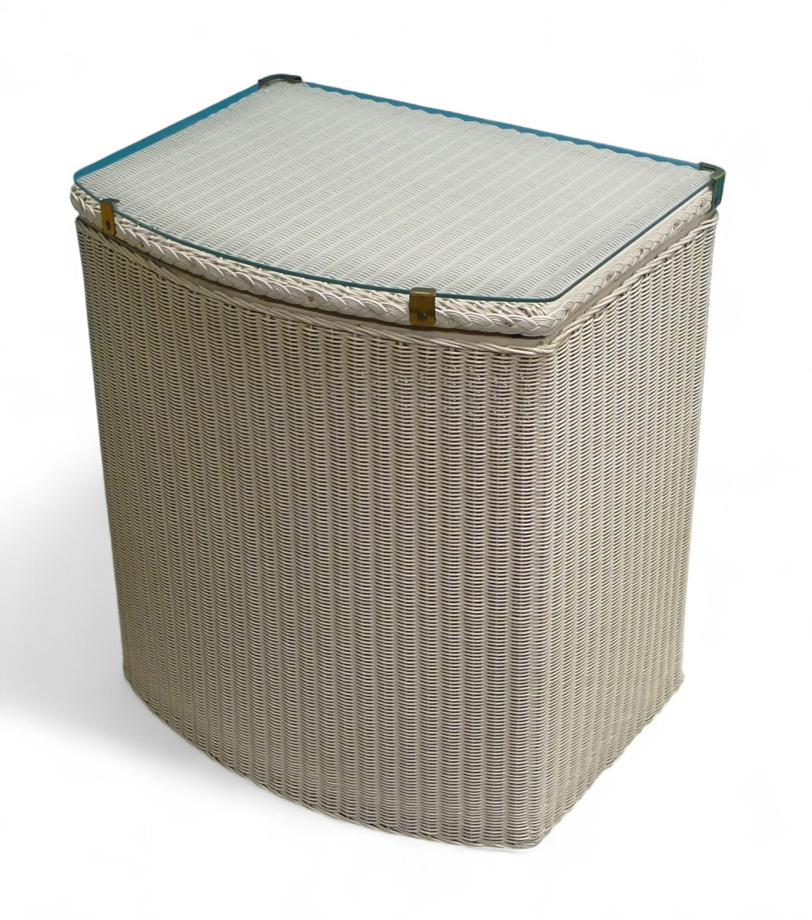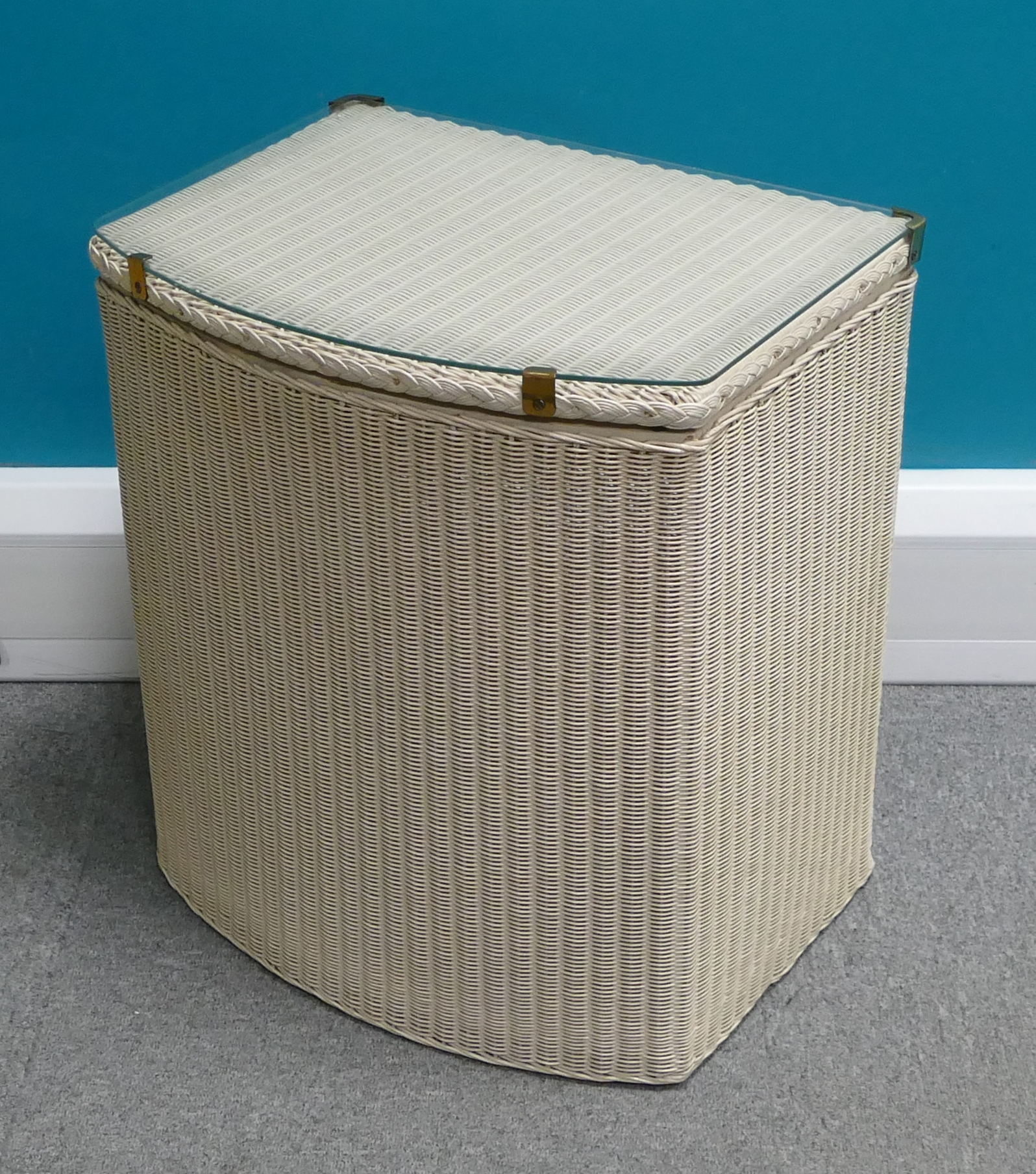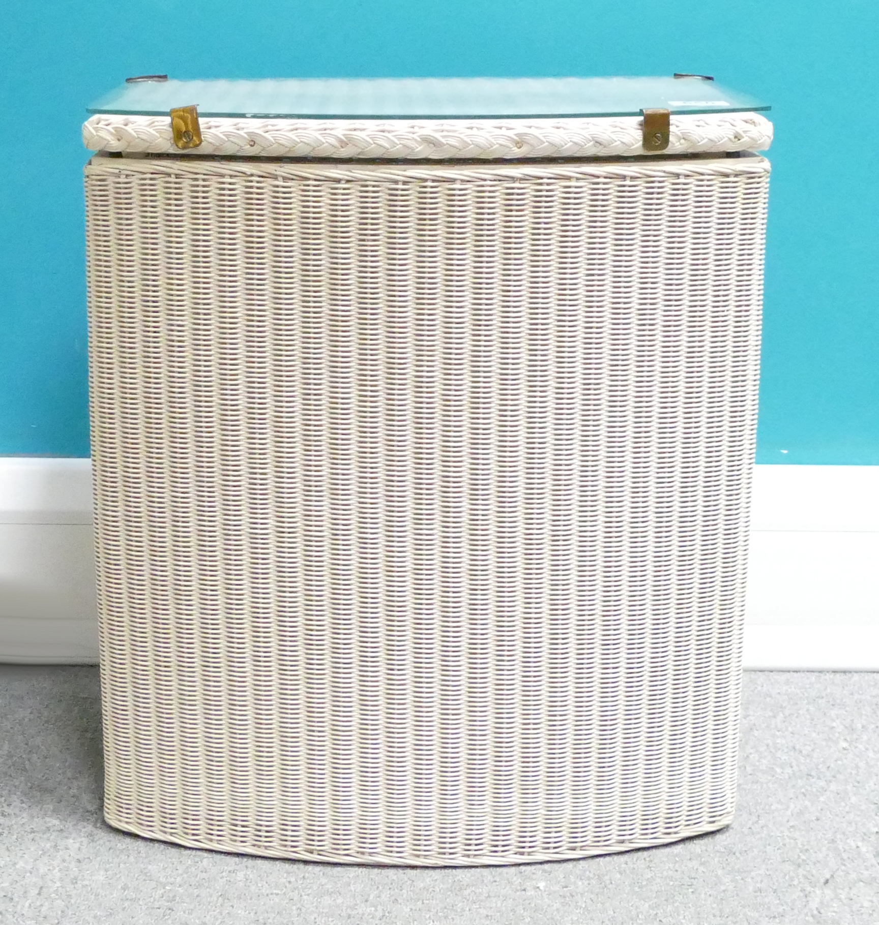 Lloyd Loom glass topped Laundry Basket by W. Lusty & Sons Ltd, white with original label. Measures 53cm tall x 46cm wide x 35cm deep
