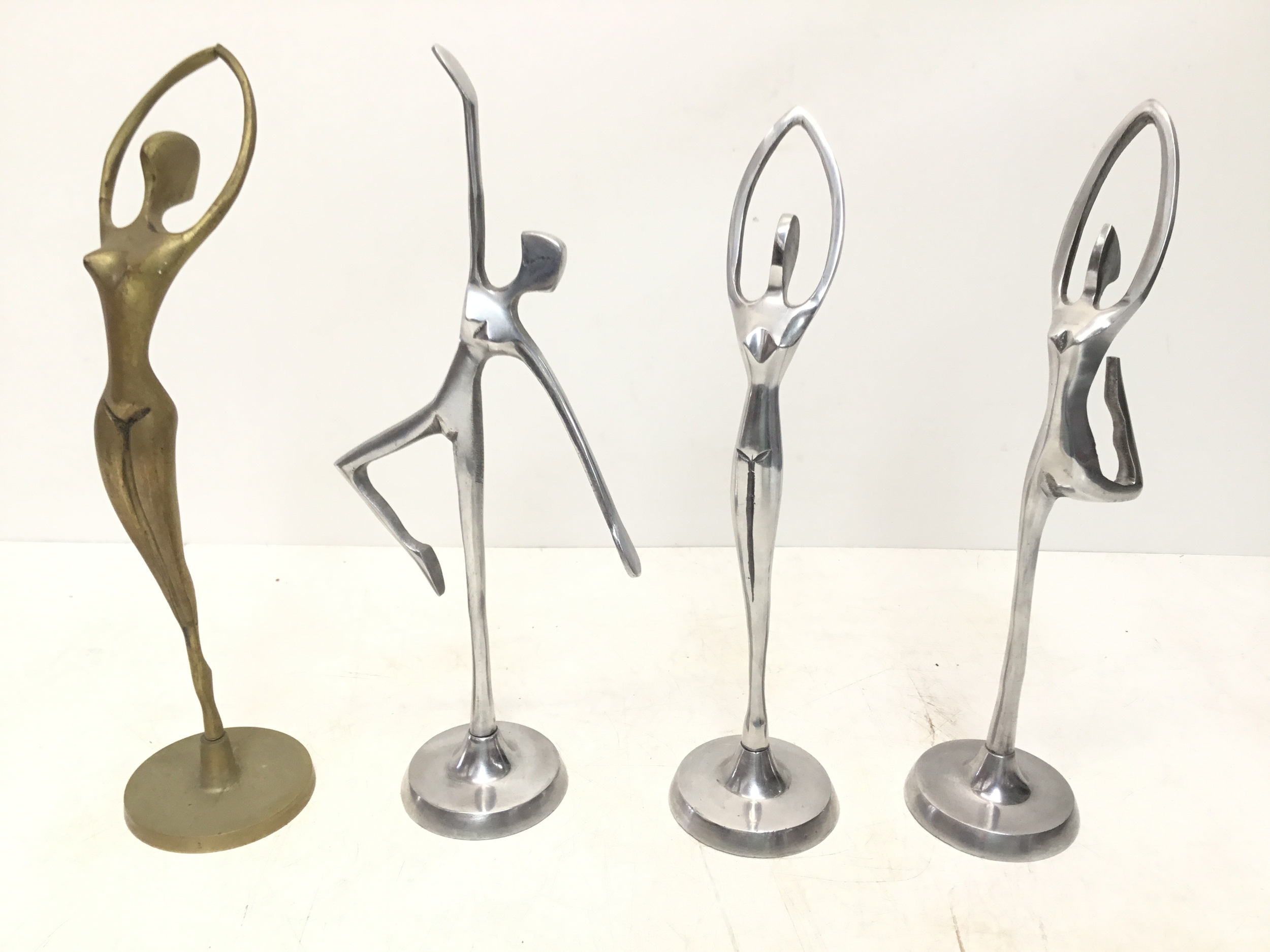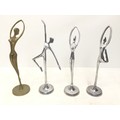Four abstract metal ballerina sculptures one brass and three aluminium