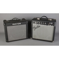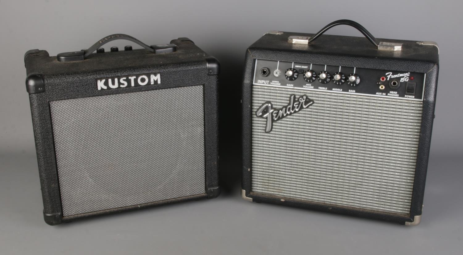 A Fender Frontman 15G Amplifier alongside a Kustom KBA10 amplifier.