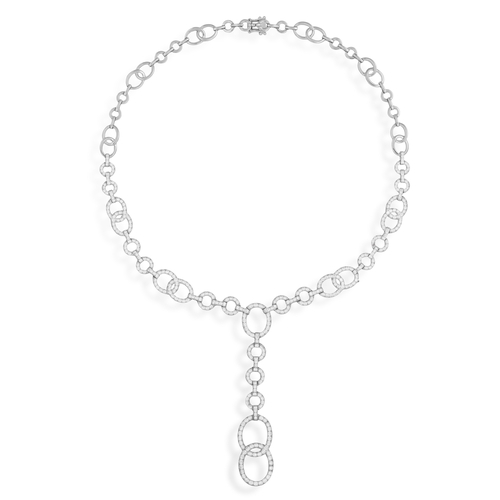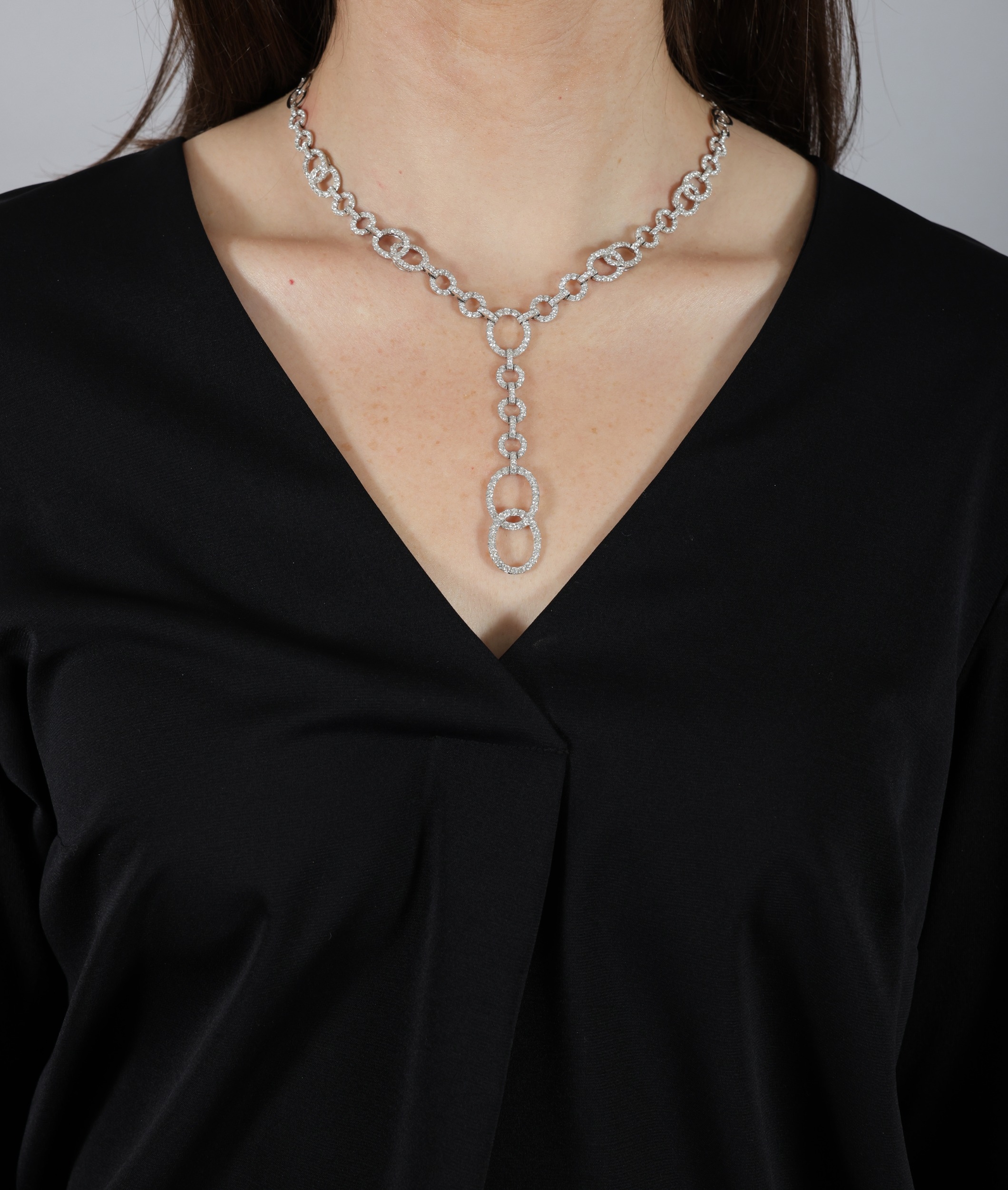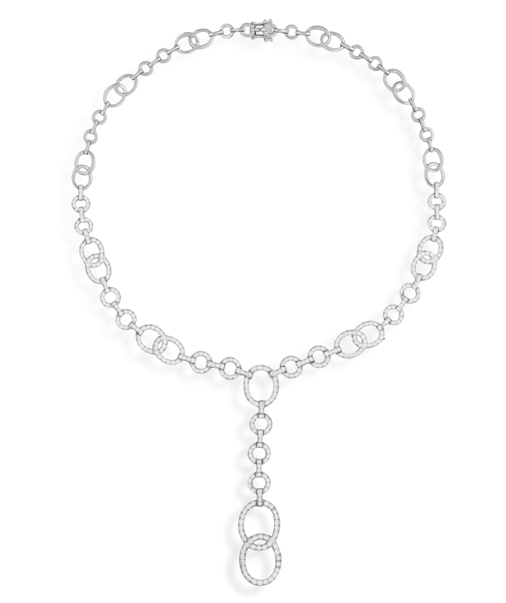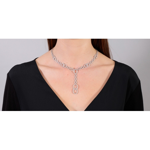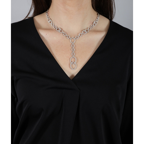 A DIAMOND PENDANT NECKLACE The intertwined hoop chain, set at the front with brilliant-cut diamonds, mounted in 18K gold, diamonds approximately 6.50cts total, French import mark, ength 43cm, pendant length 8.2cm