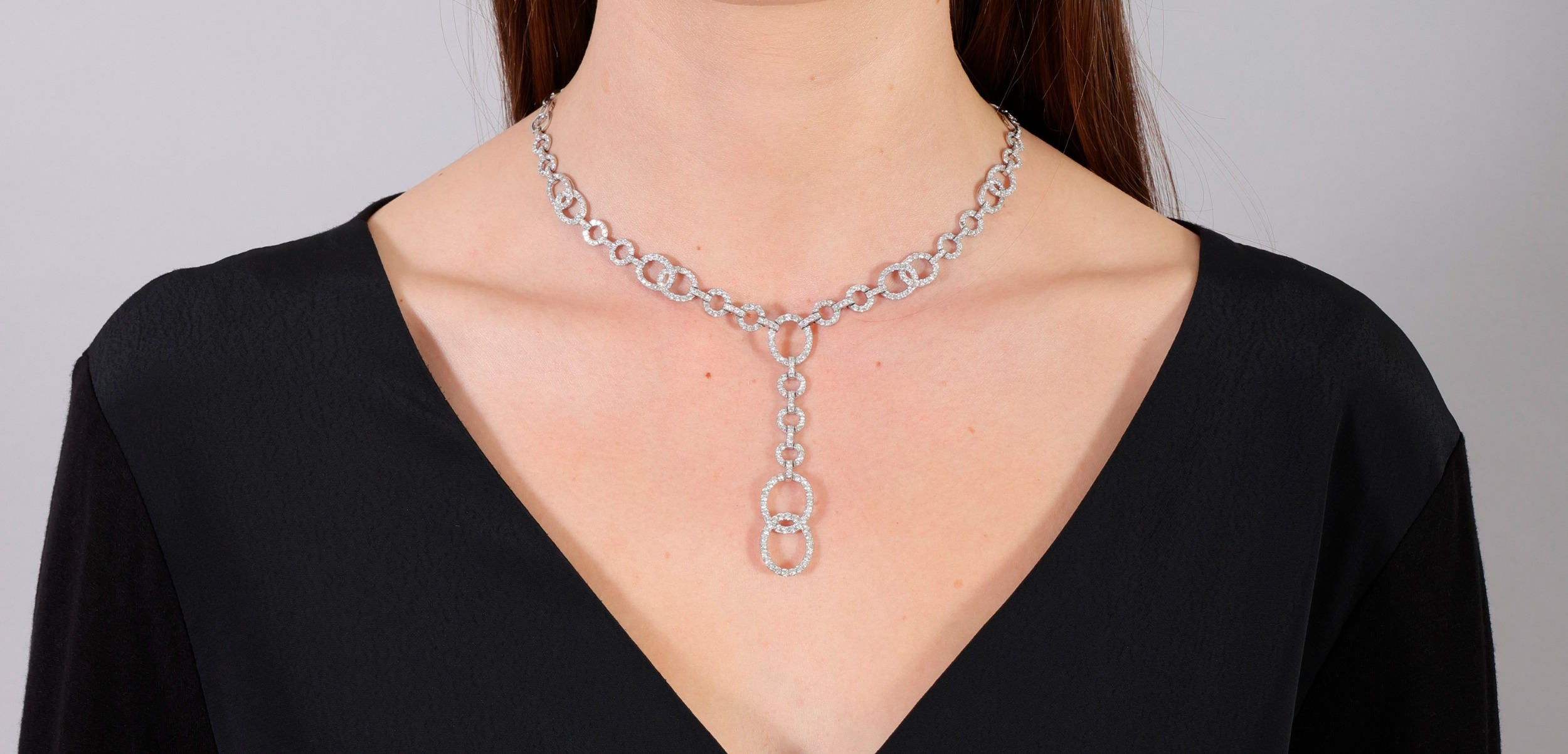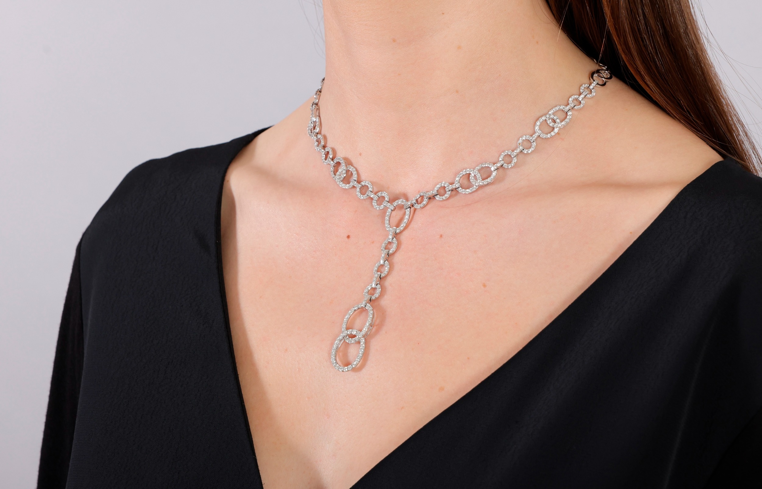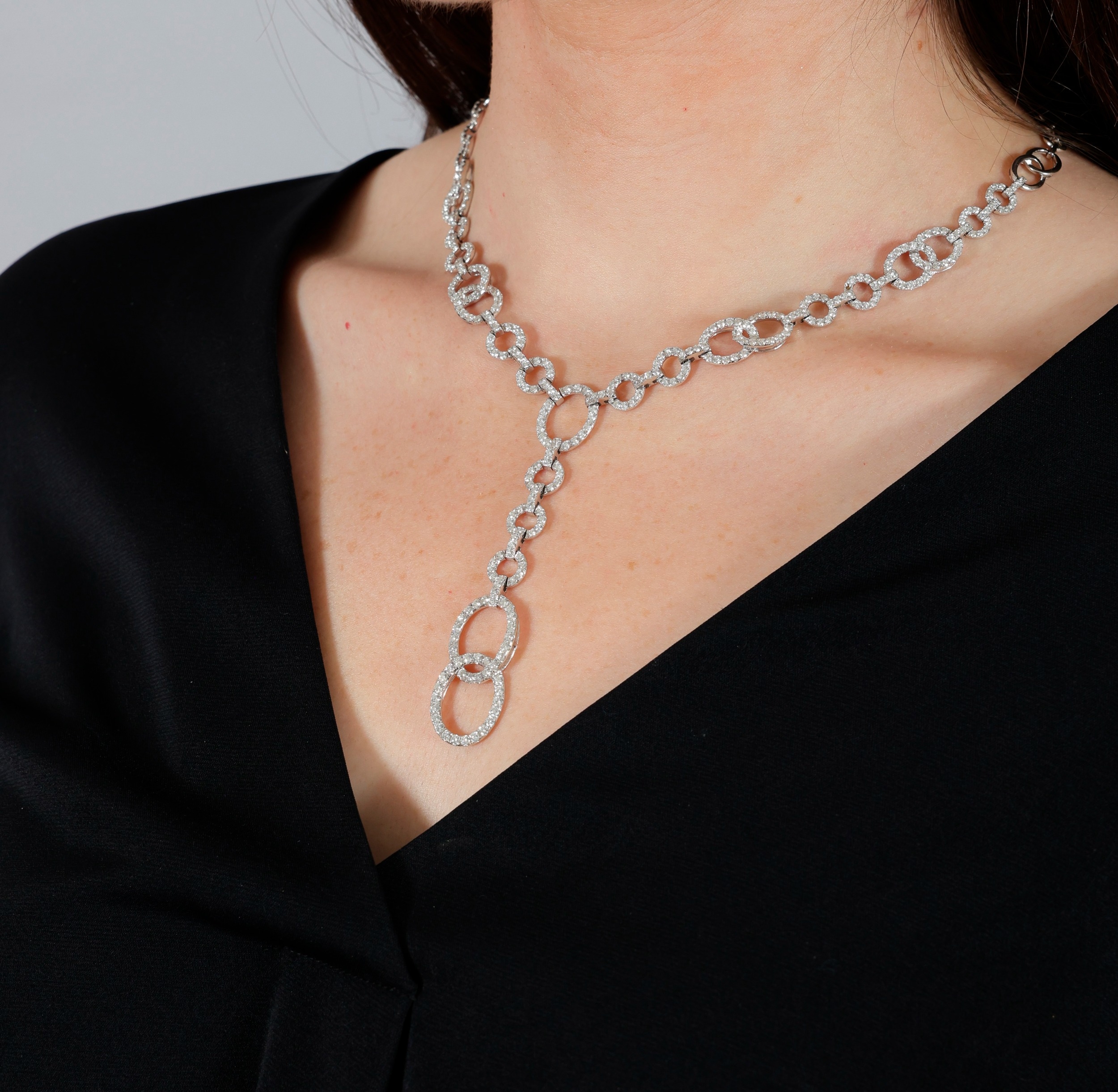 A DIAMOND PENDANT NECKLACE The intertwined hoop chain, set at the front with brilliant-cut diamonds, mounted in 18K gold, diamonds approximately 6.50cts total, French import mark, ength 43cm, pendant length 8.2cm