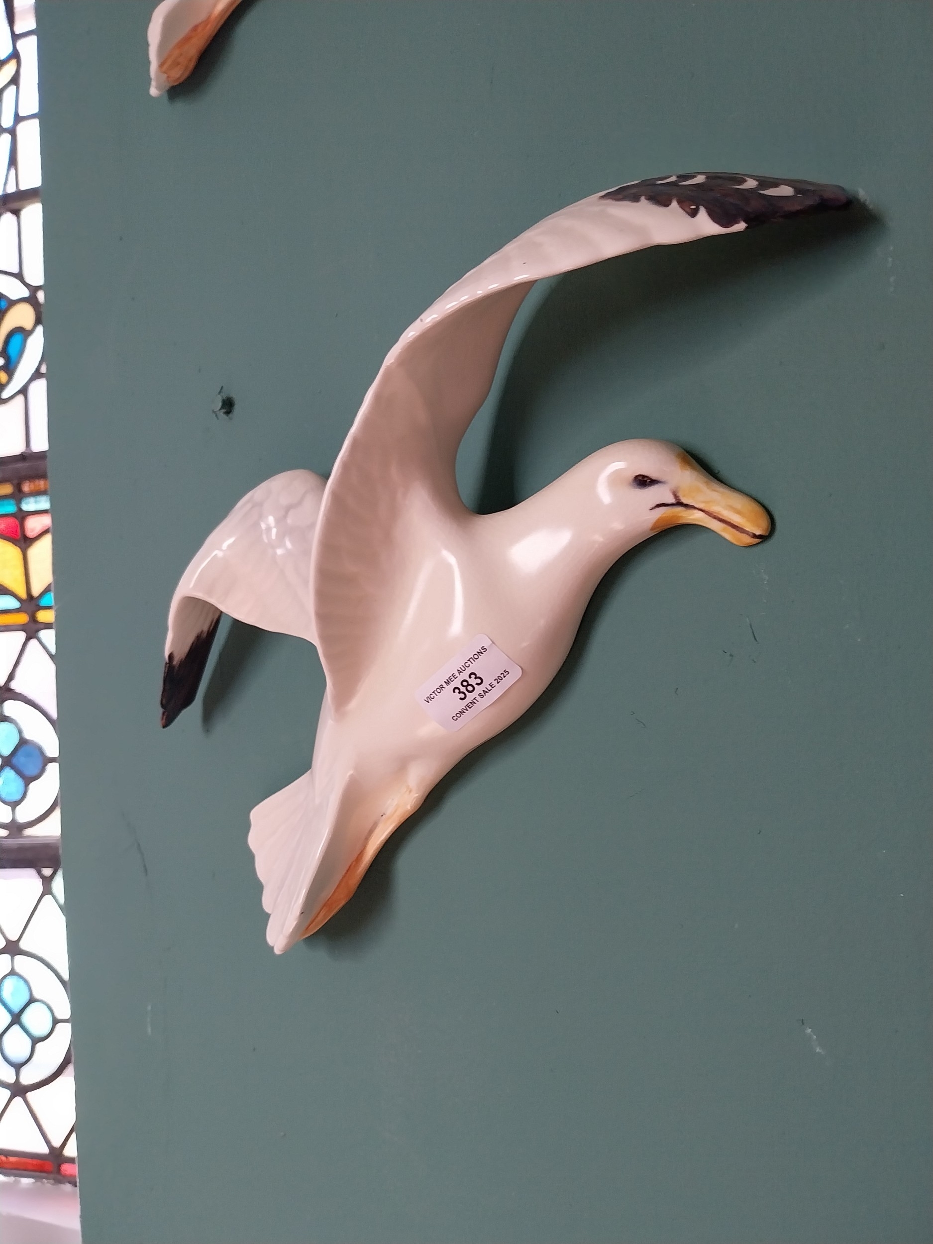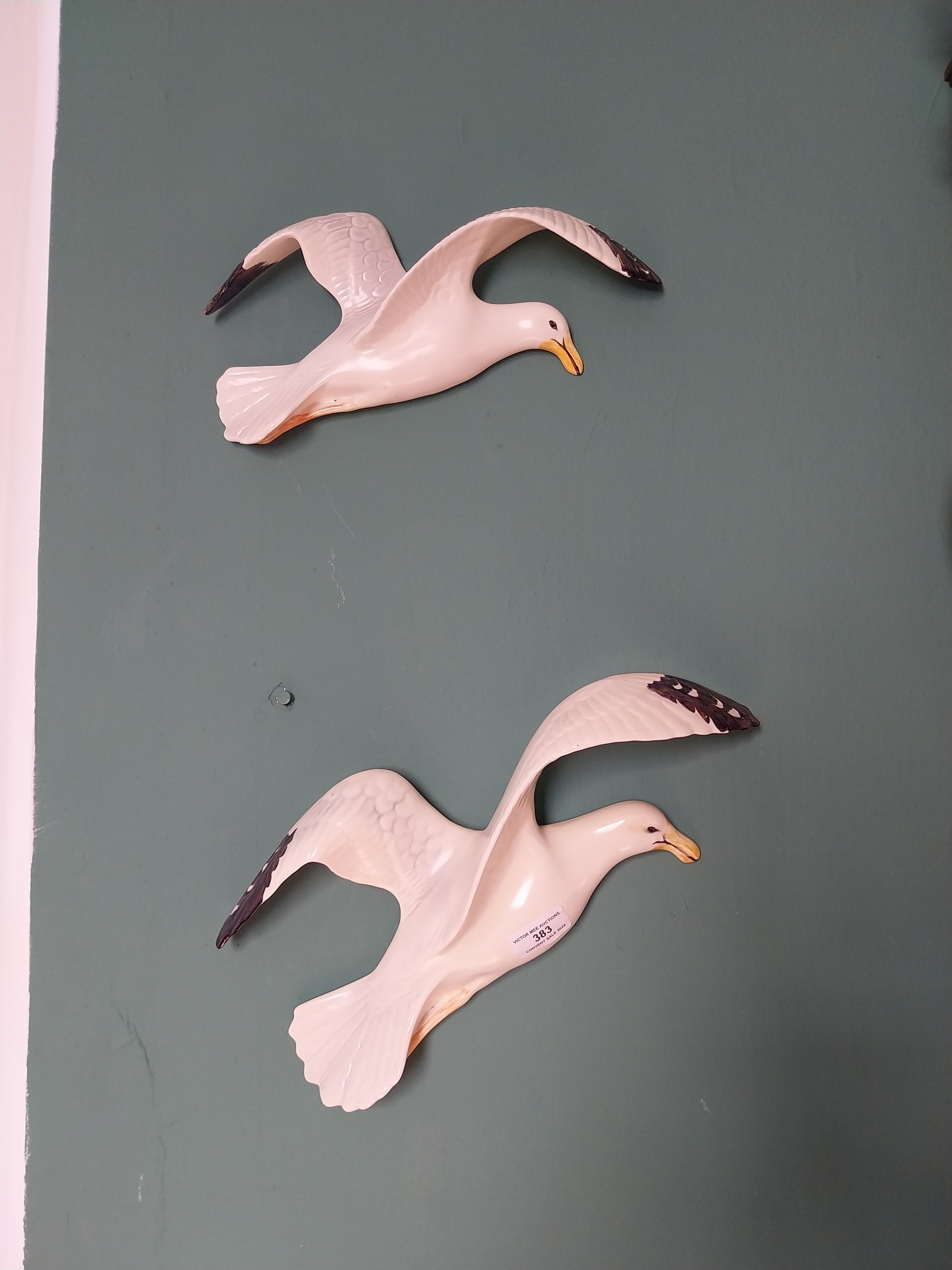 Pair of 1950's wall hanging ceramic Seagulls. { 30cm H X 37cm W X 8cm D }.