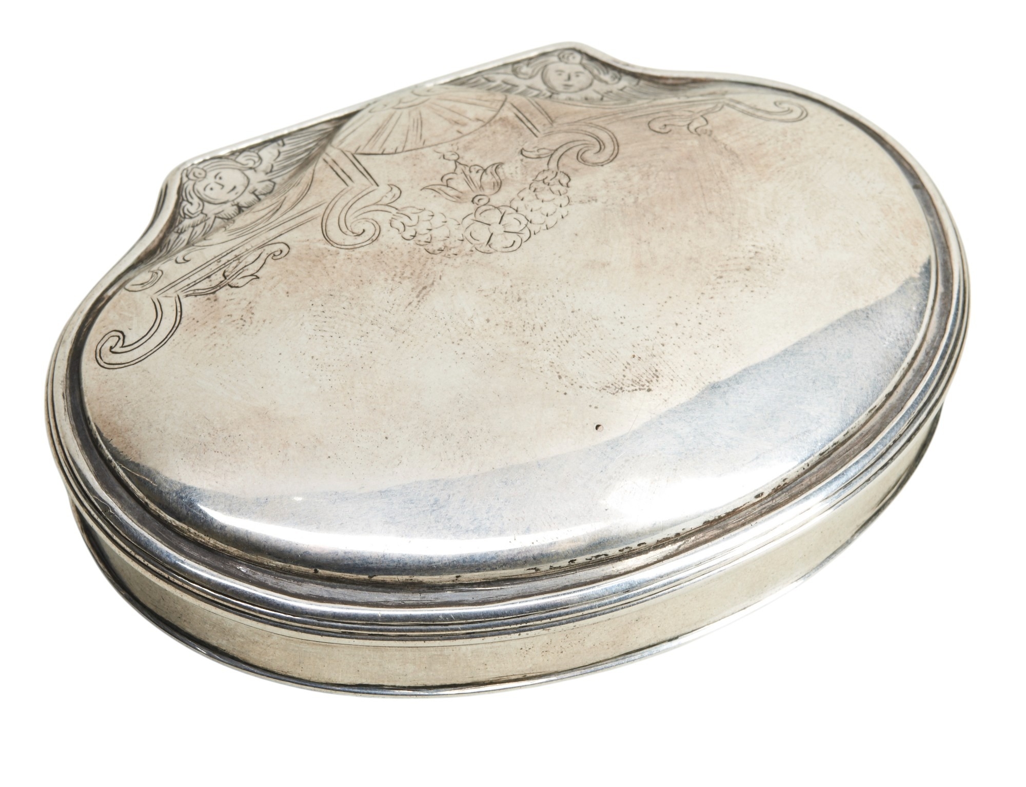 A SCALLOP SHAPED SNUFF BOX, LONDON C.1720