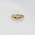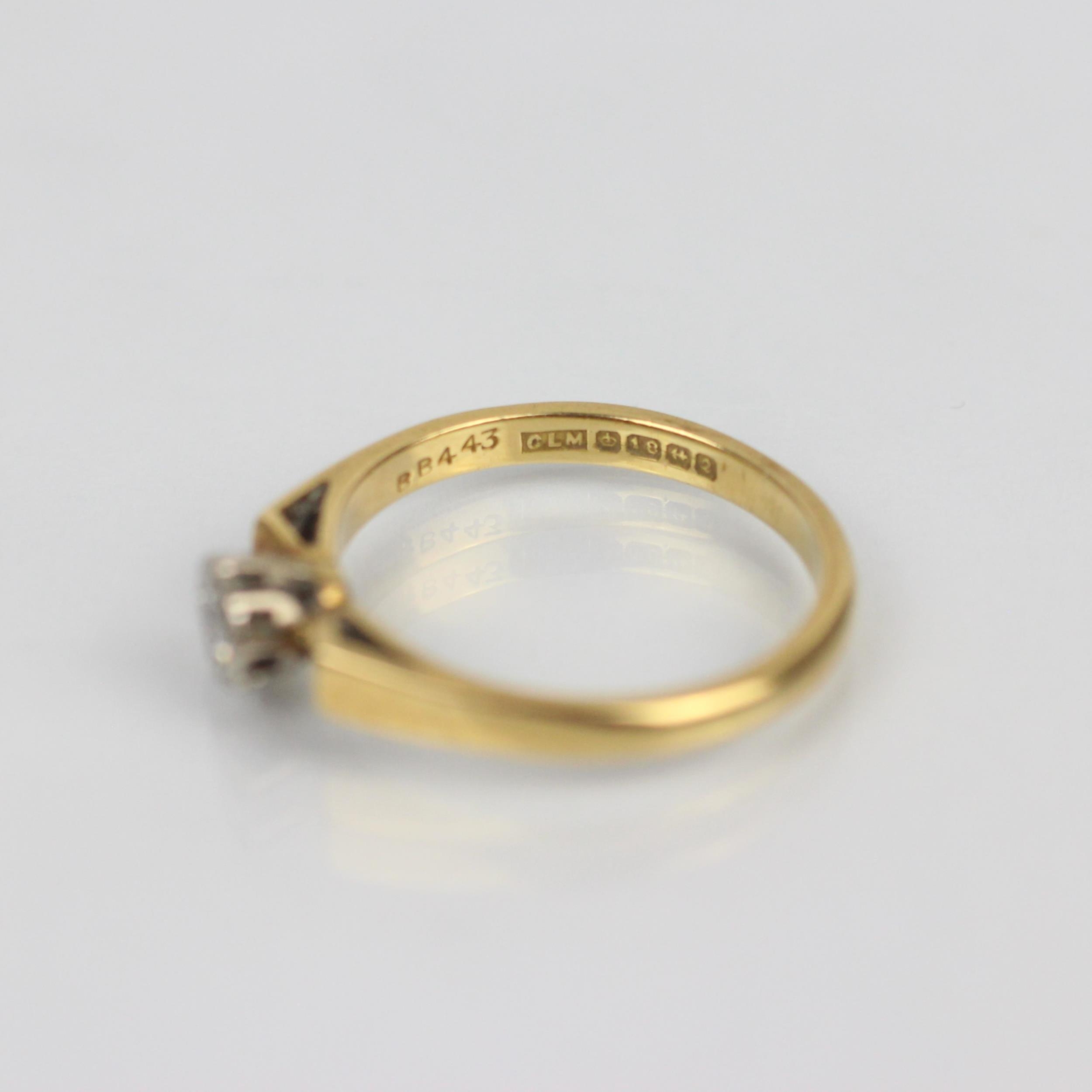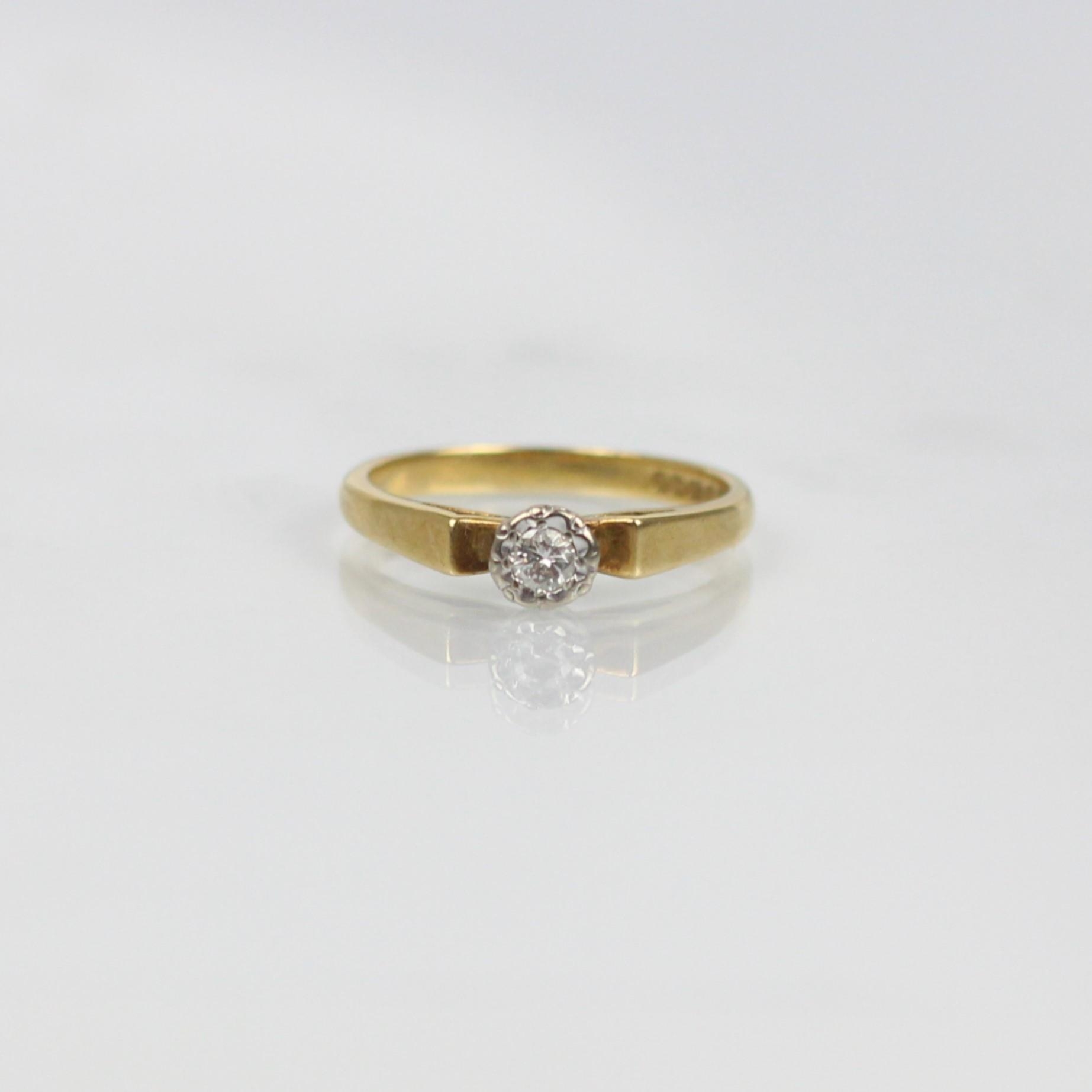 A mid 20th century diamond solitaire, the round cut diamond in illusion white metal setting edge, leading to flat shoulders and plain polished shank, stamped 'CLM' Birmingham 1965, ring size K, 2.6gms
