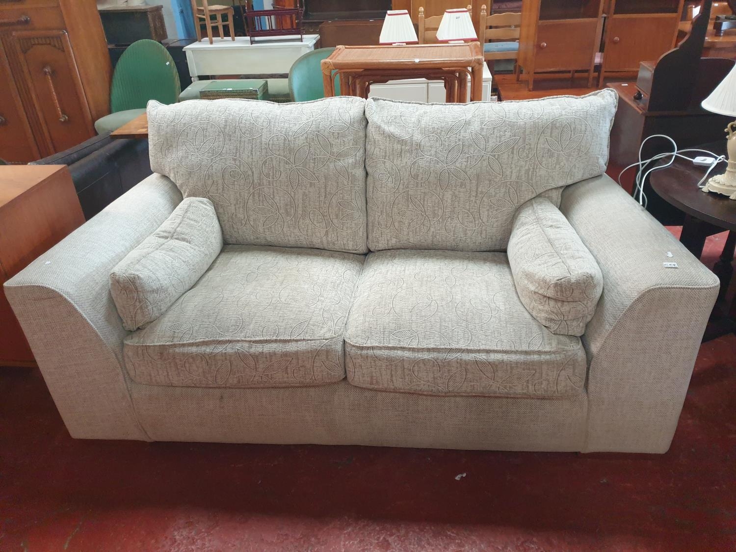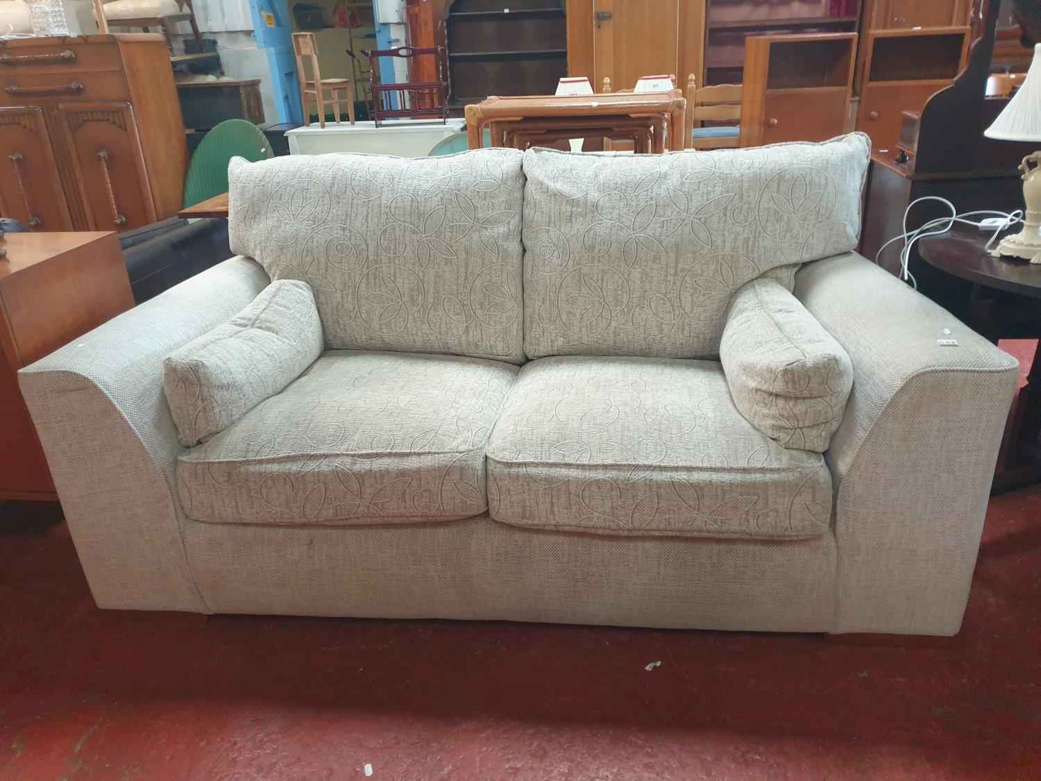 Natural Coloured Upholstered Two Seater Settee - approx 6ft 4" long.