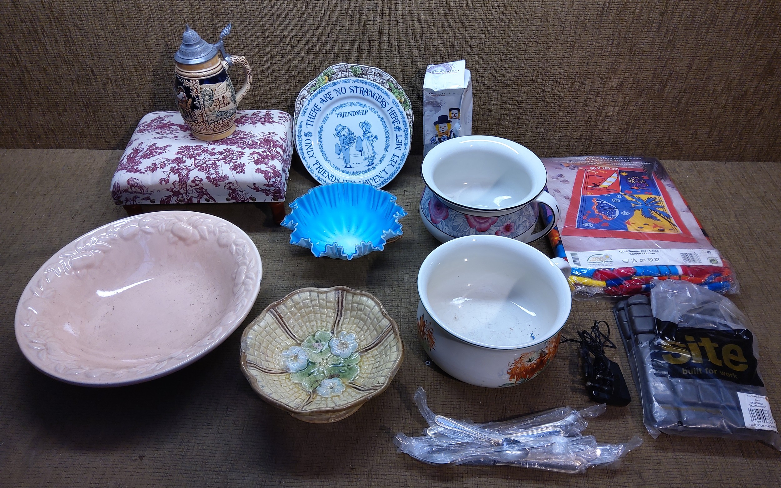 Mixed household collectable ceramics and glass including a Copland Spode and a German stein.