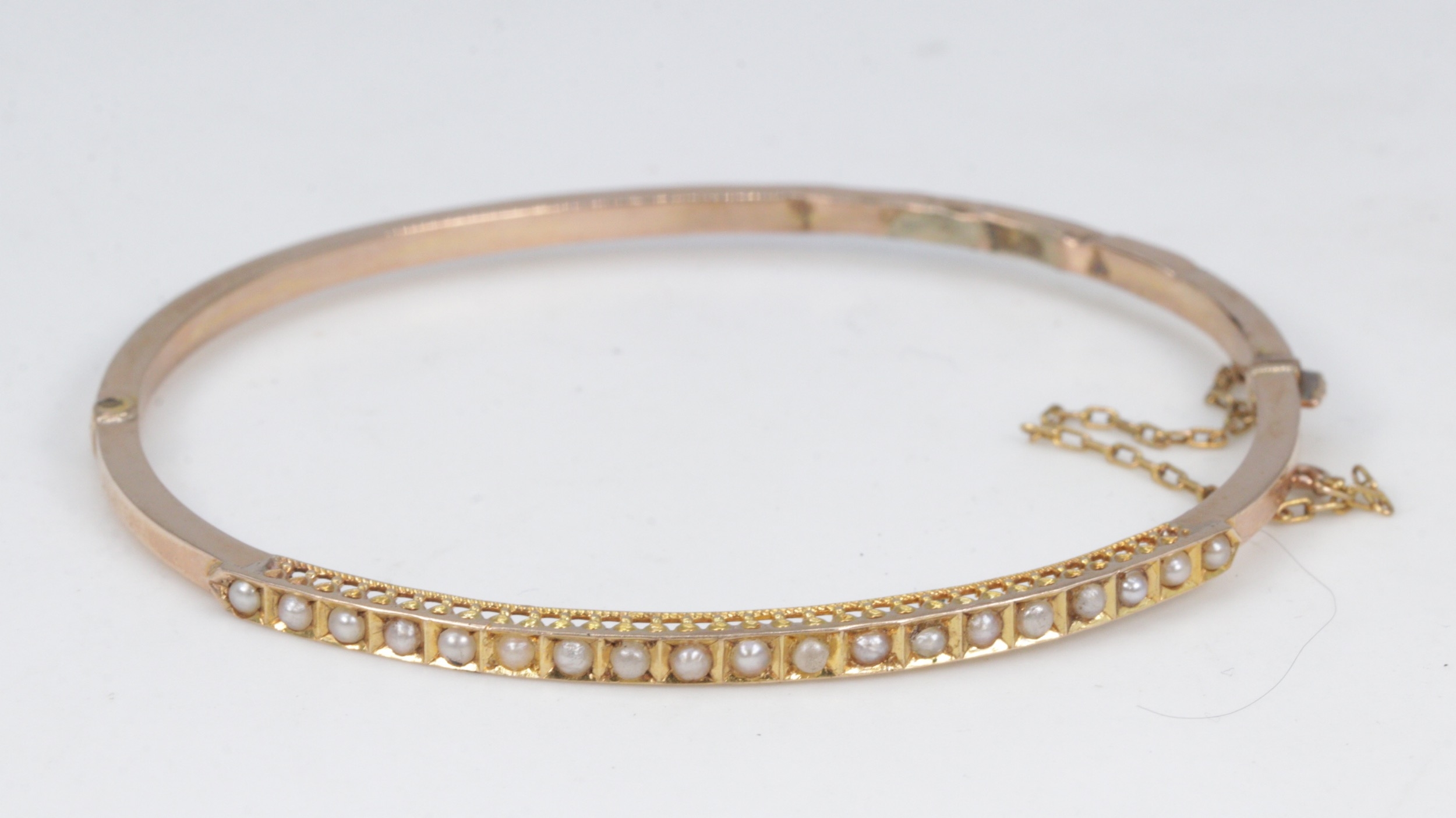 Unmarked gold bracelet set with seed pearls (approx. weight 4.2g)