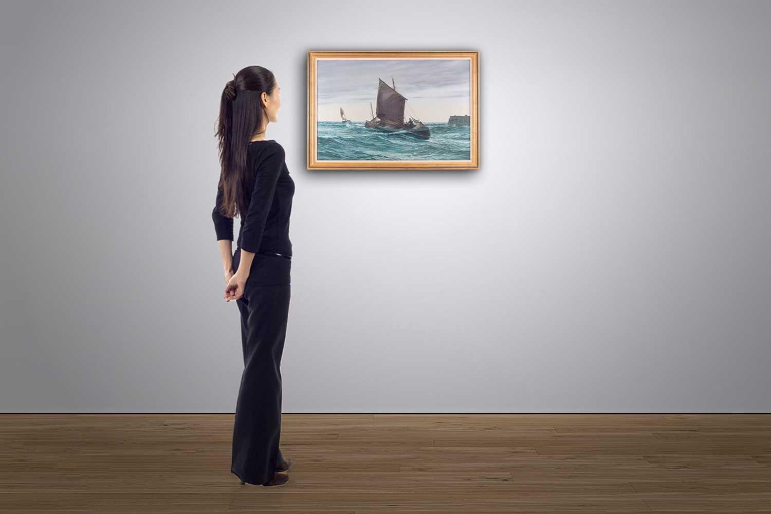 † Montague Dawson (1890-1973) British, 'Bringing Home the Catch', oil on canvas in a gilt frame, signed to lower left corner, 49 cm x 74.5 cm