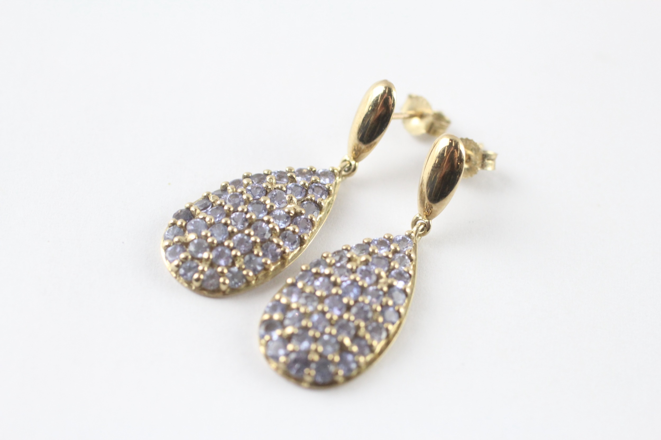 9ct gold tanzanite drop earrings (3.8g)