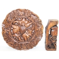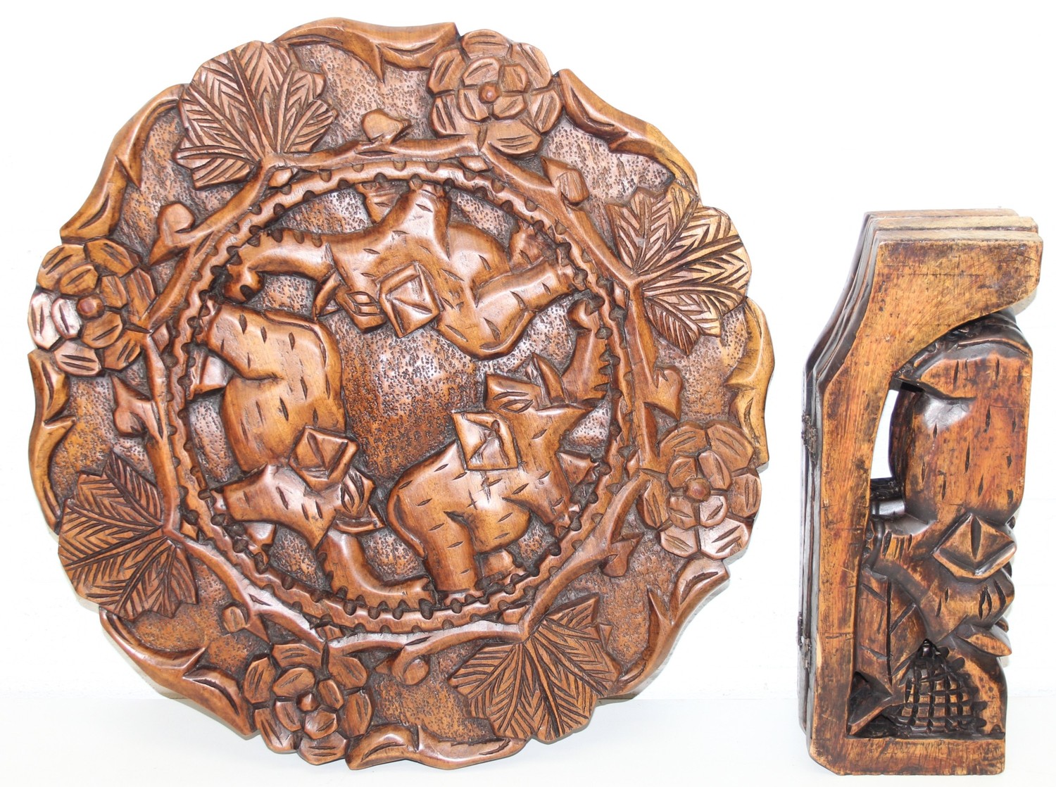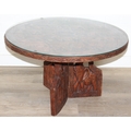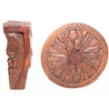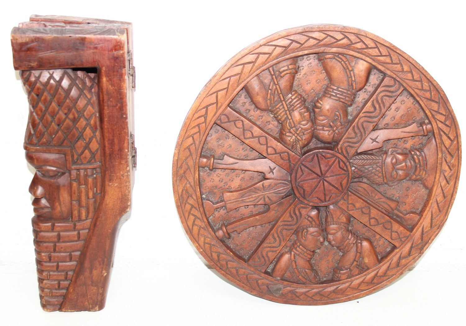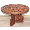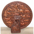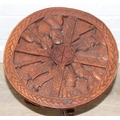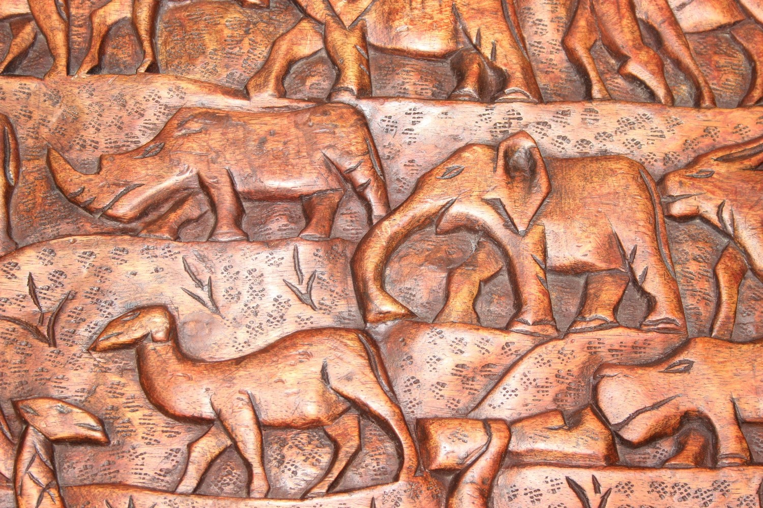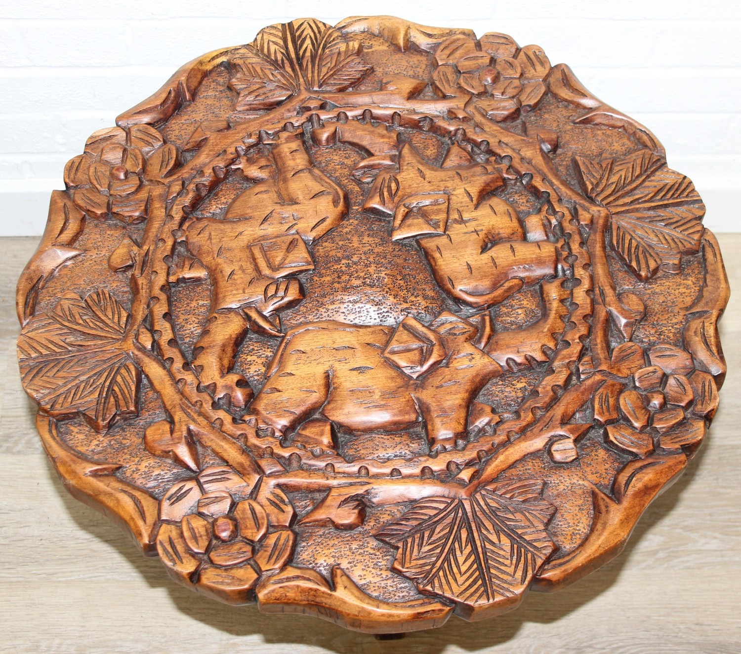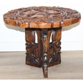 Three African carved hardwood folding tables, the tops carved with elephants, rhinos, giraffes etc, the largest 75cm diam x 46cm H [3]