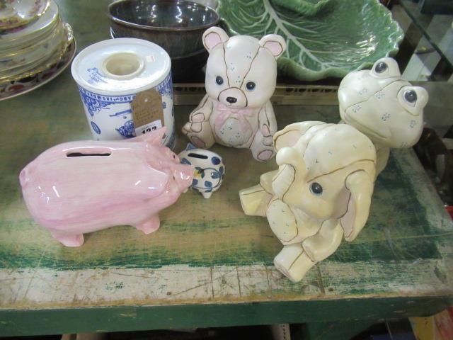 SIX CERAMIC MONEY BOXES INCLUDING SPODE