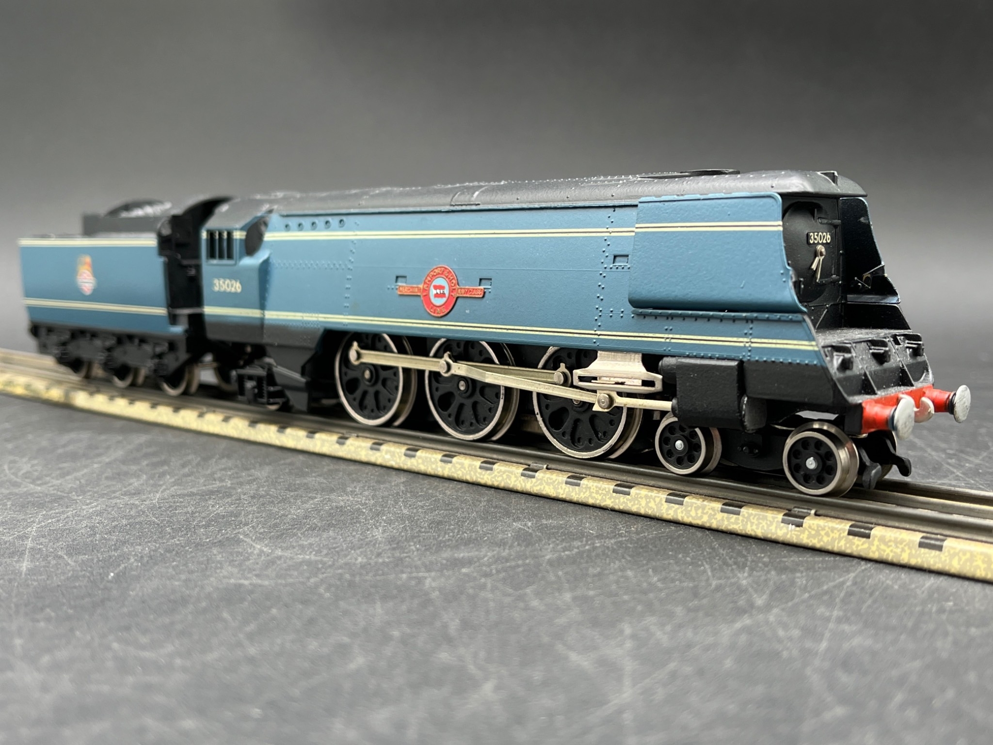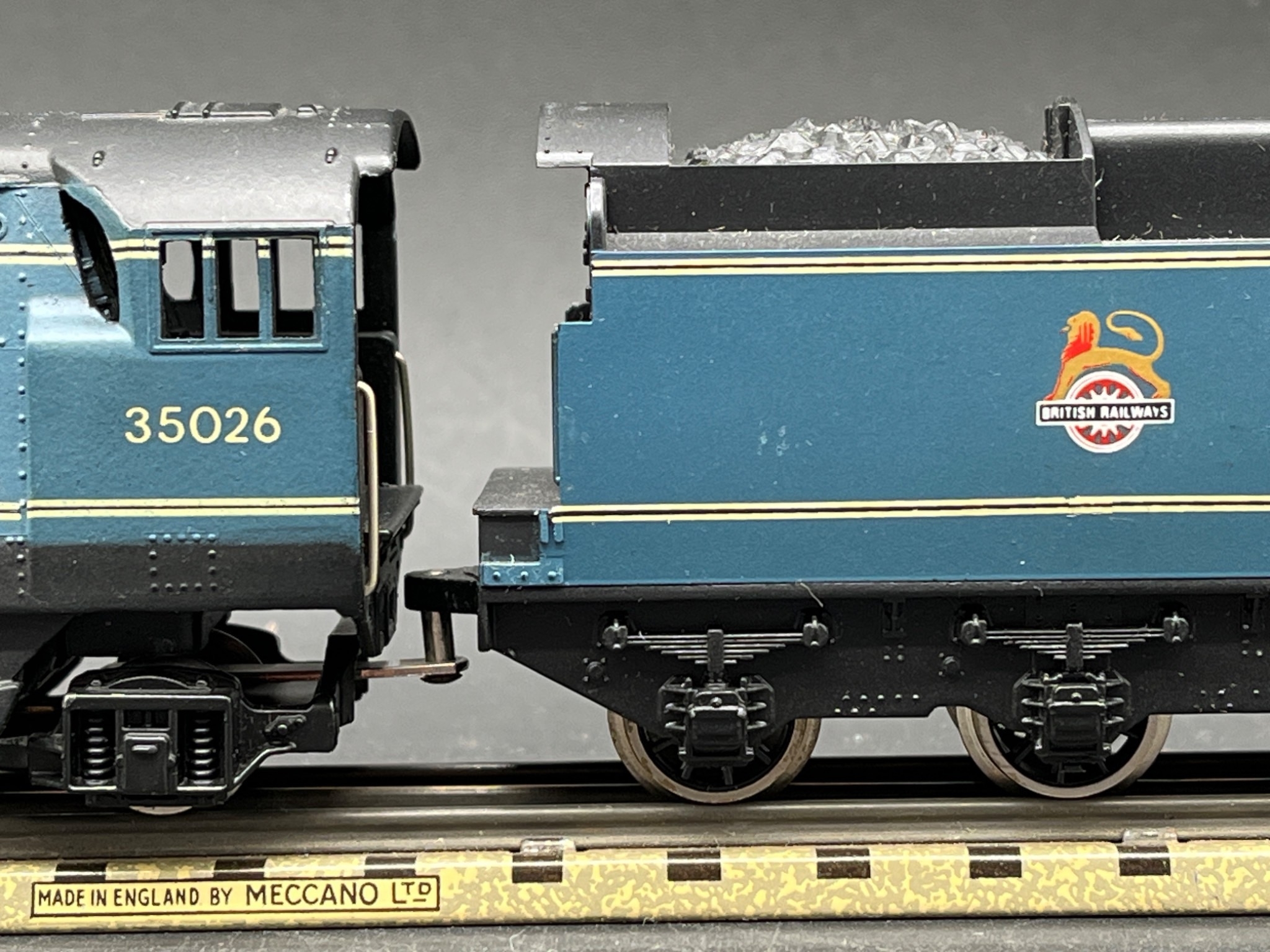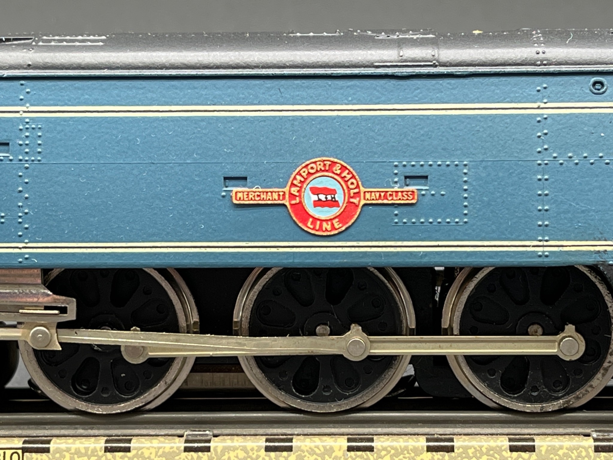 – Features a distinctive B.R. blue livery with detailed Merchant Navy Class insignia.