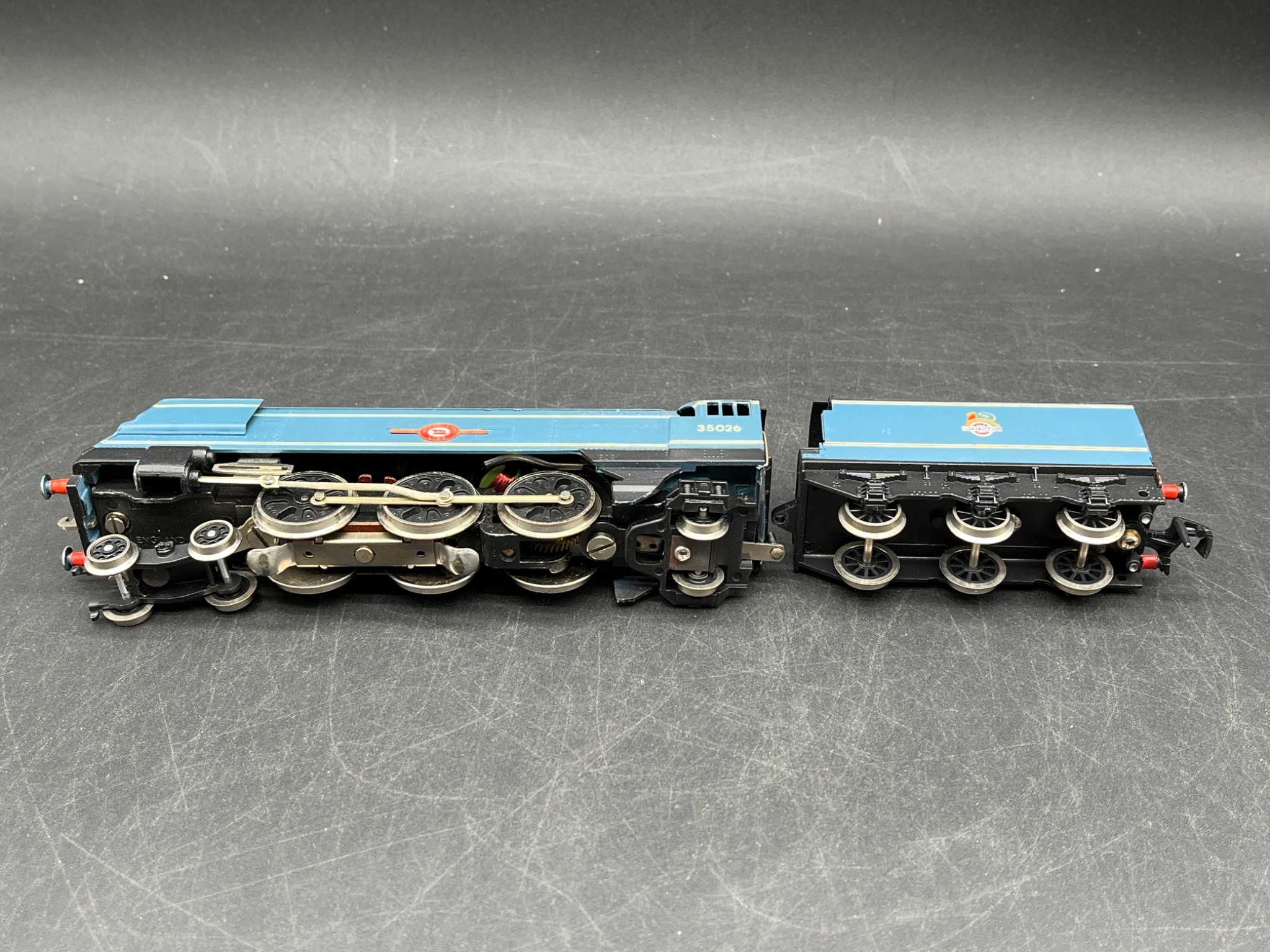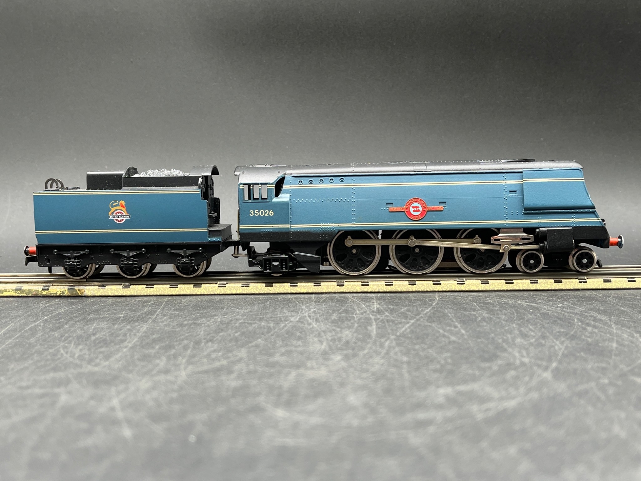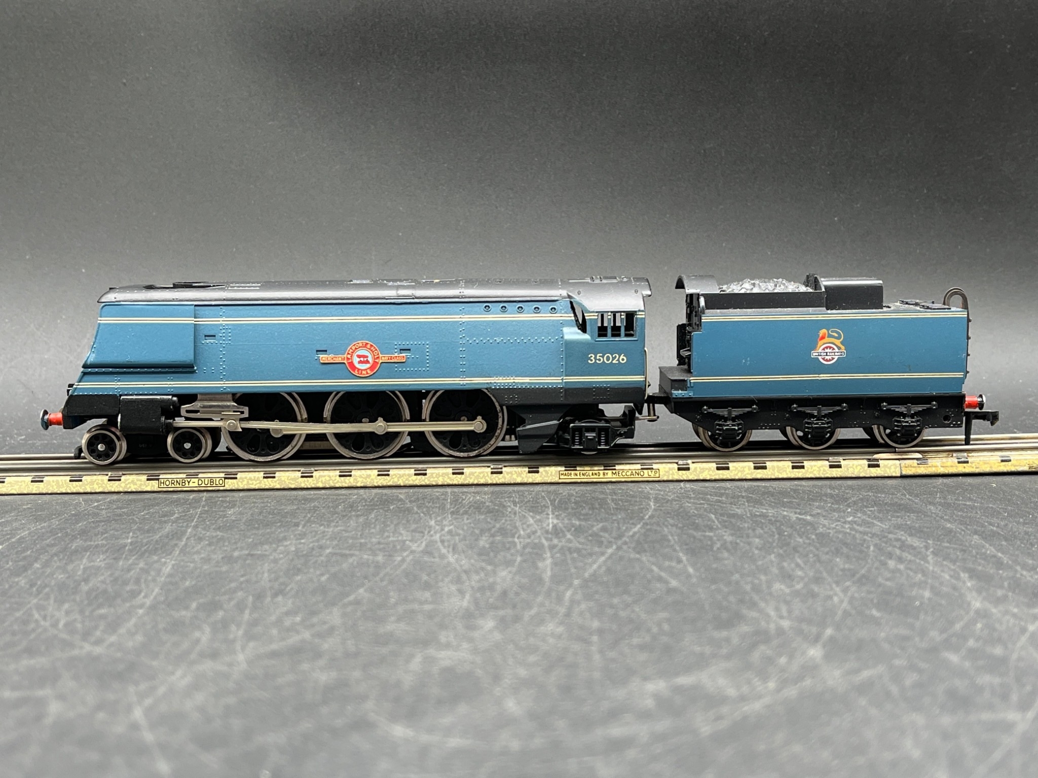 – Features a distinctive B.R. blue livery with detailed Merchant Navy Class insignia.