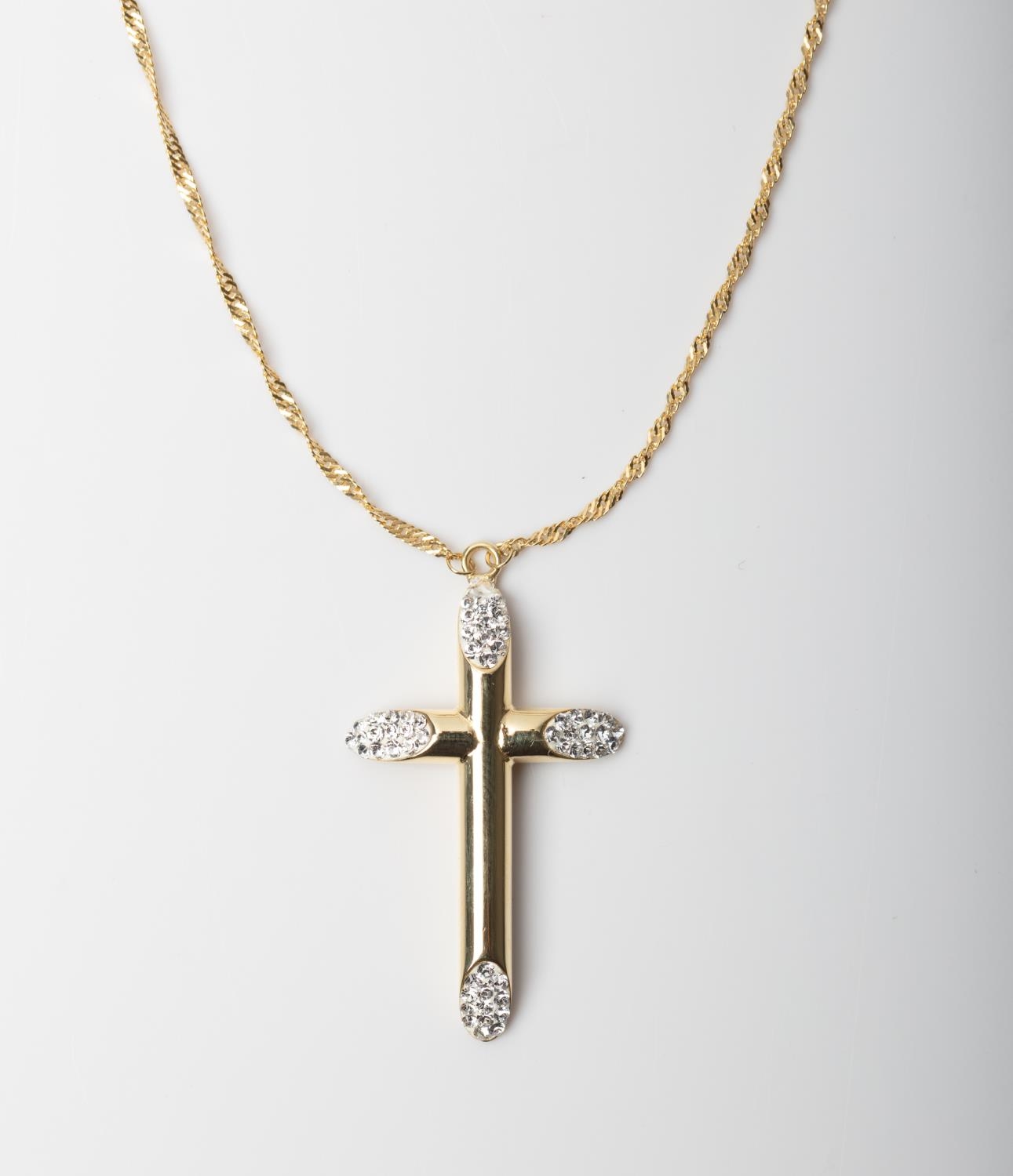 A 14CT AND SILVER BONDED CRYSTAL CROSS NECKLACE A Crystal studded Cross necklace crafted in 1/10 14ct gold and Sterling Silver bonded together weighing 2.3 grams.