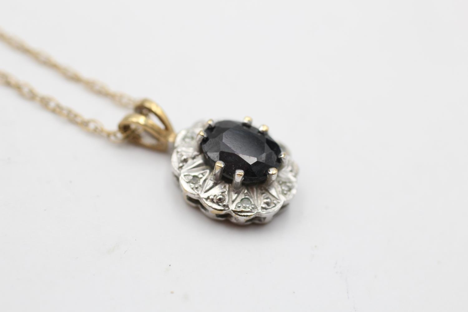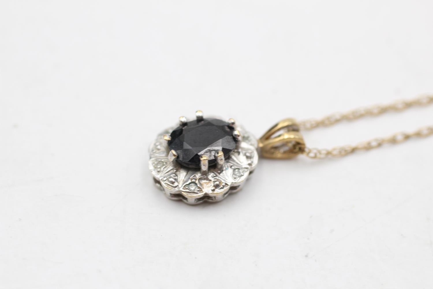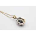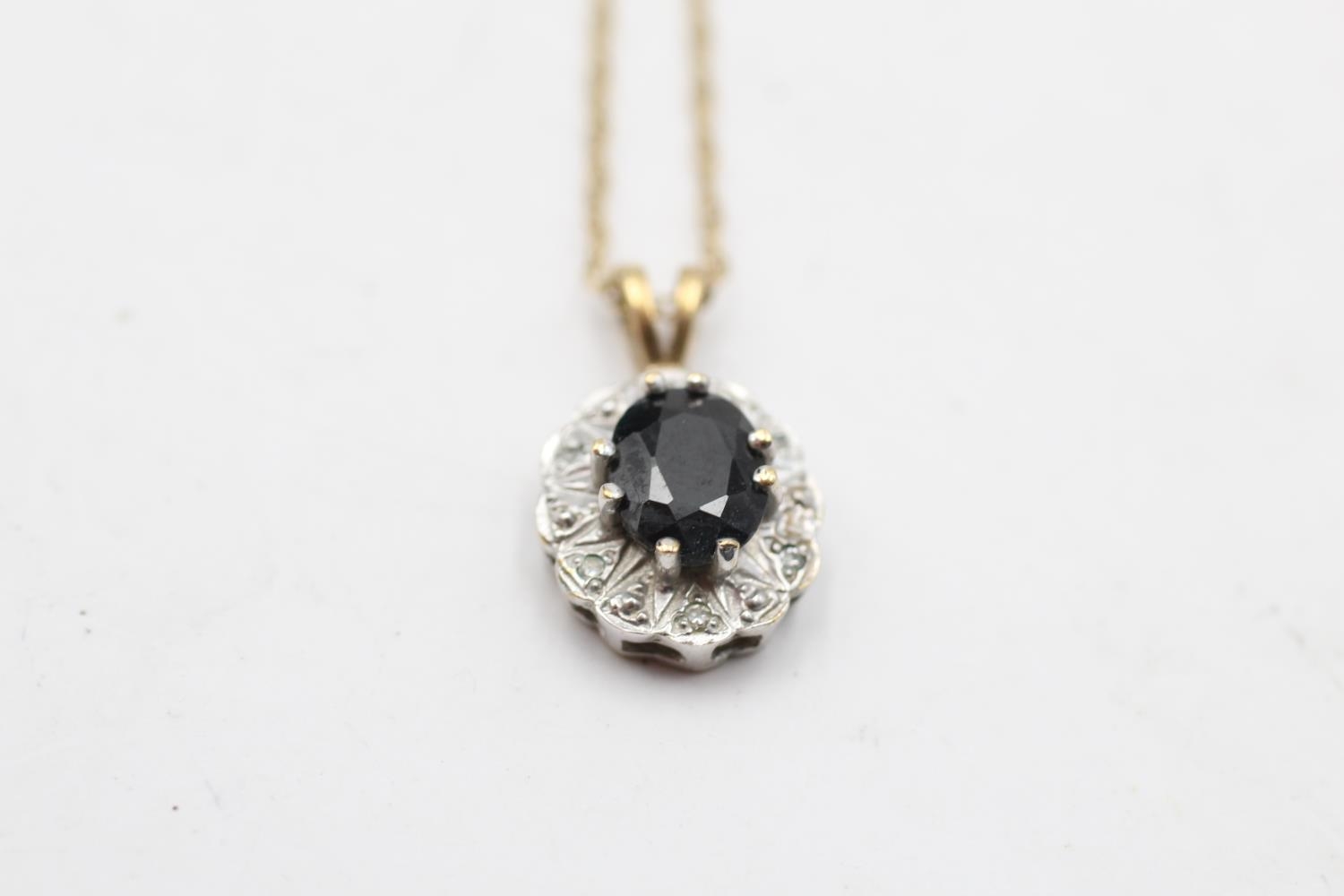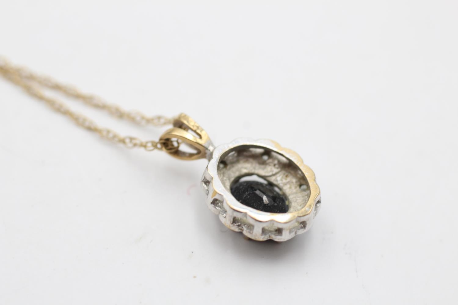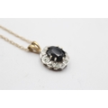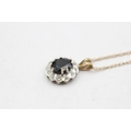 9ct gold vintage sapphire & diamond halo pendant necklace (2.7g)