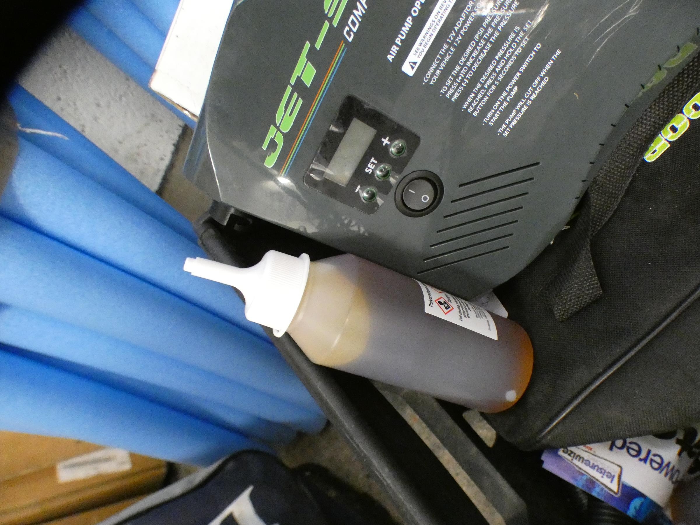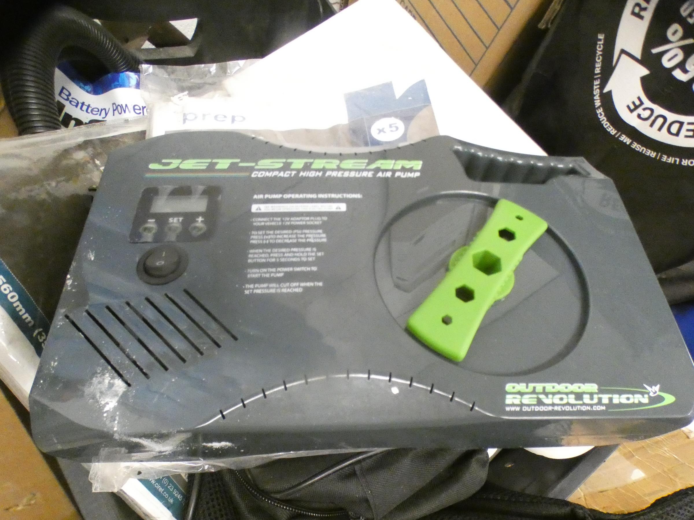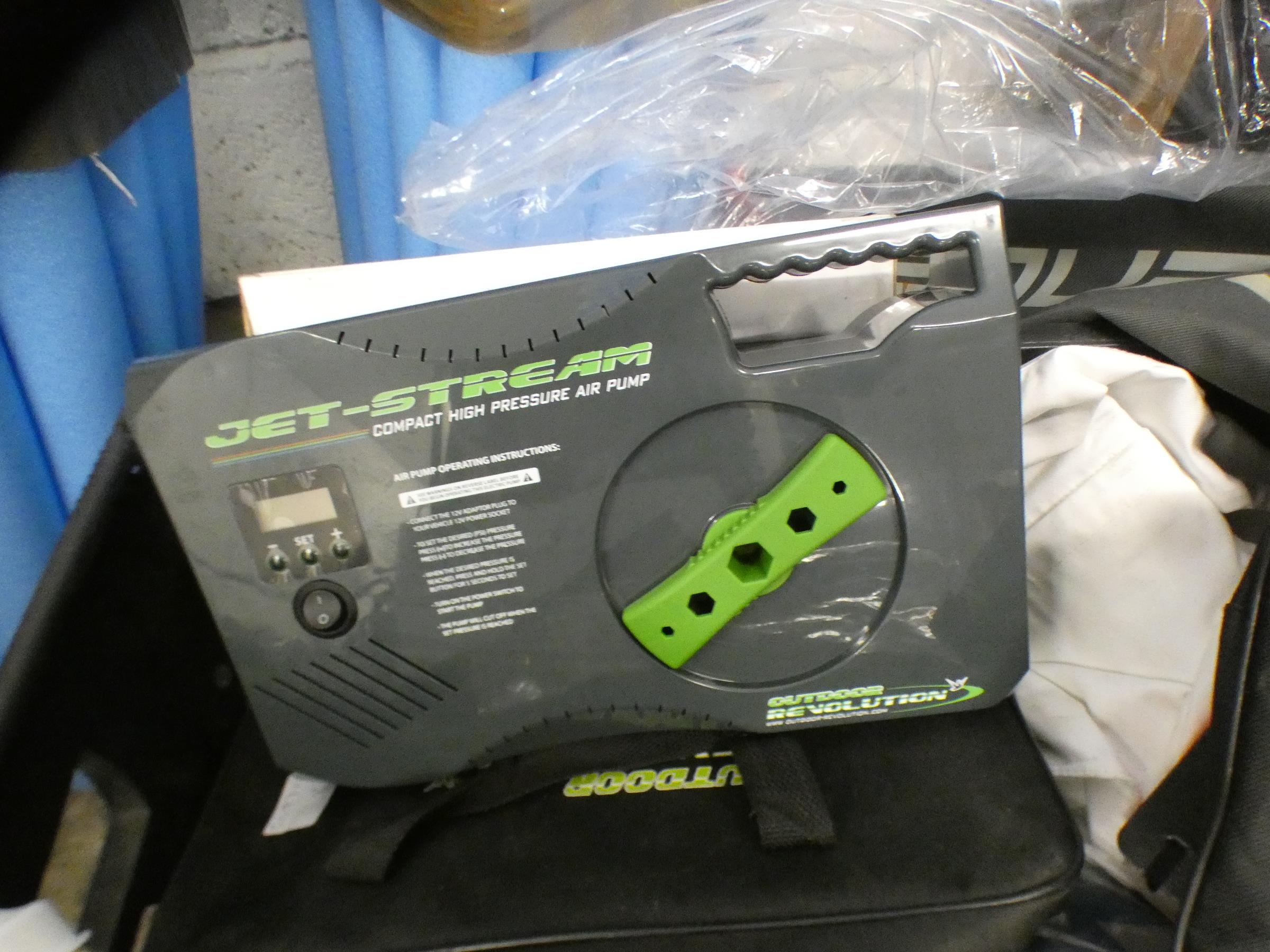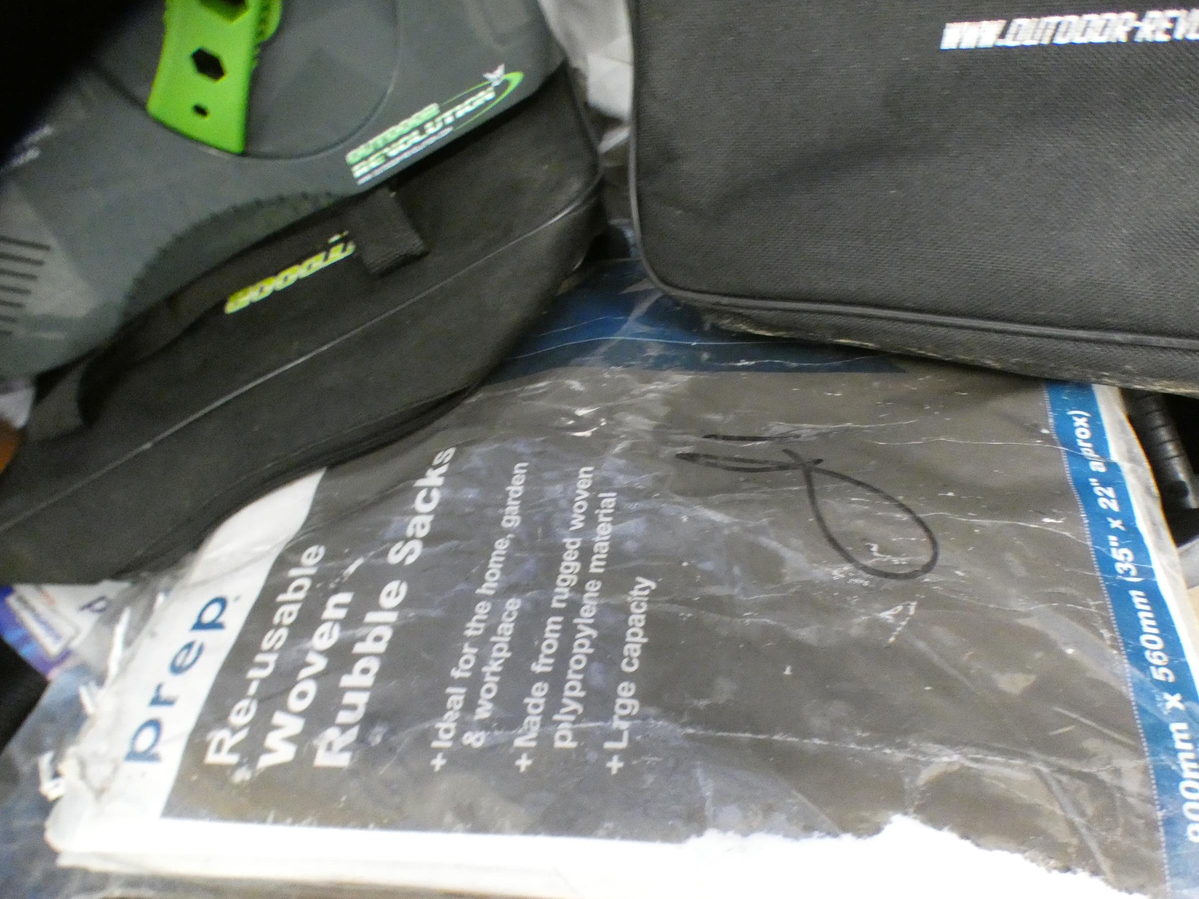 Two rubble sacks and white overalls, pump, jet stream high pressure air pump unused