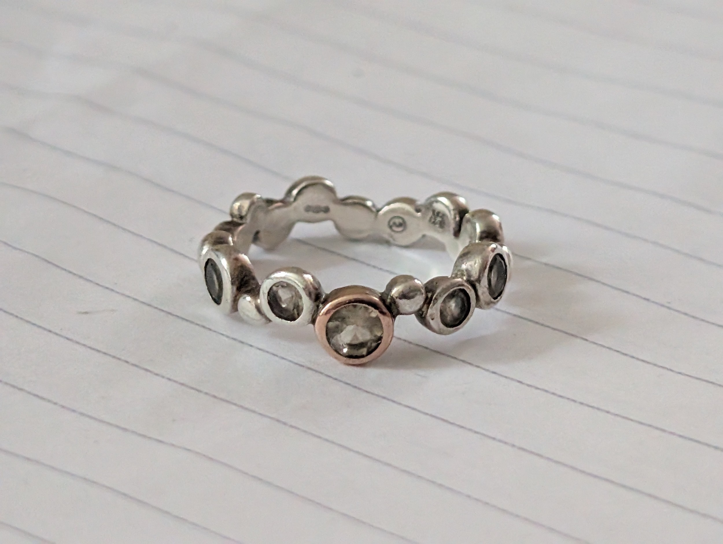 Clogau Silver & 9ct Rose Gold Stepping Stone Ring size M 1/2